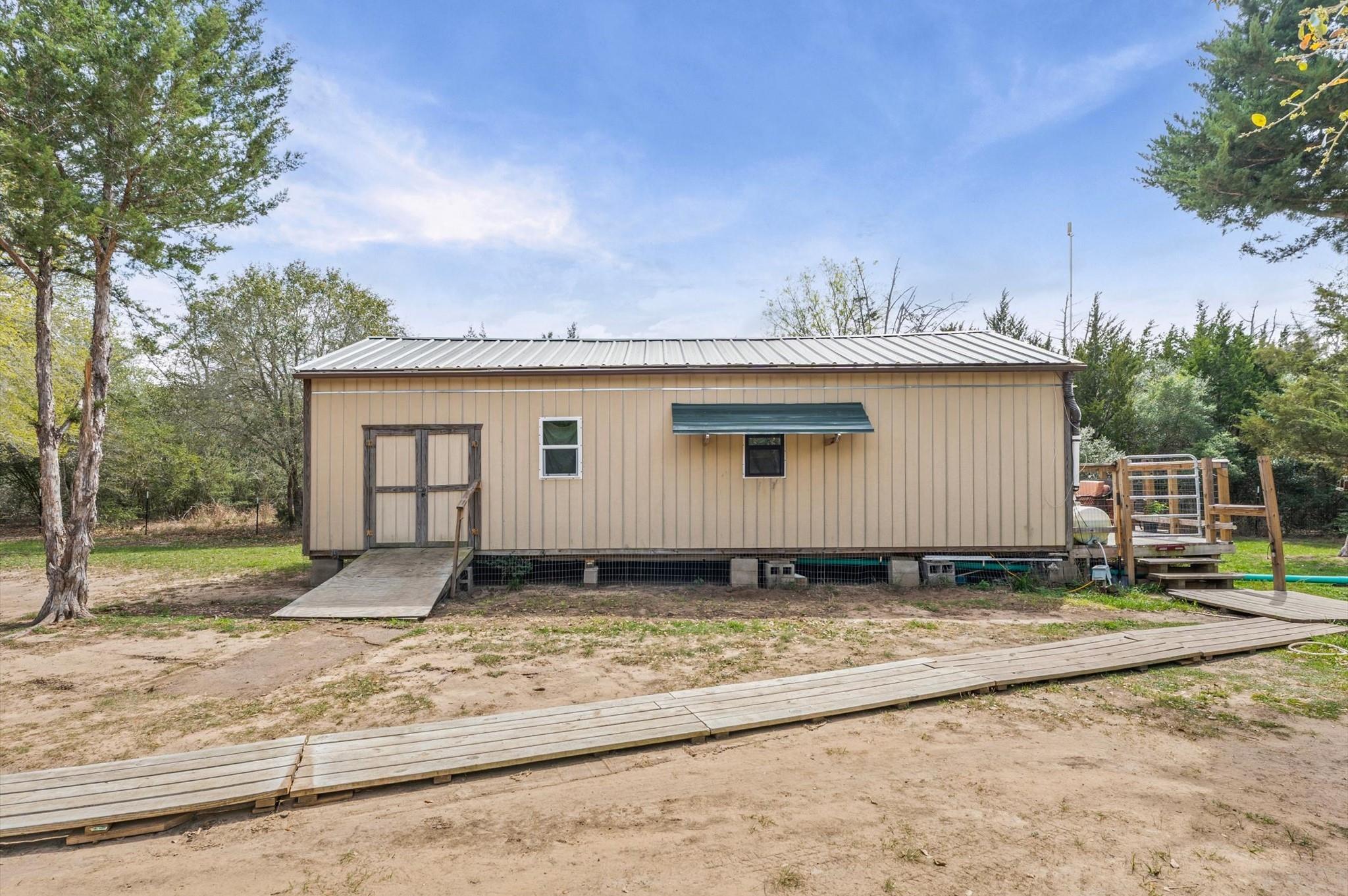 Situated on over 6 acres of unrestricted land, this property offers privacy, flexibility, and a true country setting. Located on a paved road just 1.1 miles from FM 109, it provides convenient access while maintaining a quiet, rural feel. The land features a mix of mature trees and open clearings, along with a dry creek bed at the rear and frequent wildlife, including deer. Improvements include a 720 sq. ft. storage building with electricity, a driveway from the gated entrance, and full perimeter barbed wire fencing. The property also benefits from an agricultural exemption. No water or septic currently in place. Located approximately 16 miles from Columbus with shopping and dining nearby.