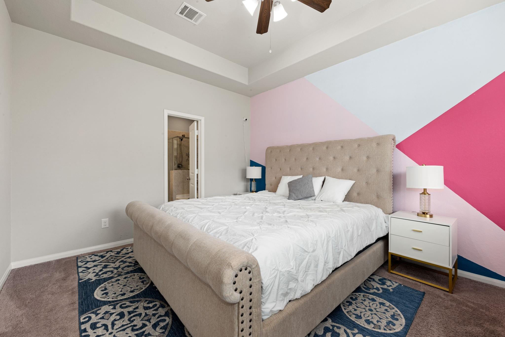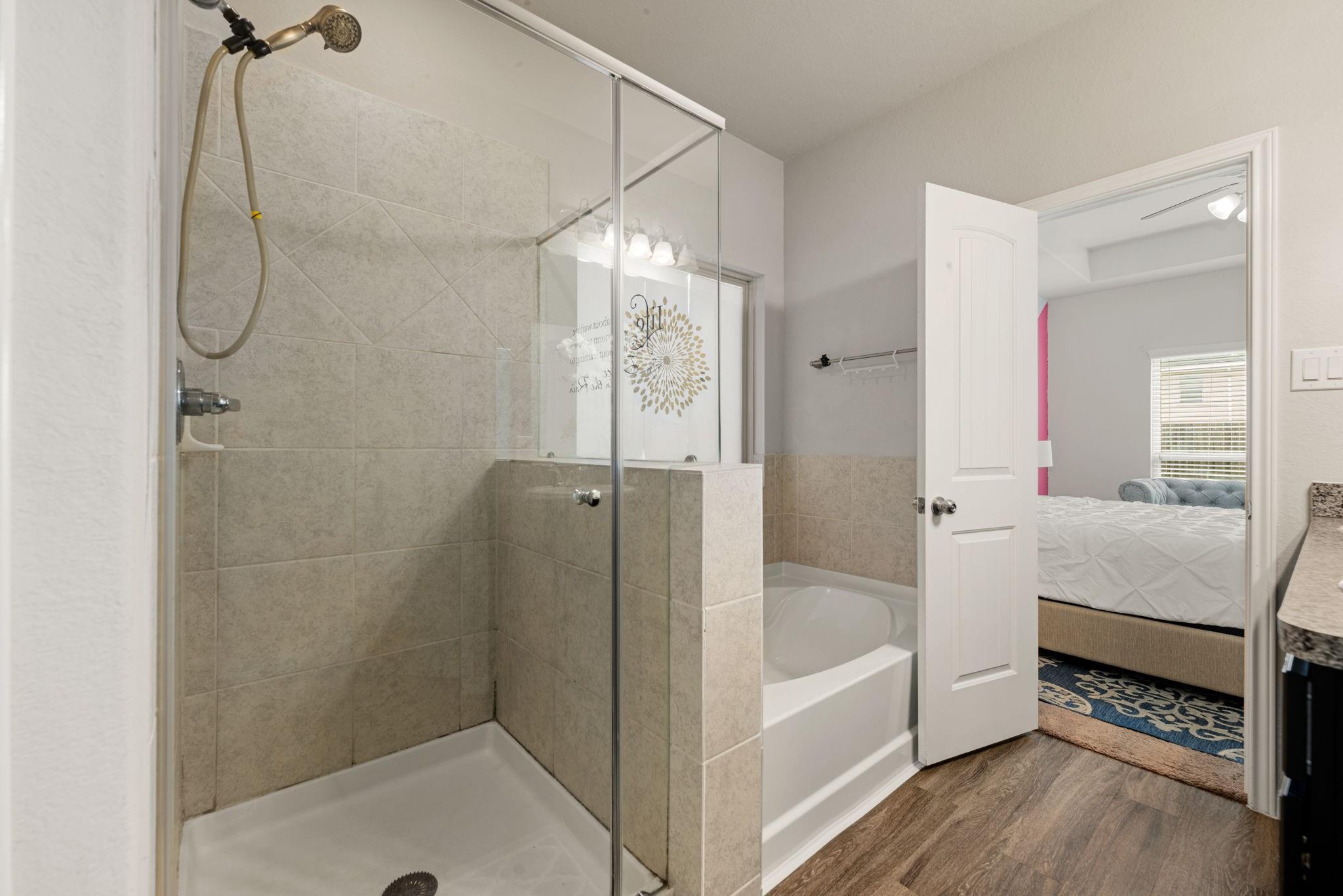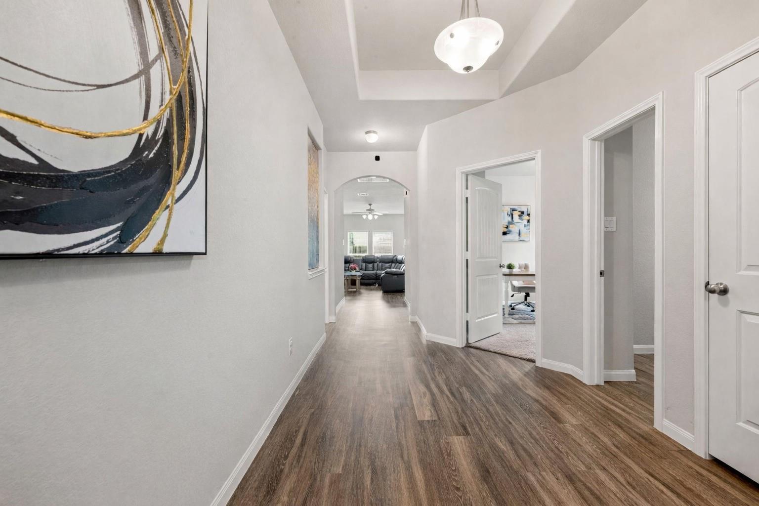 Beautifully maintained one-story home featuring 3 bedrooms and 2 bathrooms, full of charm! Enjoy great curb appeal with a nicely landscaped front yard. Step inside to an open-concept layout with a bright living area that flows seamlessly into a well-appointed kitchen, complete with granite countertops, a center island, breakfast nook and ample cabinet space. The primary suite offers a double sink vanity, walk-in closet, separate shower, and a relaxing soaking tub. Secondary bedrooms are generously sized, with one currently used as a home office. The spacious yard space is perfect for your outdoor activities. Community amenities include a pool, playground, walking trails, and greenbelt spaces. Conveniently located with easy access to Grand Parkway (99), I-10, and Westpark Tollway. Just 12 minutes to Katy Asian Town and 5 minutes to Joe V’s Smart Shop, with shopping and dining nearby. Zoned to Katy ISD. Built in 2018 with major systems in great condition. Schedule your showing today!