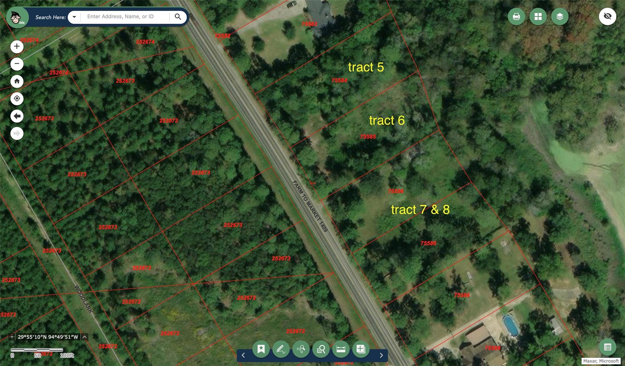 Type in address of 10407 FM 1409 Dayton 77535 or 10639 FM 1409 Dayton 77535 and it will get you to the lots. Signs are on the property nailed to trees. Tract 6 and Tract 7 & 8 are also available for purchase and are on the MLS.