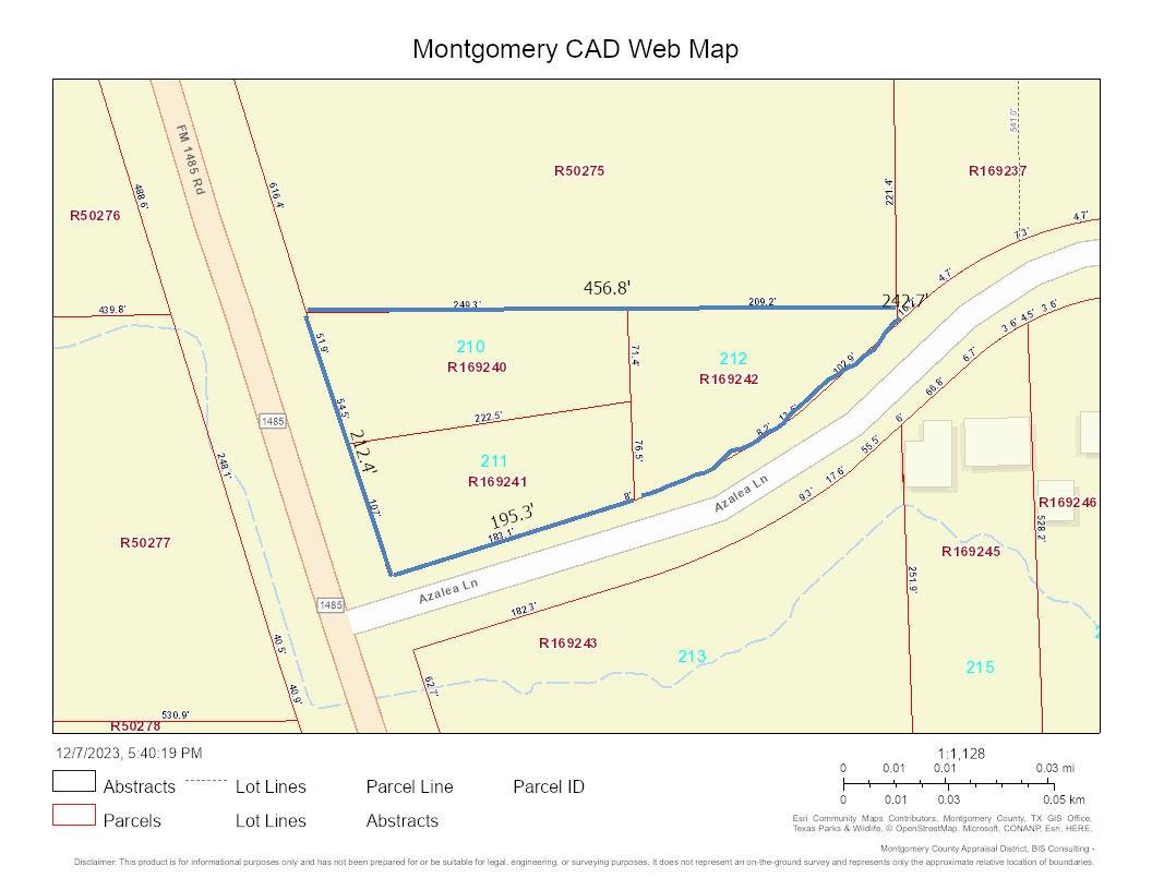 BIG PRICE DROP! This property has over 200 feet of frontage on FM 1485 W and over 400 feet on Azalea Lane. This property is designated for residential or commercial use and is not in a special flood hazard. This is a great opportunity to invest in a rapidly growing area. TXDOT is planning improvements on FM 1485, to help accommodate the growing population.