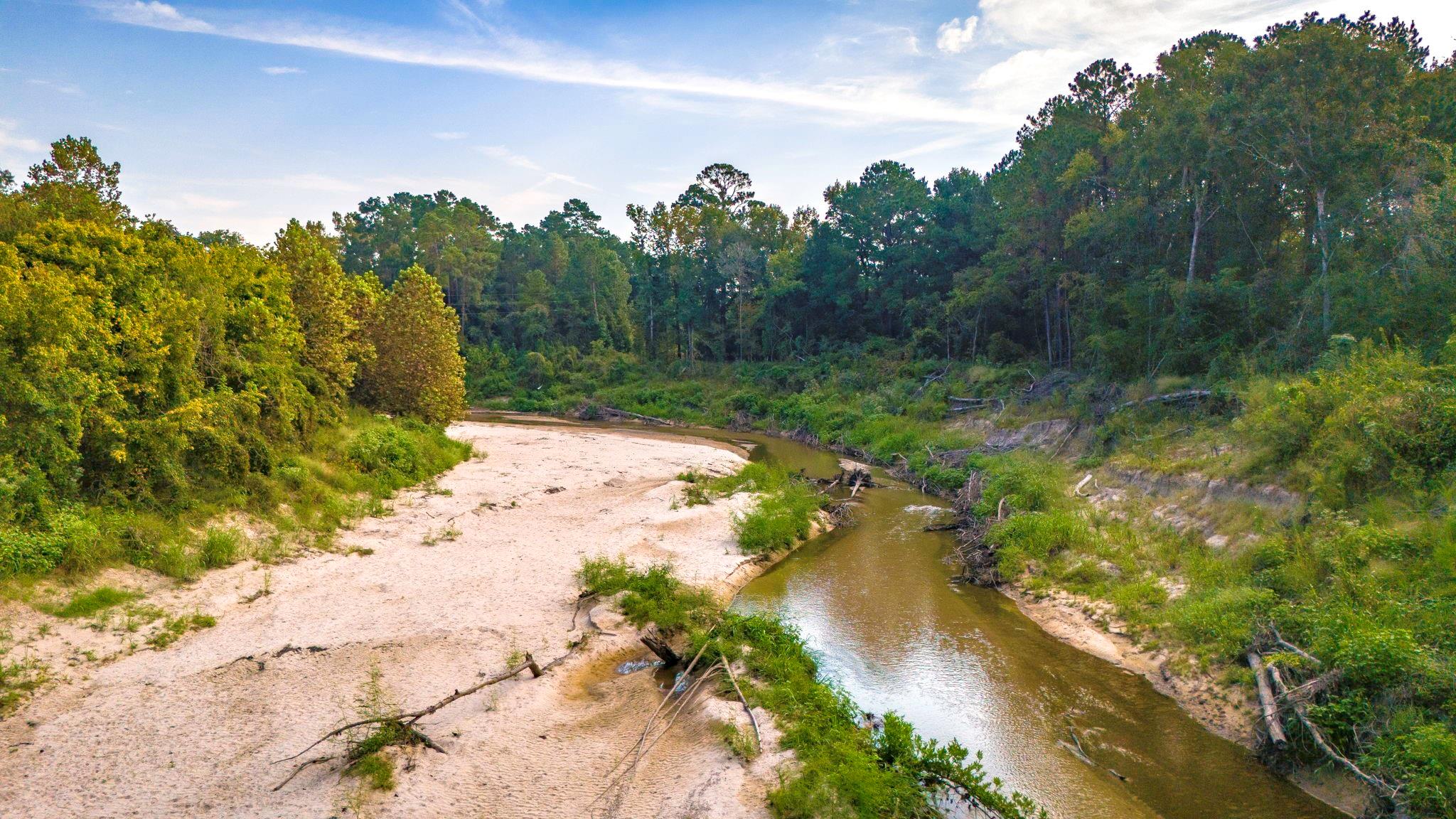 Experience an Outdoorsman's Haven; 176-acres with canopies of mature hardwoods and pines full of wildlife opening up to a serene, winding creek with sandy banks for exploration and fishing. This property offers a quiet recreational getaway in a forest only 65 miles from Houston.