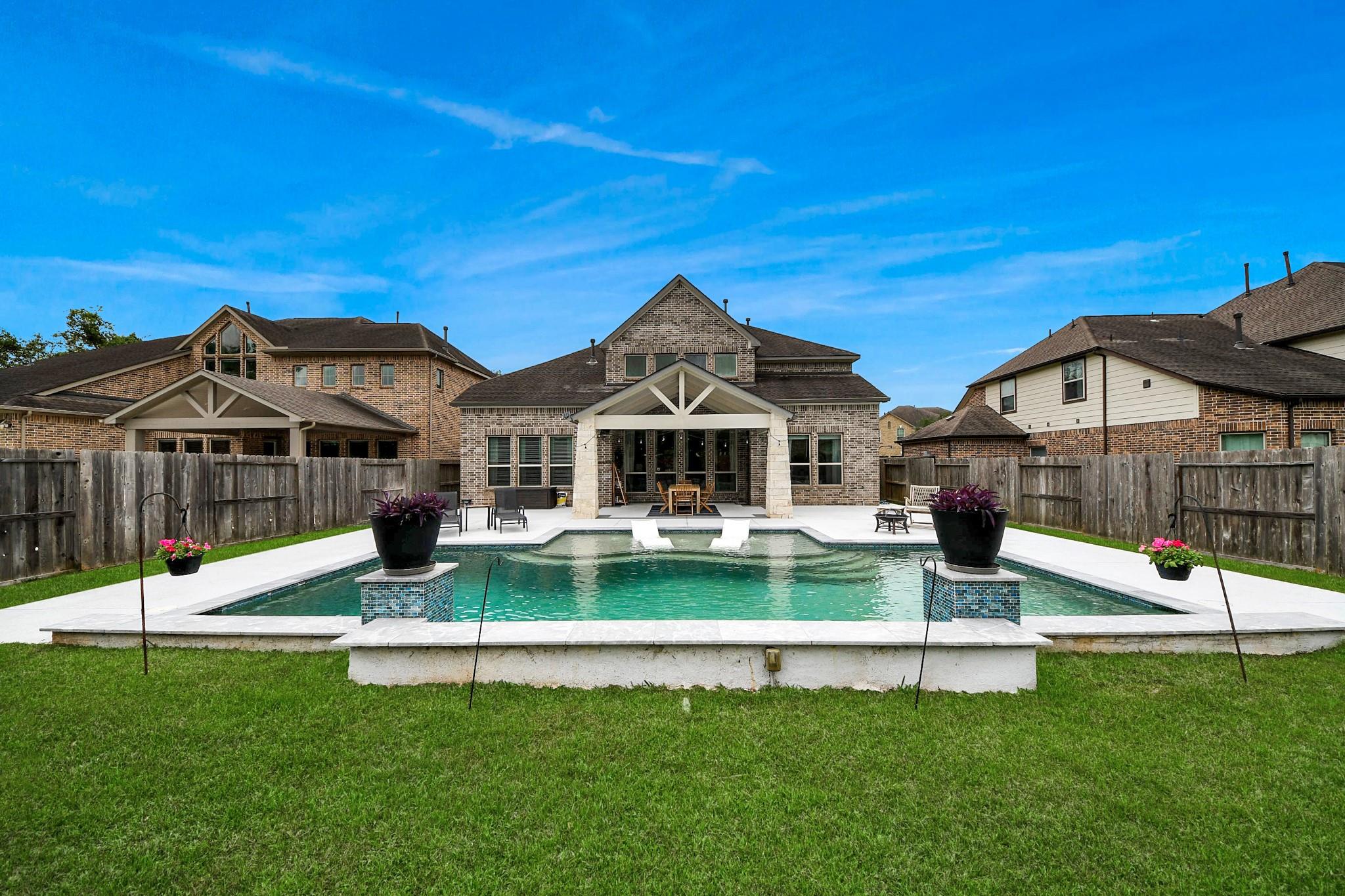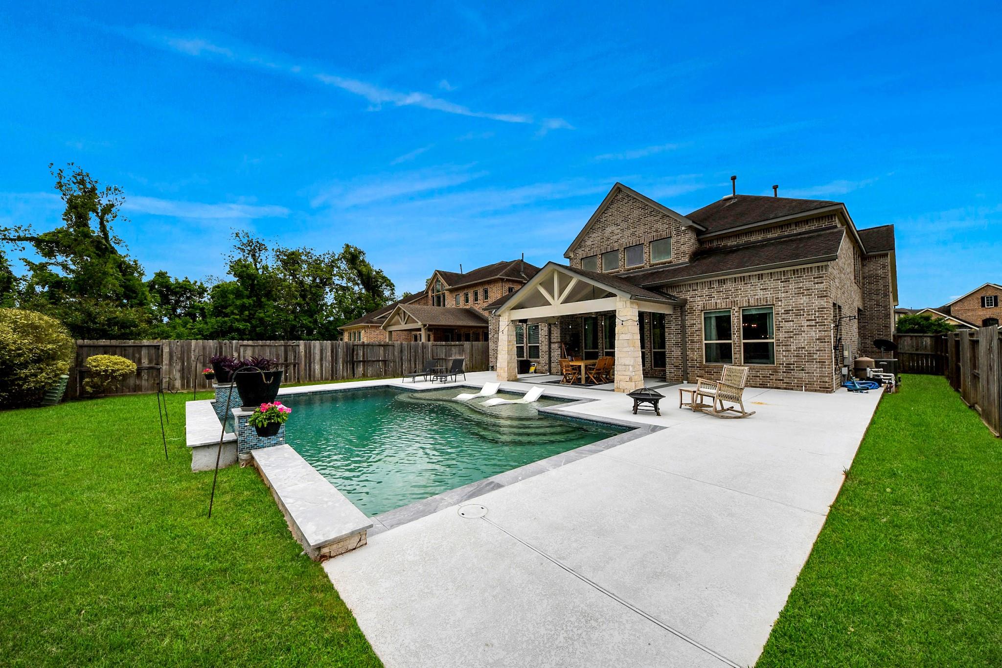 Welcome home! This stunning 4 bed/3.5 bath beauty in Sawmill features a WATERFALL POOL & is filled w/ LUXURIOUS FINISHES. Nestled on a cul-de-sac just mere minutes from Ridge Point HS, Thorton Middle & Leonetti Elementary. Upon entering, a sweeping staircase crowns the grand entry, while soaring ceilings & walls of glass frame the light-filled living spaces below. A striking chef’s kitchen anchors the home, featuring a dramatic quartz island, premium appliances & custom details. Upstairs, a huge game room & cinematic media lounge offer elevated escapes, complemented by beautifully appointed secondary suites w/ private baths. Primary retreat is a study in calm sophistication, paired w/ spa-like finishes. Outdoors, a resort-caliber setting awaits! COVERED PATIO w/ exposed beams, a CUSTOM POOL w/ SUN SHELF & expansive decking for intimate evenings & lively gatherings. Seamlessly balancing scale, style & serenity, this home delivers an experience that feels elevated & effortlessly livable!