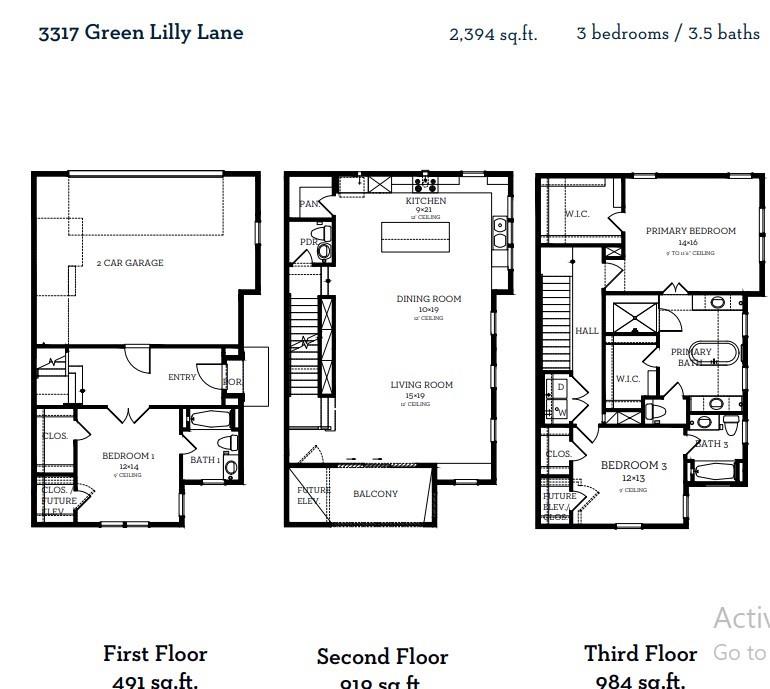 Second FloorLiving:15x19Dining:10x19Kitchen:9x21