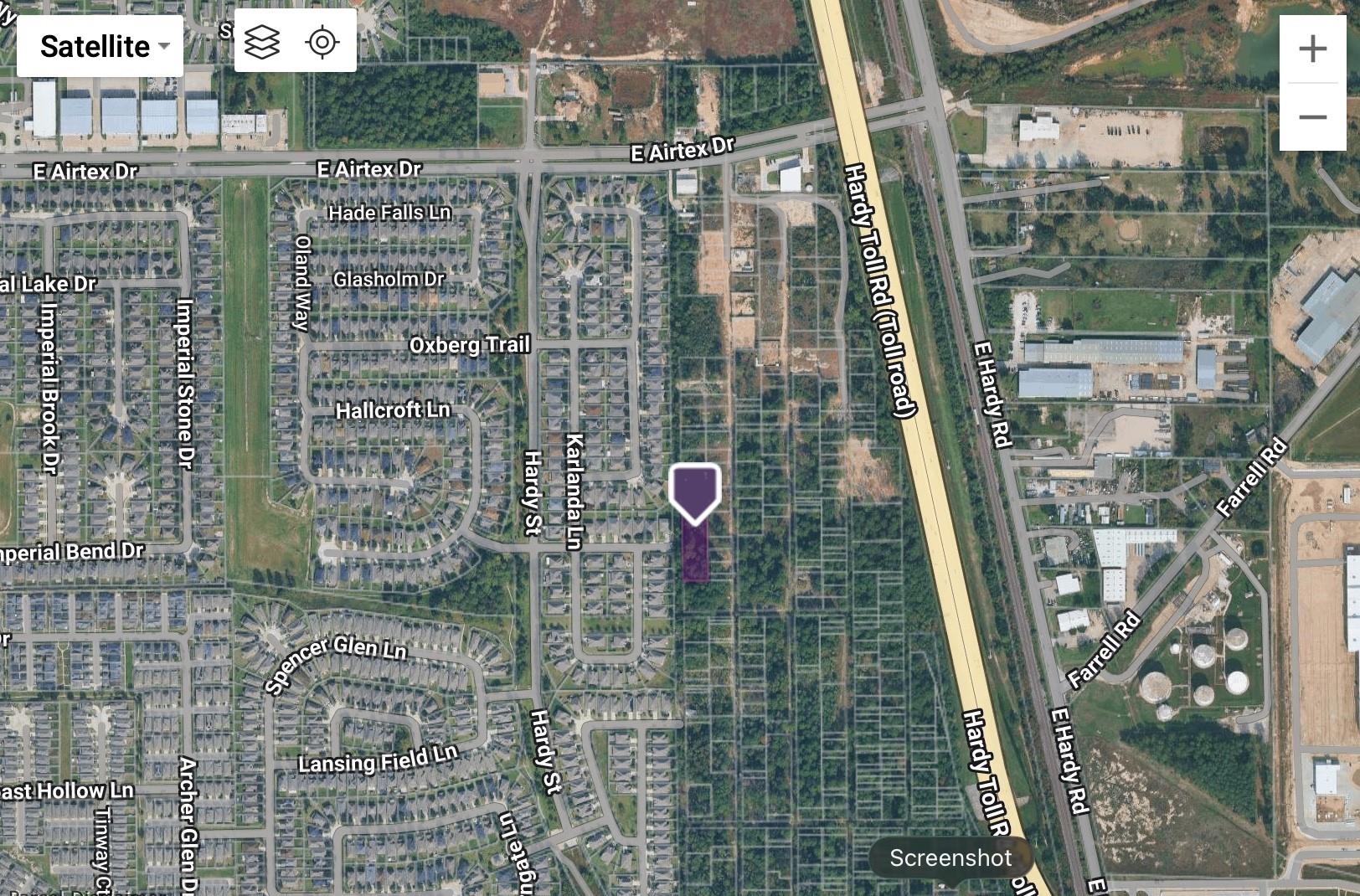 These are eighteen lots, each measuring 25 feet by 100 feet, totaling 45,000 square feet. Access to the land is available through Roselinda. The property is situated in close proximity to Airtex, situated between Hardy Toll Road and a new subdivision. For precise location details, please refer to the accompanying photographs or map on Har. This land is currently in its natural state, heavily forested. While there is no road currently, some of the land is being cleared by other owners in the vicinity.