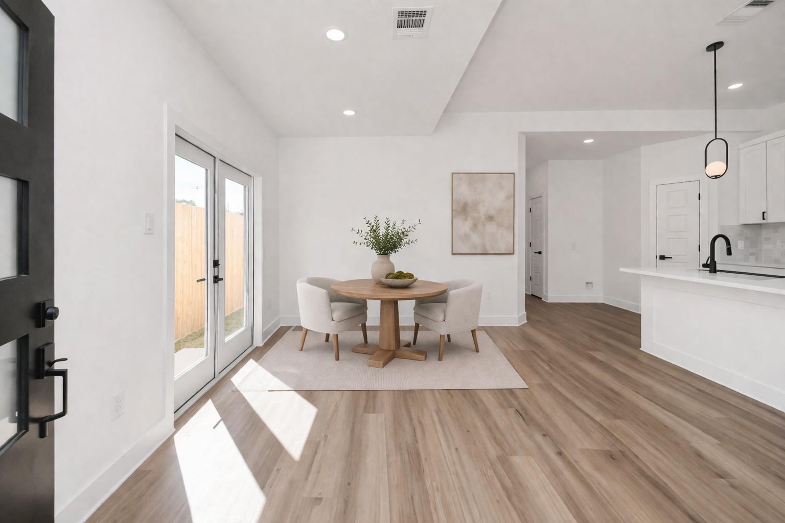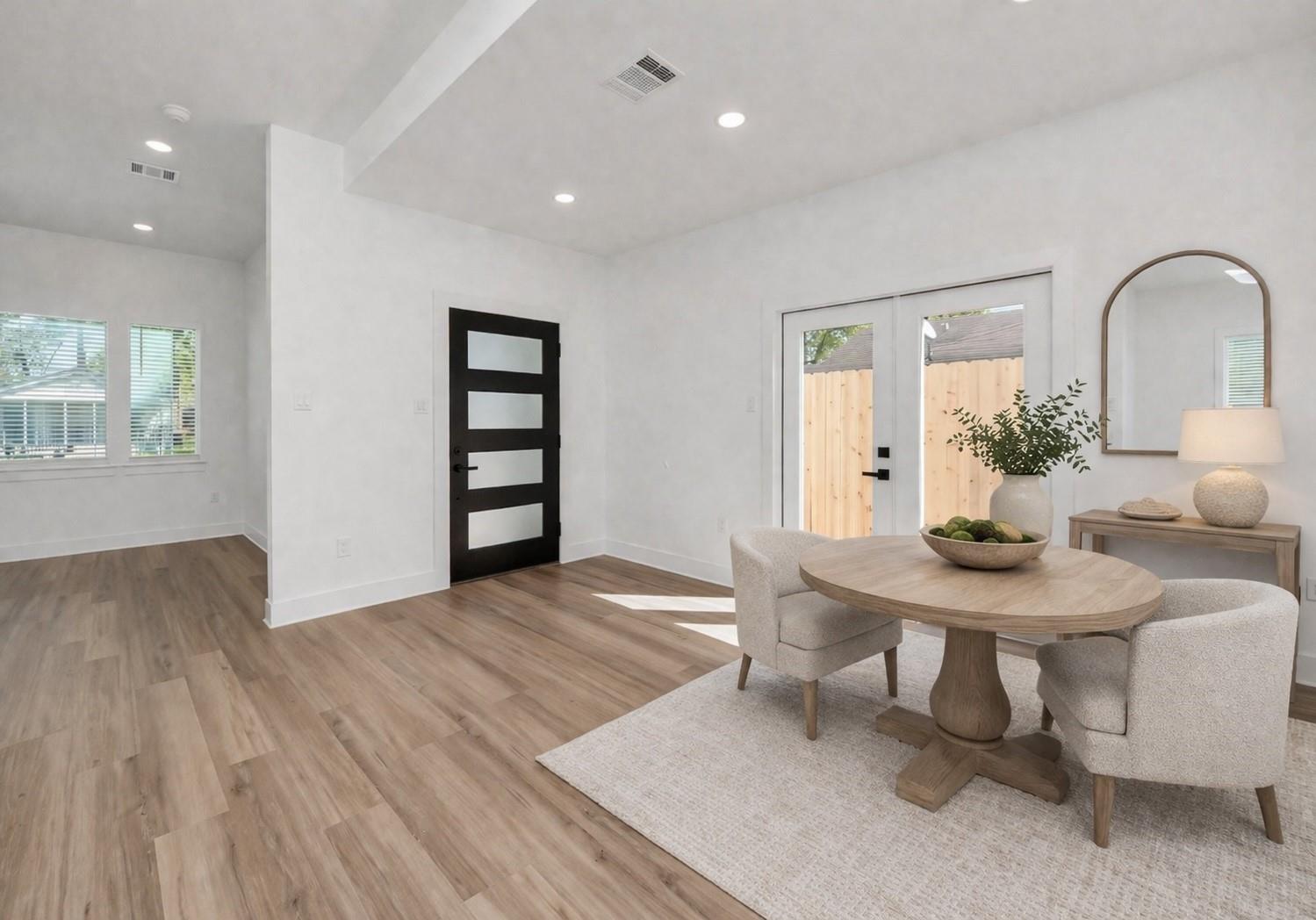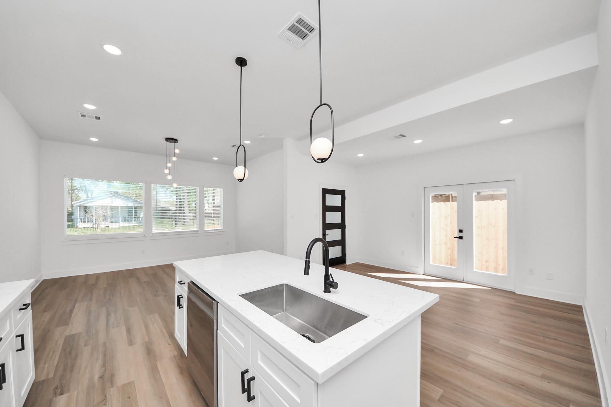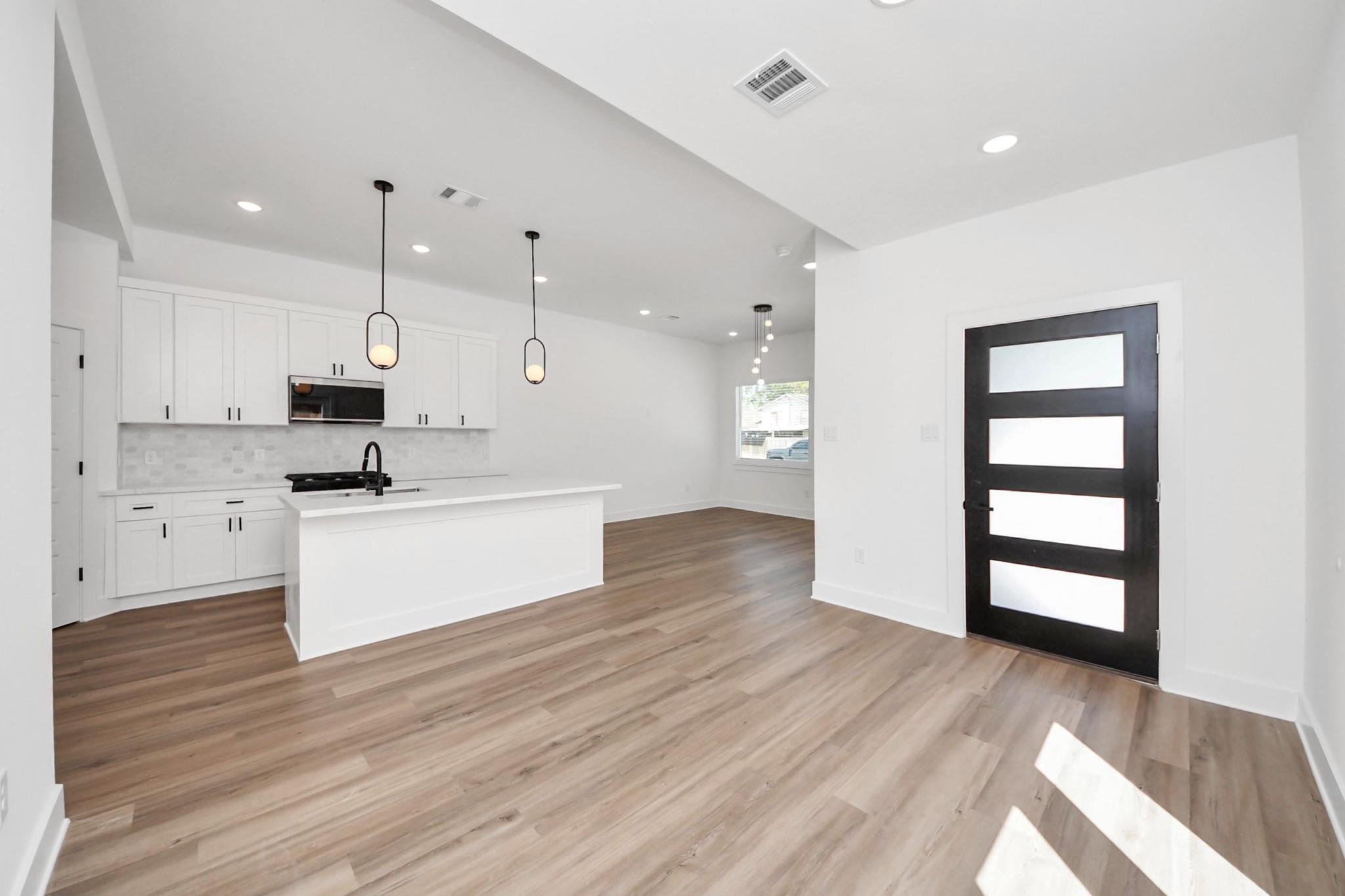 Take advantage of this exceptional opportunity to customize a brand-new duplex designed for modern living & strong investment potential. Each beautifully crafted ONE-STORY unit offers 3 spacious bedrooms, 2 full baths, an open-concept layout, private yard, & dual backyard access points for added convenience. Upscale finishes include quartz countertops, shaker-style cabinetry, champagne-toned fixtures, stainless steel appliances, designer chandeliers, oversized shower tile, & durable luxury vinyl plank flooring throughout. The fully fenced backyard provides a secure and private space ideal for pets, entertaining, or outdoor relaxation. Located with easy access to Hwy 69 and Loop 610, this property offers outstanding connectivity while positioned in an area experiencing continued revitalization & growth. Perfect for investors or owner-occupants looking to “house hack” — live in one unit & lease the other to offset your expenses while building long-term equity & generating passive income.