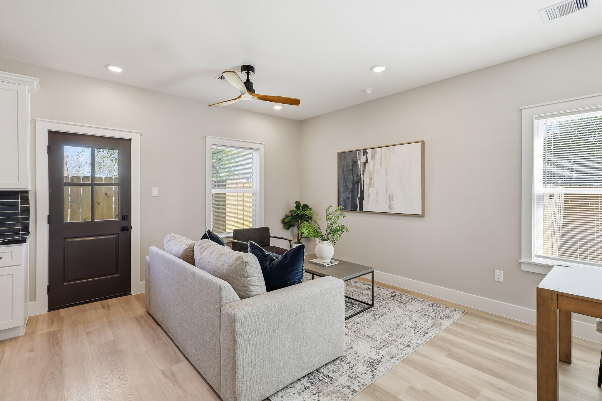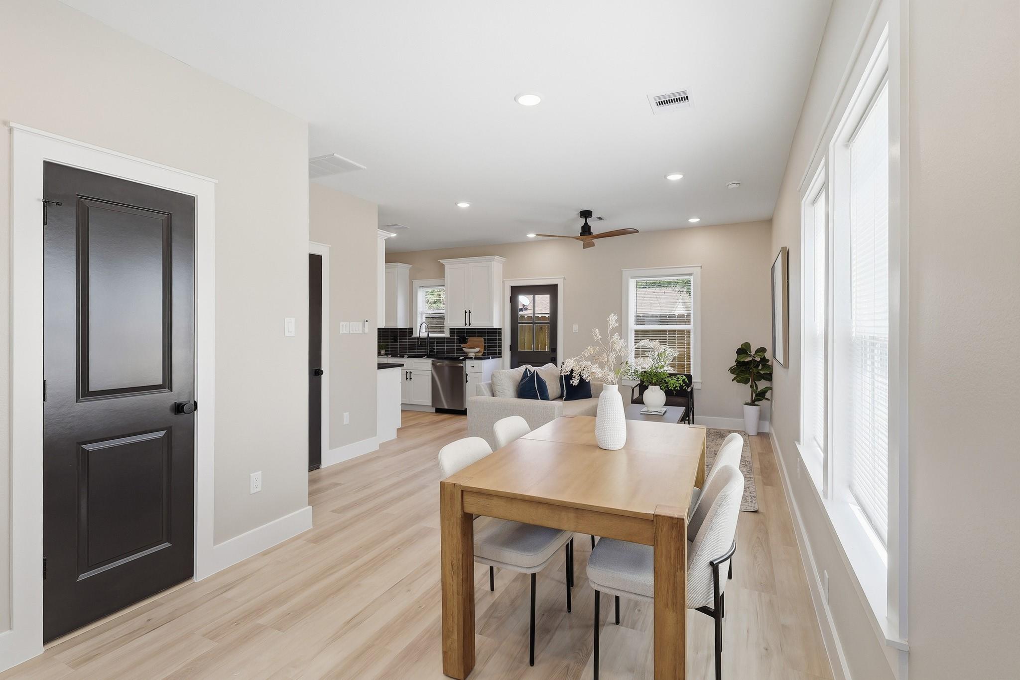 This stunning 3-bedroom, 2.5-bathroom (per side) duplex offers modern luxury in a prime location just minutes from HWY 288, Medical Center. Nestled within a gated community, each unit is thoughtfully designed with sleek black exterior windows, a single-car garage with an opener, and a keypad front door entry for added convenience. The open-concept layout features luxury vinyl flooring, quartz countertops, and stainless steel appliances, while the bathrooms showcase vessel sinks and beautiful custom tile work. With plenty of closet space and high-end finishes throughout, this duplex combines style and functionality. Whether you're looking for a primary residence or an income-generating investment, this property is ideal for house hacking—live in one unit while renting out the other.Great for long-term, short-term, or Airbnb rentals. No flooding! SCHEDULE YOUR SHOWING NOW. WONT LAST LONG! ASK ABOUT THE SELLER CONCESSIONS AND BRING NO MONEY DOWN!
