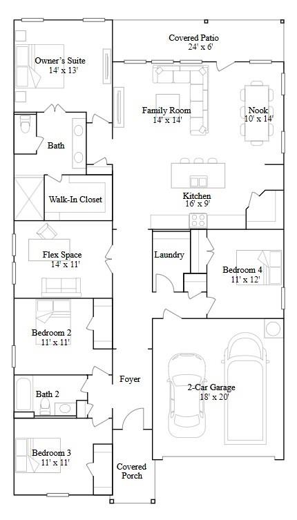 First FloorFamily Room:14x14Dining:10x14Kitchen:16x9Primary Bedroom:14x13Bedroom:11x12Bedroom 2:11x11Bedroom 3:11x11Extra Room:14x11