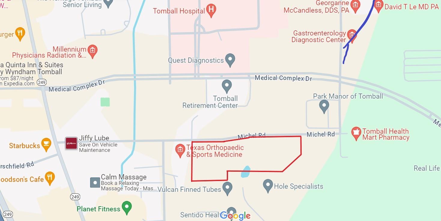 10.1524 ACRES in the heart of the Tomball. The City of Tomball recently updated the Comprehensive Plan Future Land Use designations. This tract is now included as a MIXED USE designation. Located adjacent to Texas Orthopedic & Sports Medicine Hospital. Approximately 1,115' of frontage on Michel Rd. Mostly wooded. Utilities available.
