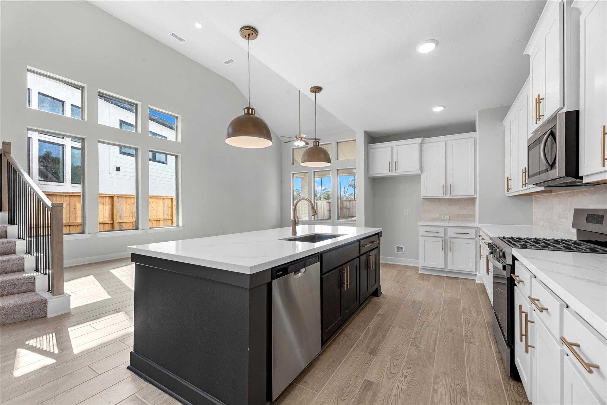 InteriorFloors:Carpet,TileCountertop:QuartzBathroom Description:Full Secondary Bathroom Down,Primary Bath: Double Sinks,Primary Bath: Separate Shower,Primary Bath: Soaking Tub,Secondary Bath(s): Tub/Shower Combo,Vanity AreaBedroom Desc:2 Bedrooms Down,3 Bedrooms Up,En-Suite Bath,Primary Bed - 1st Floor,Walk-In ClosetKitchen Desc:Island w/o Cooktop,Kitchen open to Family Room,Pantry,Walk-in PantryRoom Description:Breakfast Room,Entry,Family Room,Gameroom Up,Utility Room in HouseHeating:Central GasCooling:Central ElectricConnections:Electric Dryer Connections,Gas Dryer Connections,Washer ConnectionsDishwasher:YesDisposal:YesMicrowave:YesRange:Gas CooktopOven:Electric OvenEnergy Feature:Attic Fan,Ceiling Fans,Digital Program Thermostat,Energy Star/CFL/LED Lights,Energy Star/Reflective Roof,High-Efficiency HVAC,Insulated/Low-E windows,Insulation - Batt,Insulation - Blown Fiberglass,Radiant Attic BarrierInterior:Alarm System - Owned,Fire/Smoke Alarm,High Ceiling