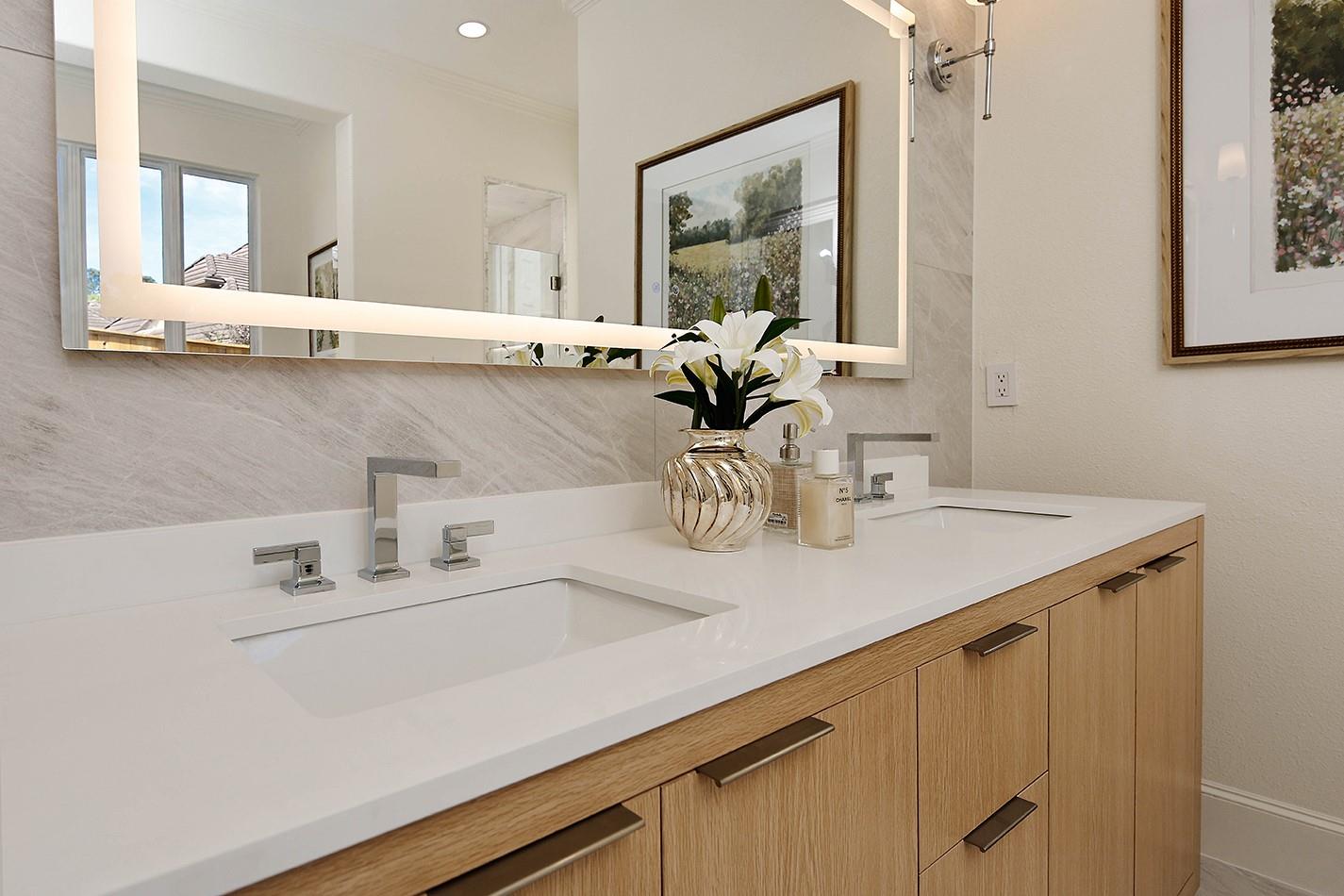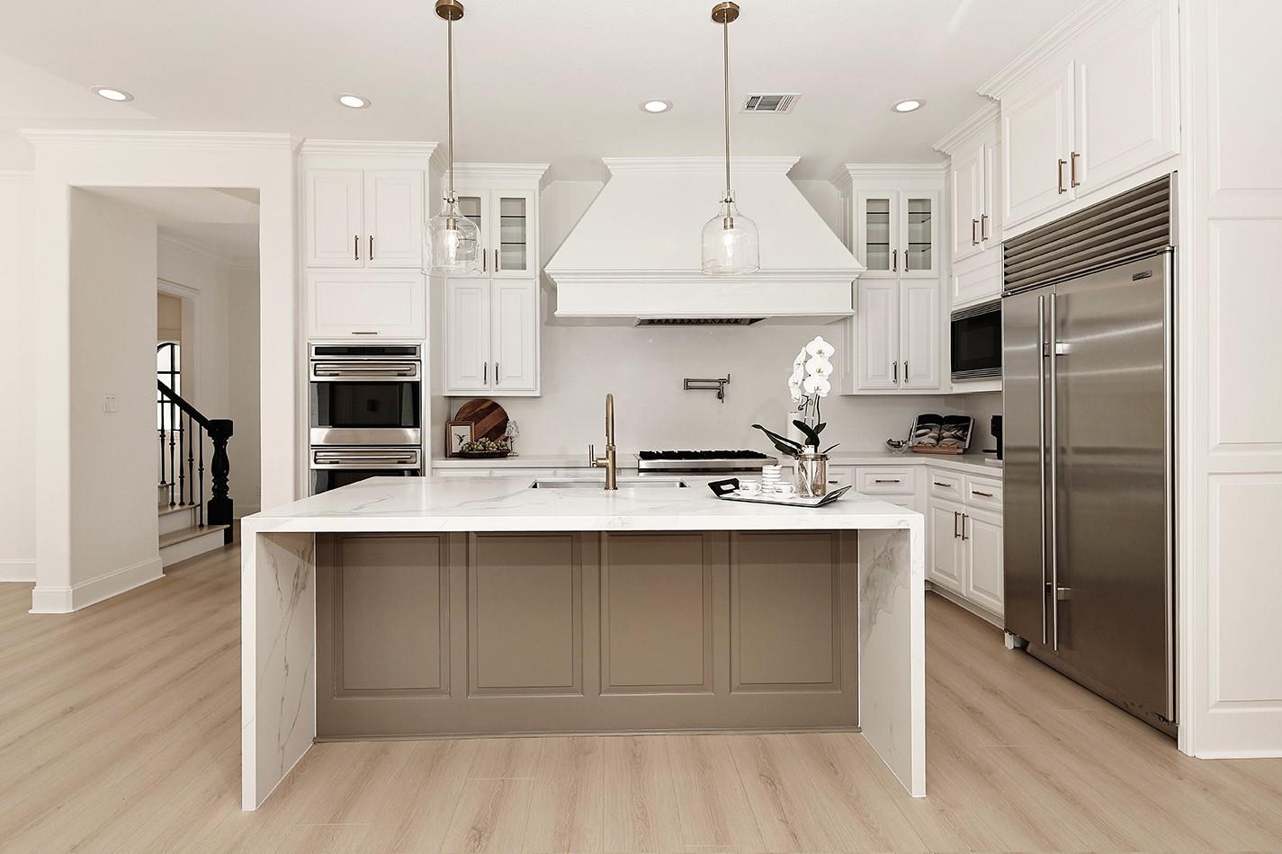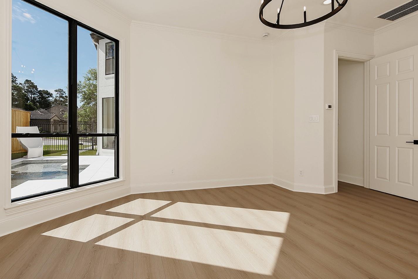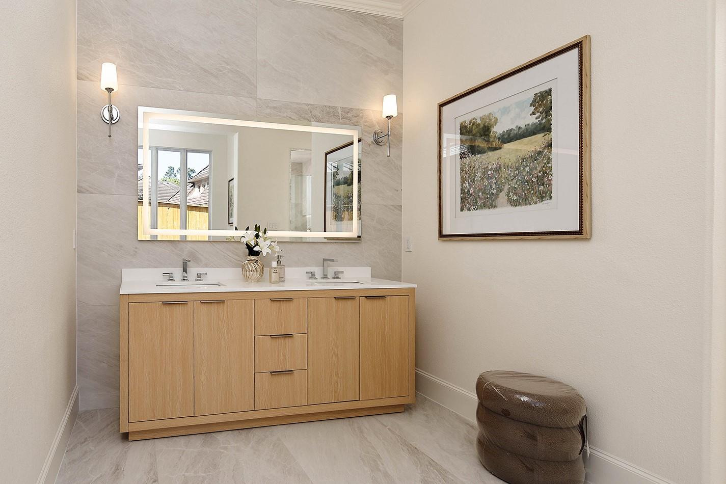 Exquisitely remodeled home in the Rhapsody Bend neighborhood of Sterling Ridge - just a short stroll or golf cart ride to the Woodlands Country Club and Gary Player Golf Course! Zoned to top rated schools and close to shopping and fine dining, this neighborhood is known for its meticulously maintained homes and serene surroundings. A freshly painted interior, new designer light fixtures, 4 year old tile roof, 2 new water heaters, 3 new a/c units, quartz counters, remodeled baths, and luxury vinyl plank wood-look flooring throughout are just a few highlights of this home. The open concept island kitchen with dual wall ovens, a 6 burner gas cooktop with pot filler, built-in fridge and spacious pantry overlooks the light filled breakfast and family rooms with stunning fireplace. Primary bedroom and 2nd bedroom suite downstairs; upstairs you'll find 2 additional bedrooms, 2 full baths, a game room and media room. The remodel extends to a brand new timeless pool in the backyard!