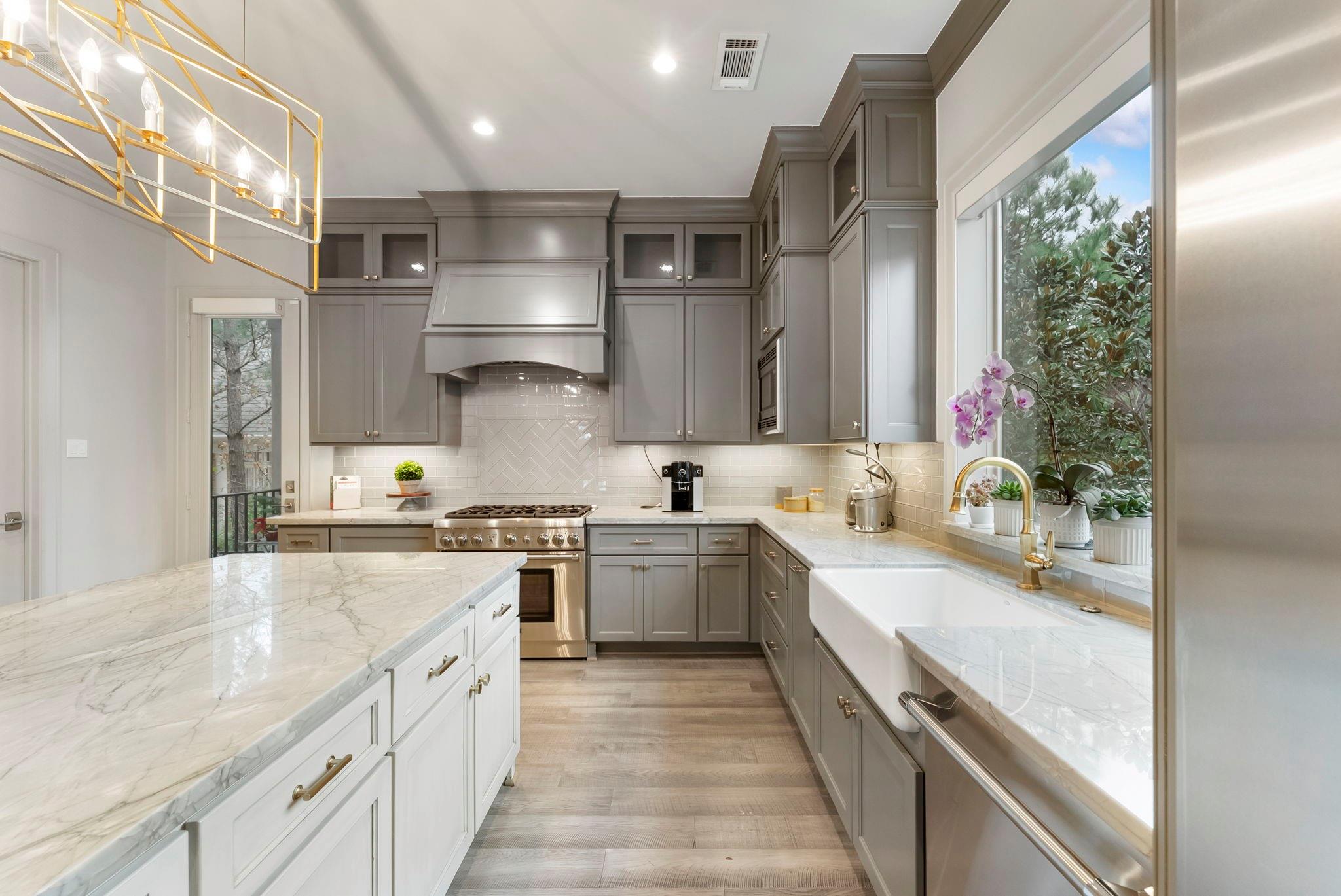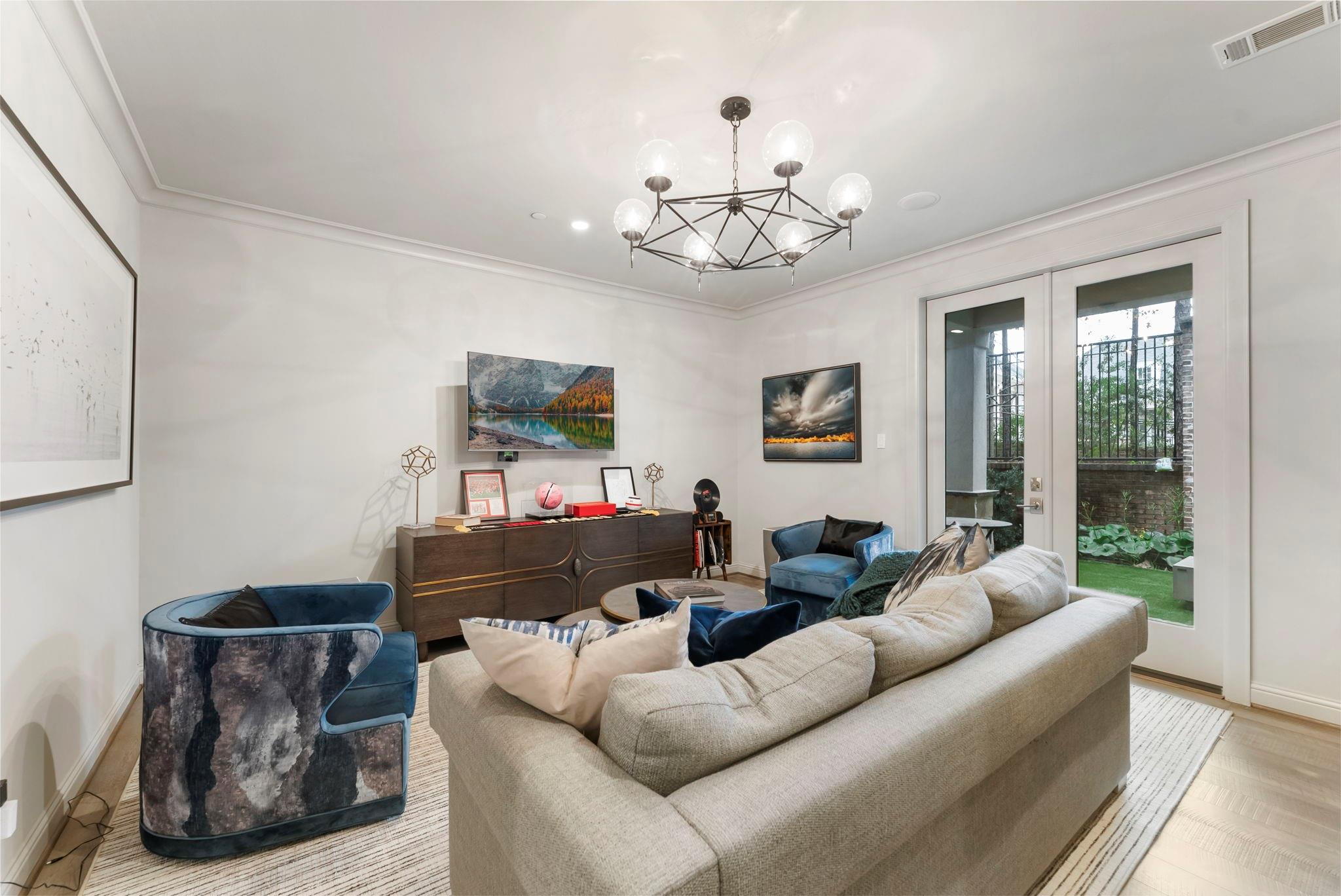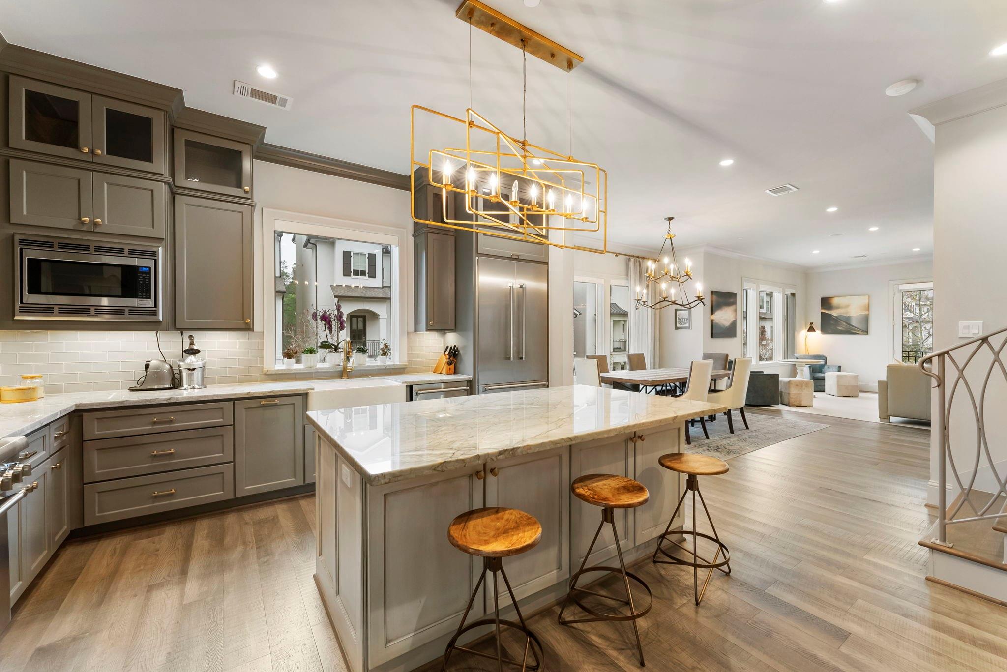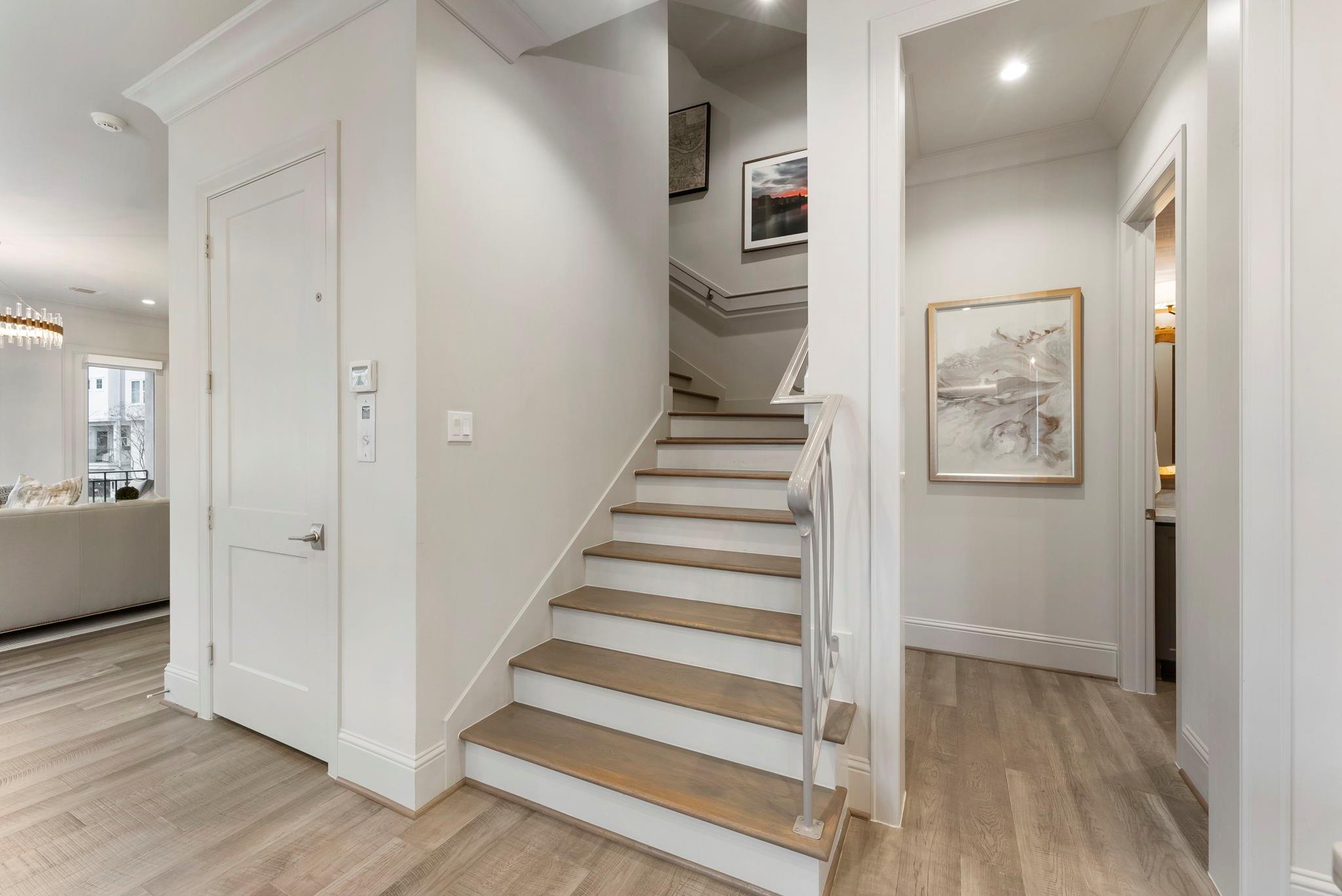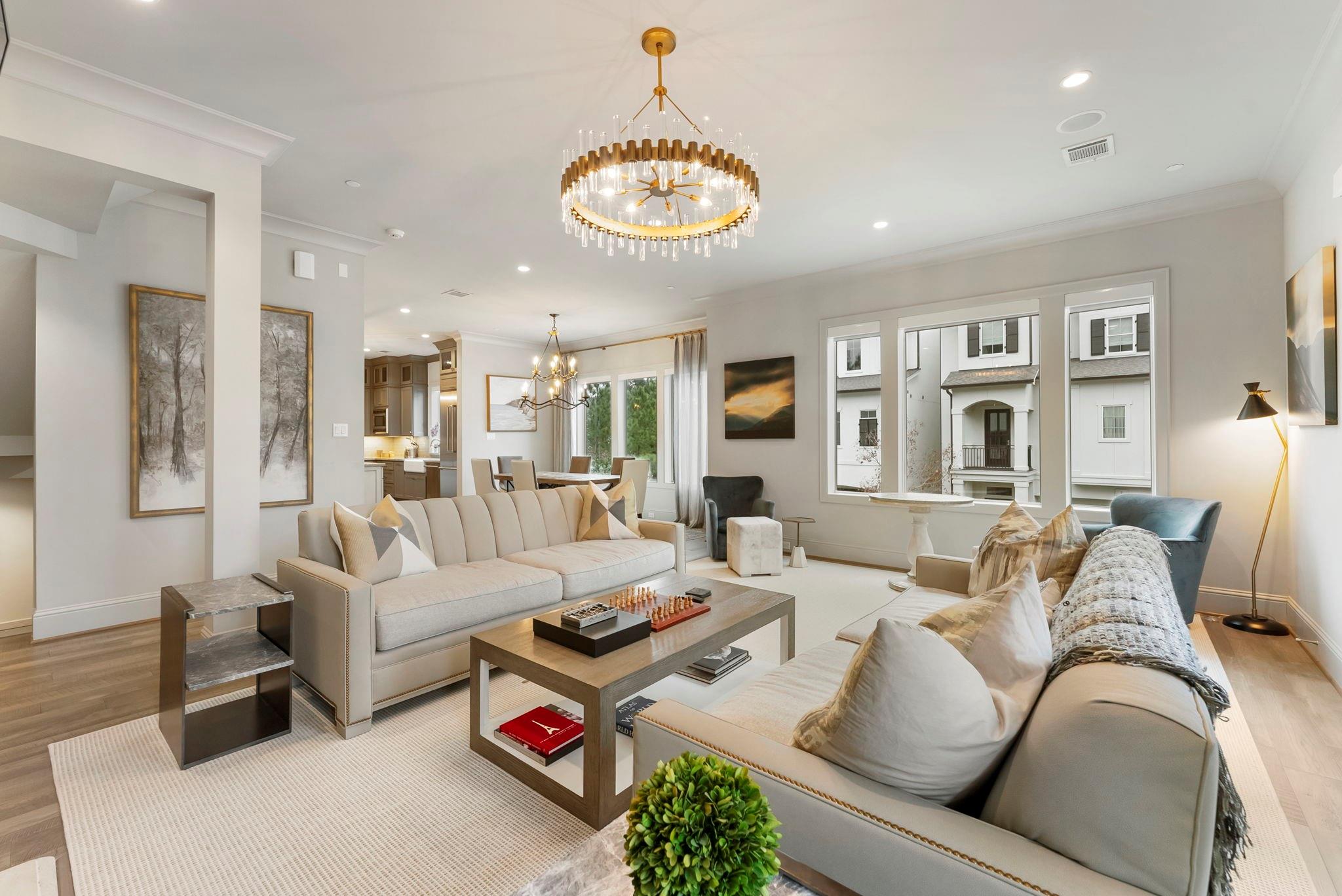 Prestigious gated Waterway Landing in East Shore: corner-lot 4-story luxury townhome steps to Market Street and fine dining. No rear neighbors; private fenced yard; full two-car driveway; elevator for easy access.1st-floor flex room with full bath opens to backyard with outdoor kitchen, turf grass, water feature & gas firepit. 2nd-floor offers walls of windows, kitchen/living: custom kitchen, oversized island, Thermador range, designer lighting, built-in wine bar; formal dining + living with gas-log fireplace and private balcony overlooking wooded island. 3rd-floor primary suite with private balcony; marble spa bath w/soaking tub & shower, custom walk-in closet; utility room on 3rd. 4th floor: two spacious guest retreats. Hardwoods and custom finishes throughout. An exclusive opportunity in one of East Shore’s most sought-after gated communities, offering luxury, privacy, and unbeatable access to the best of Town Center. Must see, won't last.