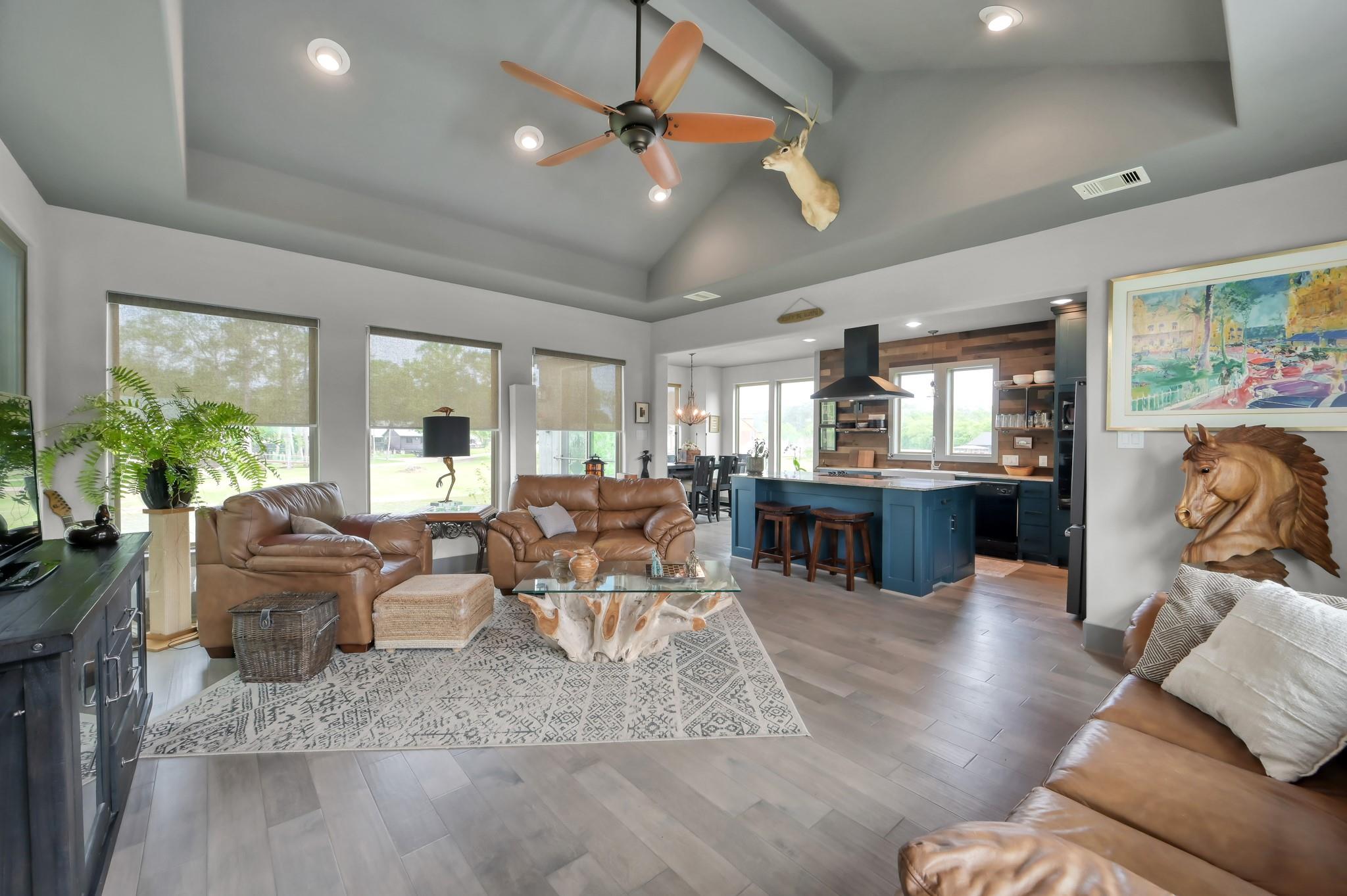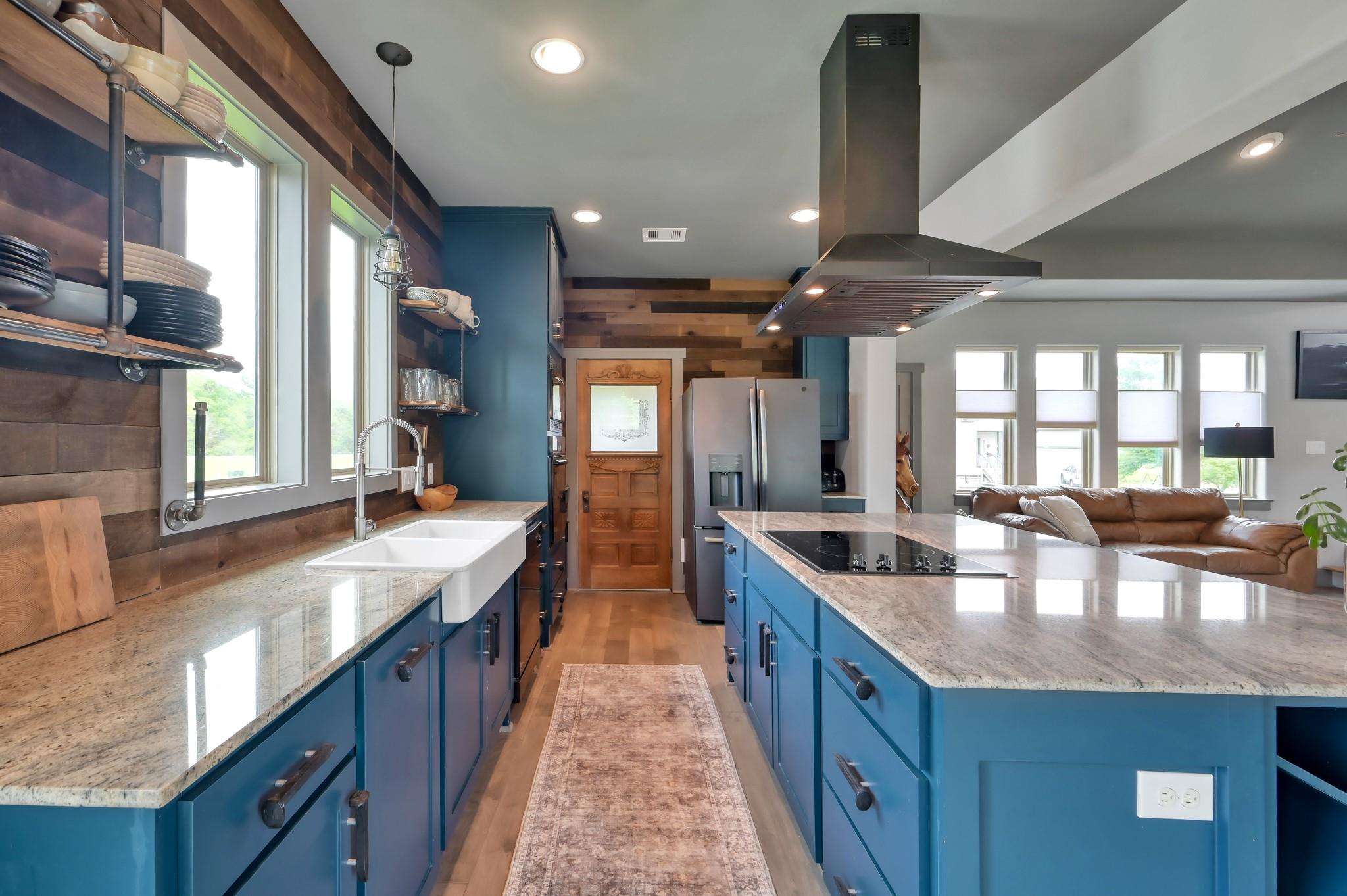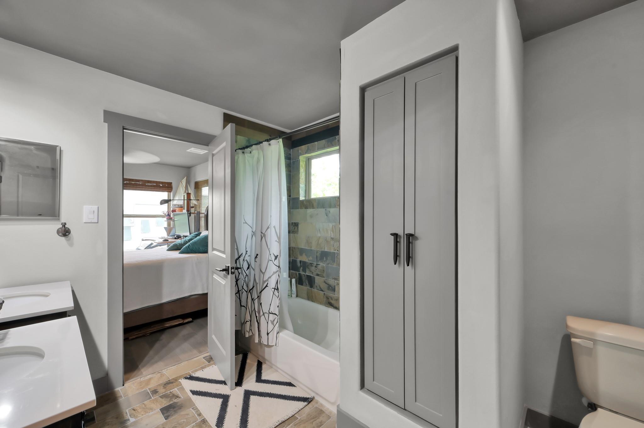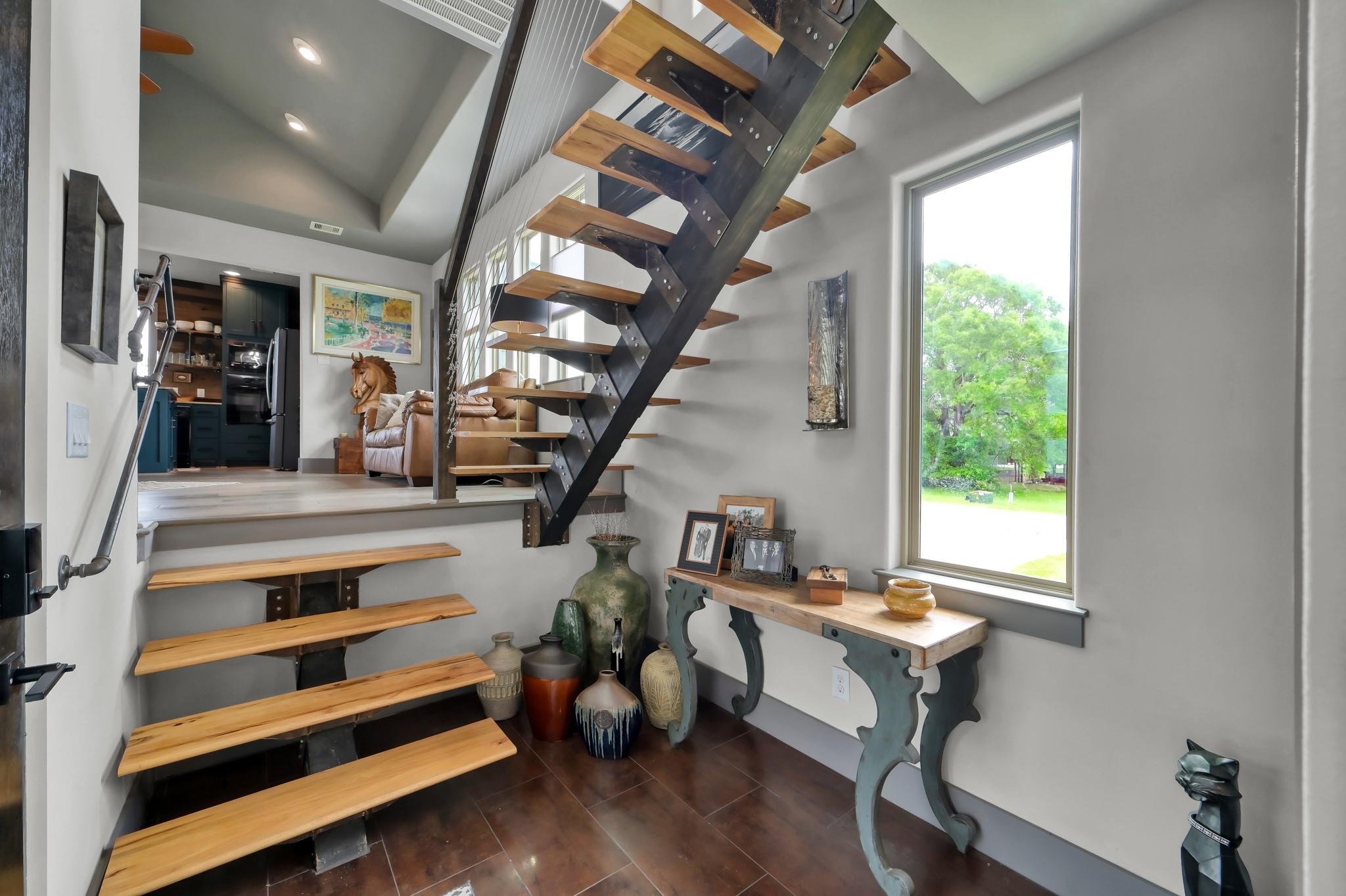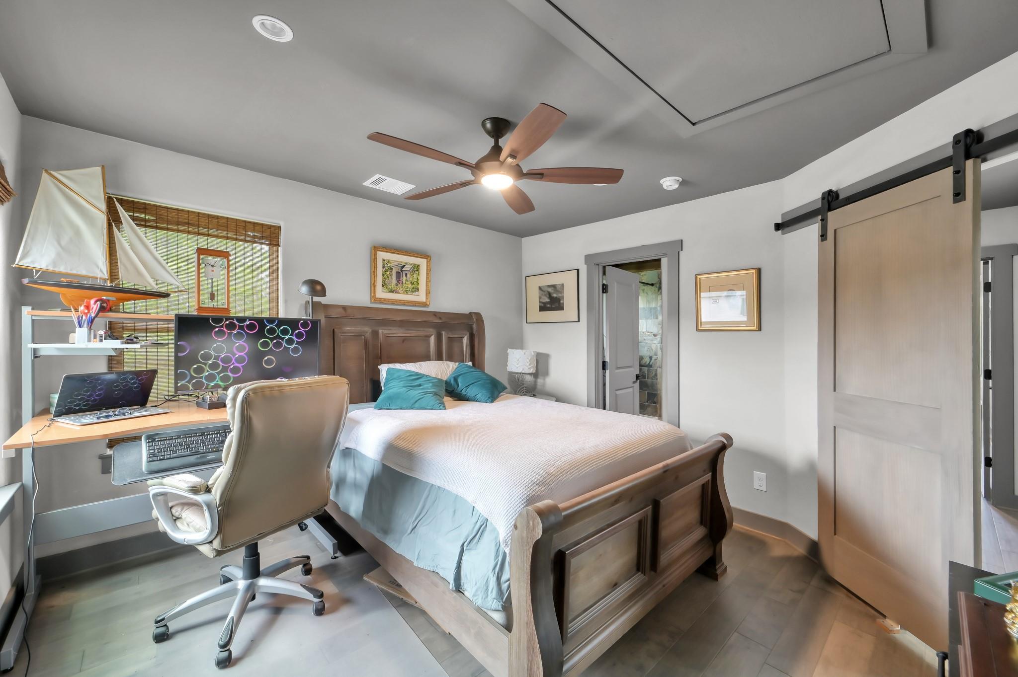 Architect-designed lakefront retreat in prestigious Wildwood Shores, Huntsville, set on the tranquil north end of Lake Conroe within Sam Houston National Forest. Private waterfront sanctuary surrounded by towering trees, protected forest land, and abundant wildlife. 1,926 SF split-level home blending modern sophistication with warm, mountain-inspired design. Open-concept living with vaulted beam ceilings and walls of glass capturing sweeping lake and forest views. Kitchen features granite countertops, natural wood-planked walls, large windows, and walk-in pantry with antique etched-glass door. Sculptural floating hickory staircase with cable railing leads to upper guest rooms with Jack-and-Jill bath. Private lower-level primary suite w/walk-in closet and full bath. Outdoor living includes private boat slip and lift, fishing-friendly bulkhead, and elevated deck for entertaining or sunset views. Gated community offers pools, tennis courts, boat launches, and resort-style setting.