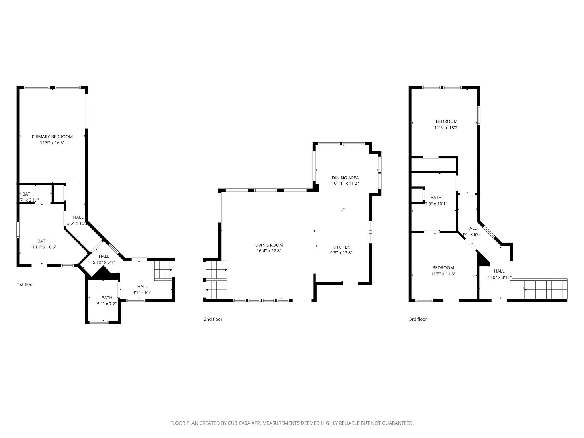 Third FloorBedroom:11.5" x 18.2"Bedroom 2:11.5" x 11.6"Bath:7.8" x 10.1"