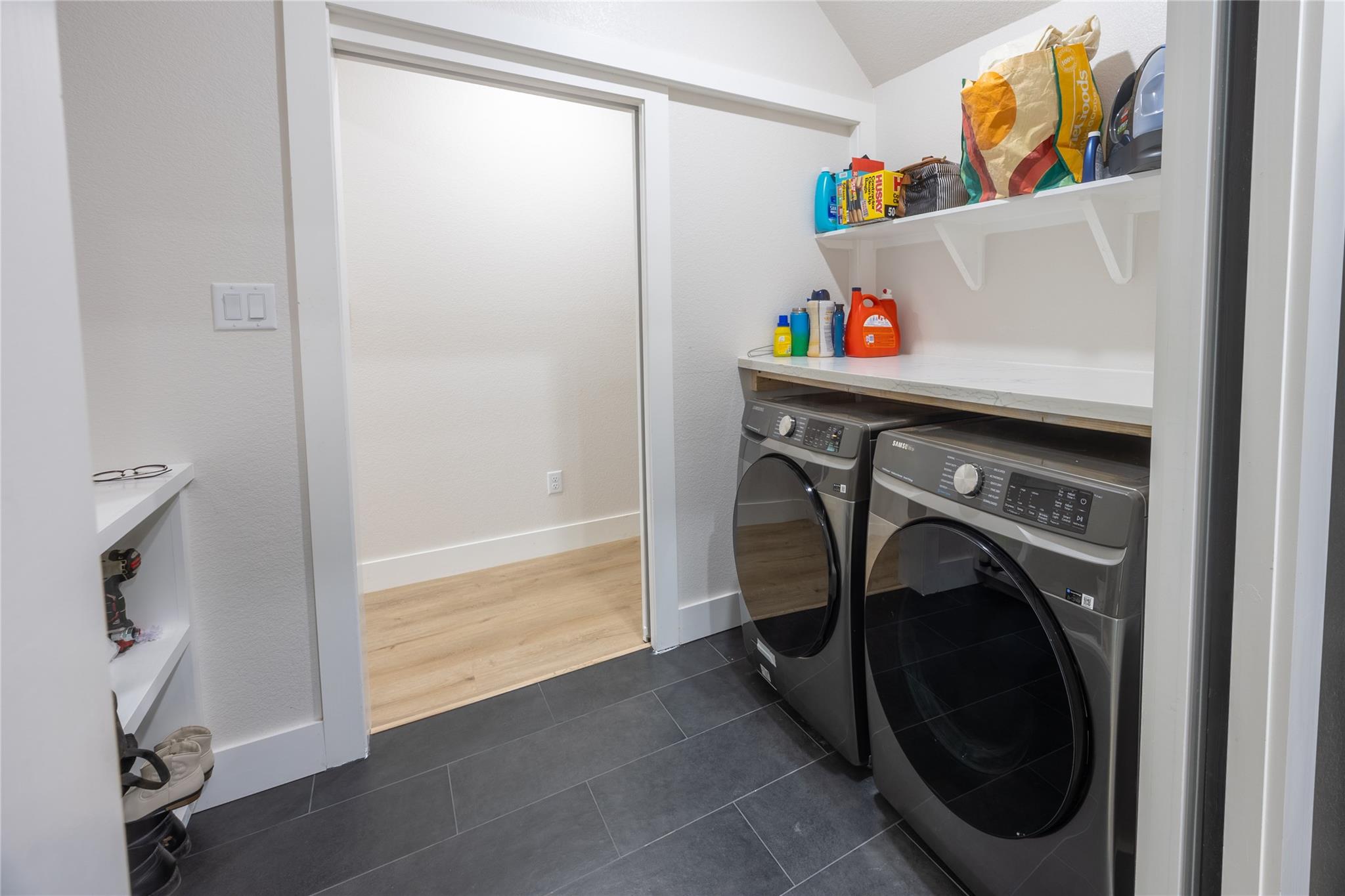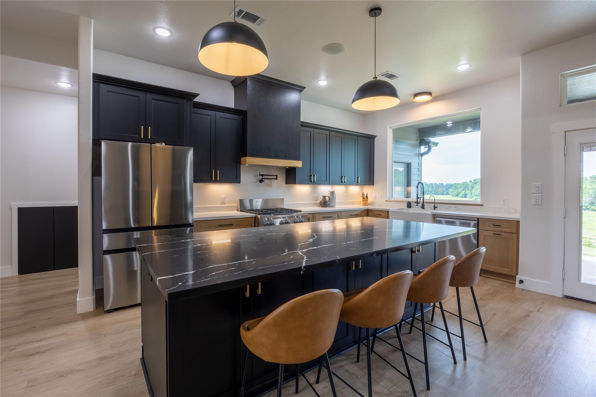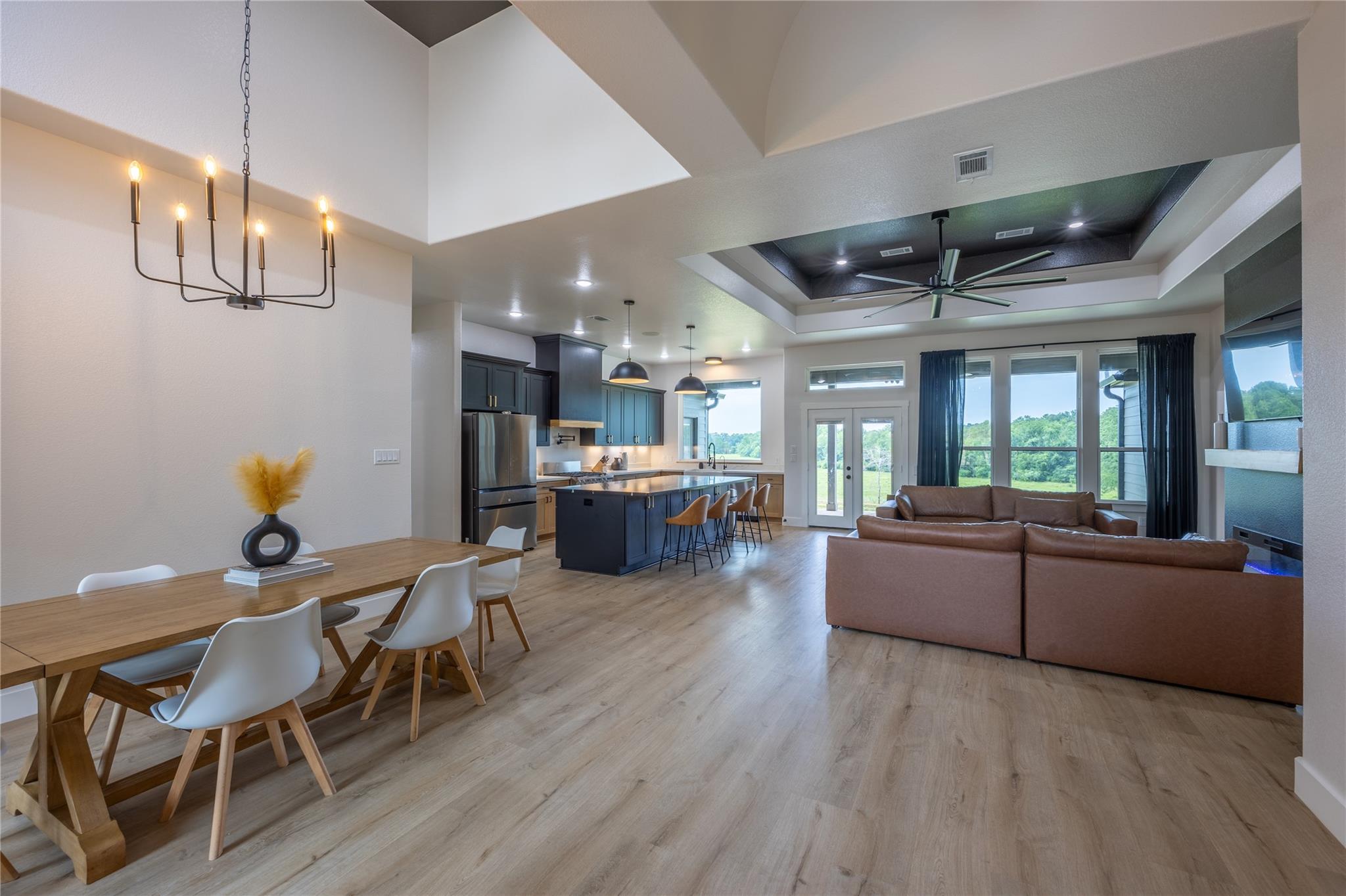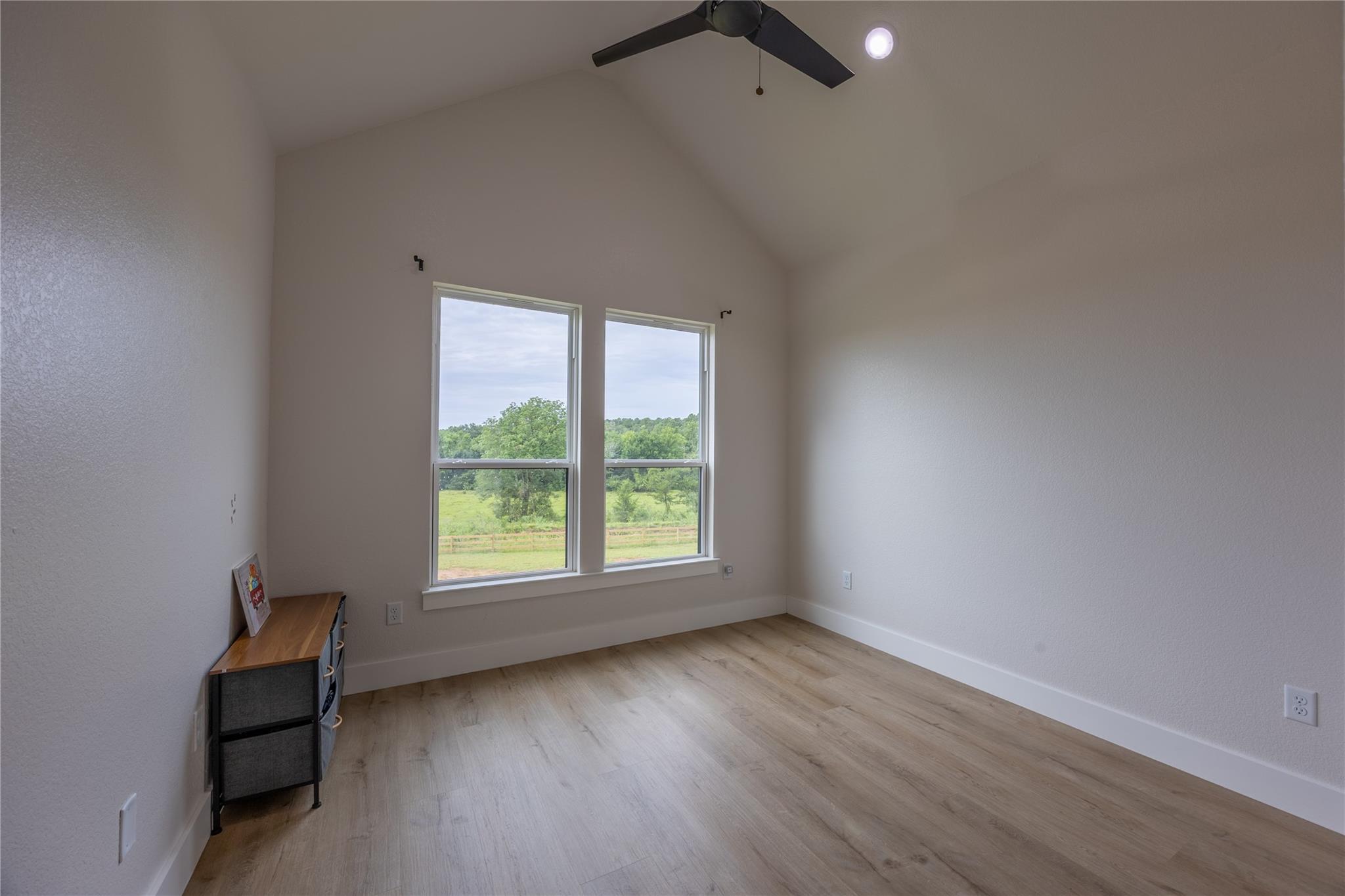 Come see this modern home on 17.8 acres with breathtaking views and no back neighbors! This open-concept beauty features tall ceilings, a massive kitchen island with built-in storage, 36" range, modern vent hood, soft-close cabinets, large pantry, and oversized windows framing the peaceful backyard. Living room offers a sleek electric fireplace with hidden mantle storage. 3 vaulted-ceiling bedrooms, including a primary suite with stunning views, standalone tub, huge shower, and a spacious walk-in closet. Upstairs includes a large flex room (office/game/homeschool), a half bath, and a bonus room perfect for a theater or gym. Plus, 3 hidden “secret” rooms kids will love! Outside: a 25x40 workshop with 4 roll-up doors and plumbing for a future bathroom, full basketball/pickleball court, and a huge covered patio. Spray foam insulation, tankless propane water heater, and 2-stage AC with 3-zone control. Quiet, private, and truly one of a kind—you won’t find another property like this