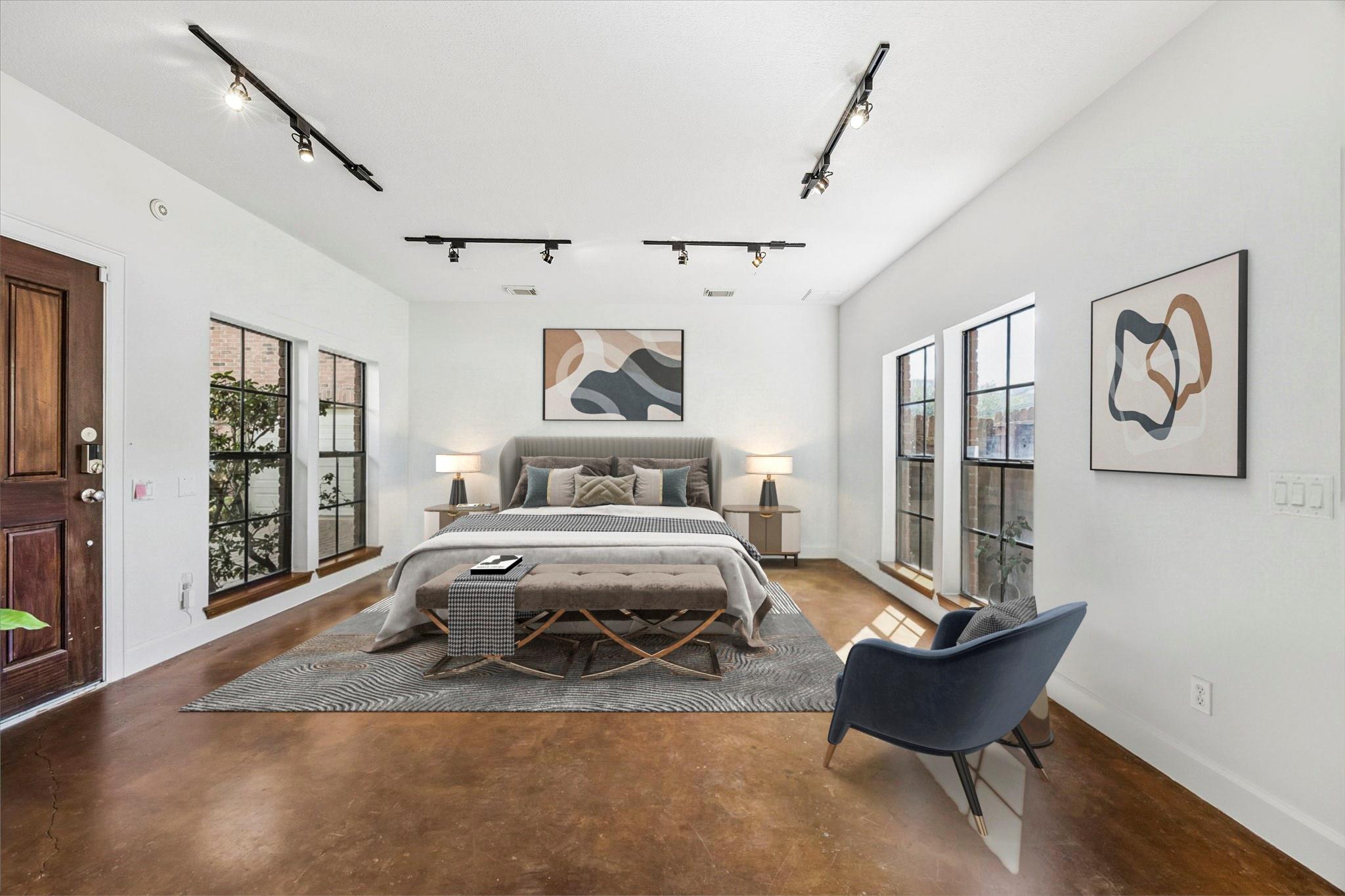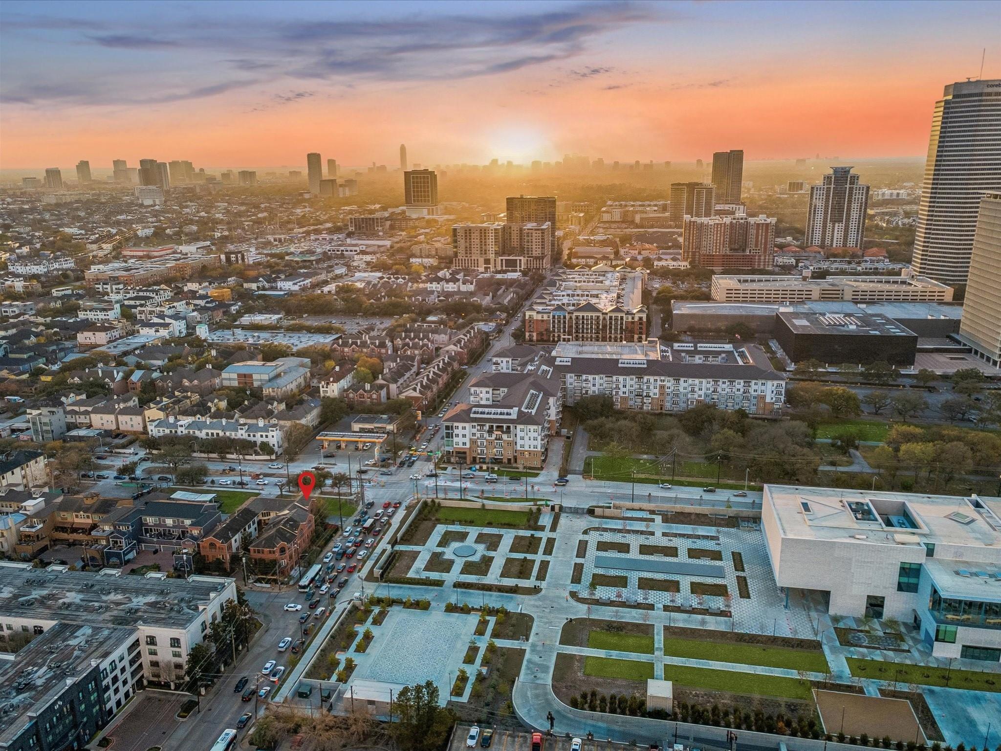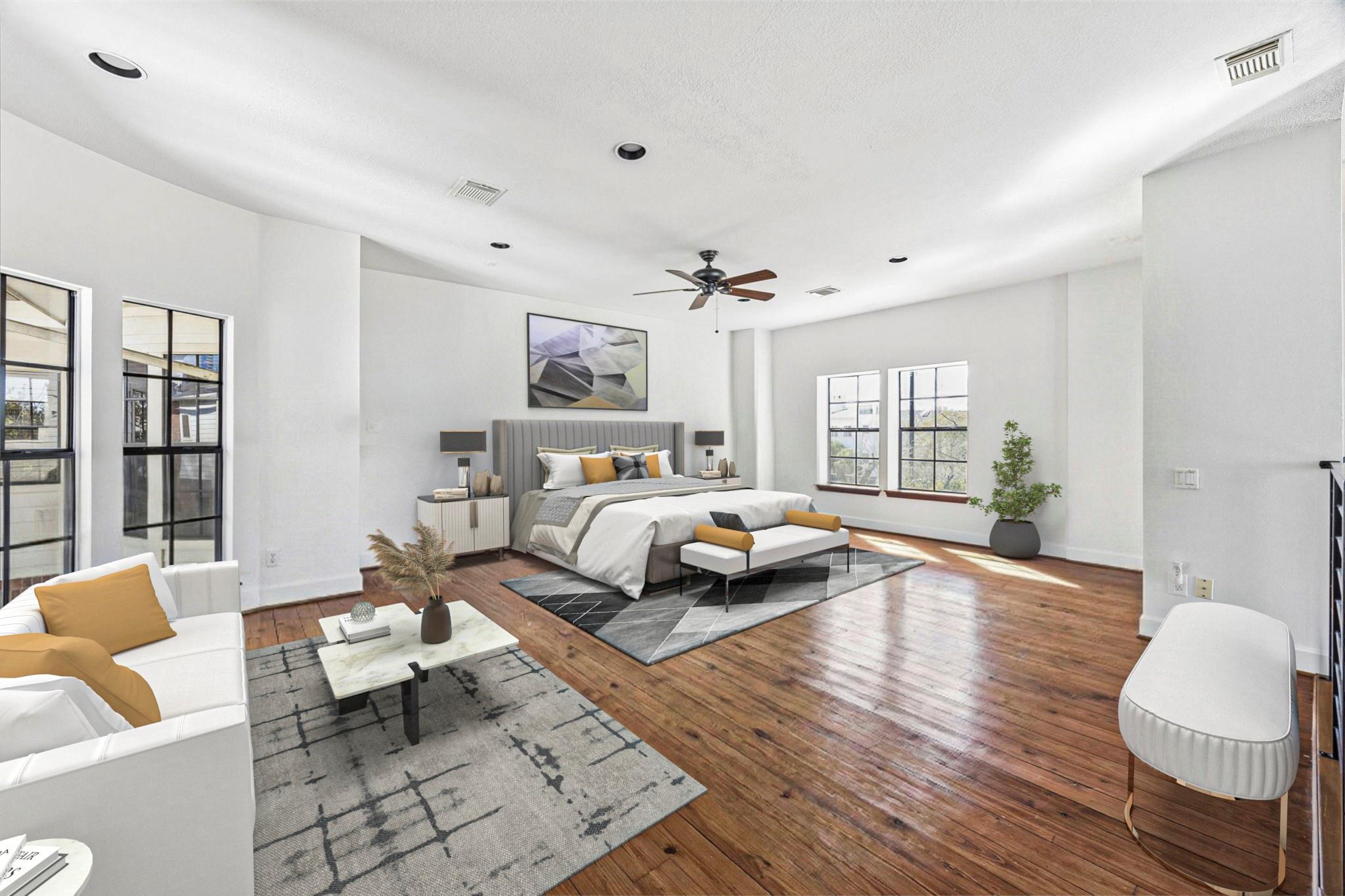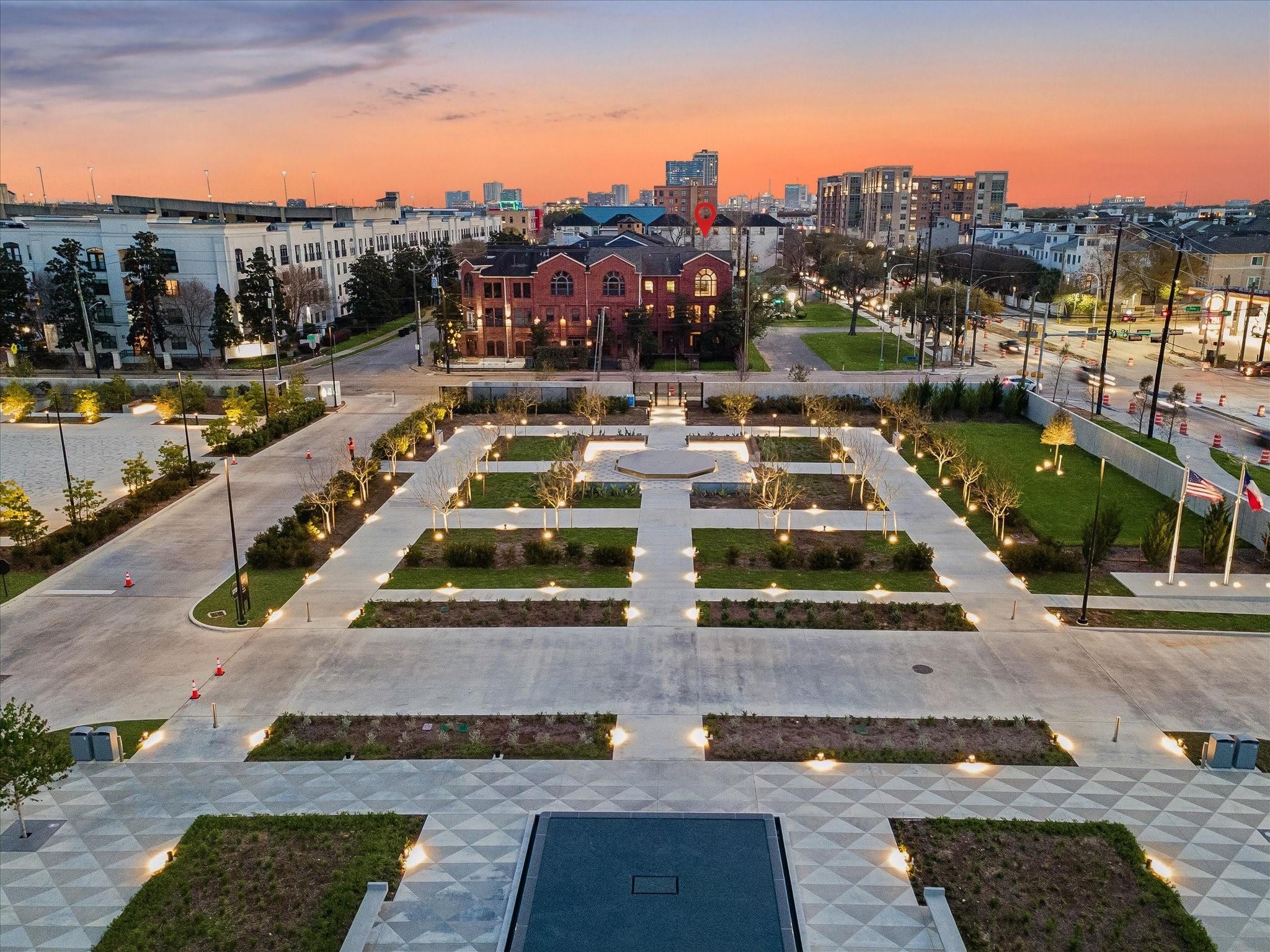 Prime city living just minutes from Downtown Houston and Montrose’s renowned restaurants and shops. This 2-bedroom, 2-bath home offers a thoughtfully designed three-story layout featuring reclaimed wood floors from New Orleans, fresh paint, and central vacuum. The first floor includes a private guest suite with a full bath. The open-concept second floor is ideal for entertaining, with a kitchen offering ample cabinetry and island seating, formal dining, and two spacious living areas filled with natural light, along with a balcony. The third-floor primary suite overlooks the living space and captures striking city views at night. With a two-car garage and fenced front yard, this home offers both comfort and convenience, all within close proximity to Buffalo Bayou Park—bringing together city living, architectural appeal, and access to some of Houston’s most beloved outdoor spaces.