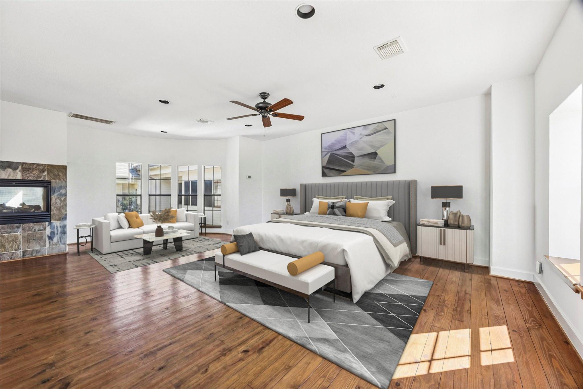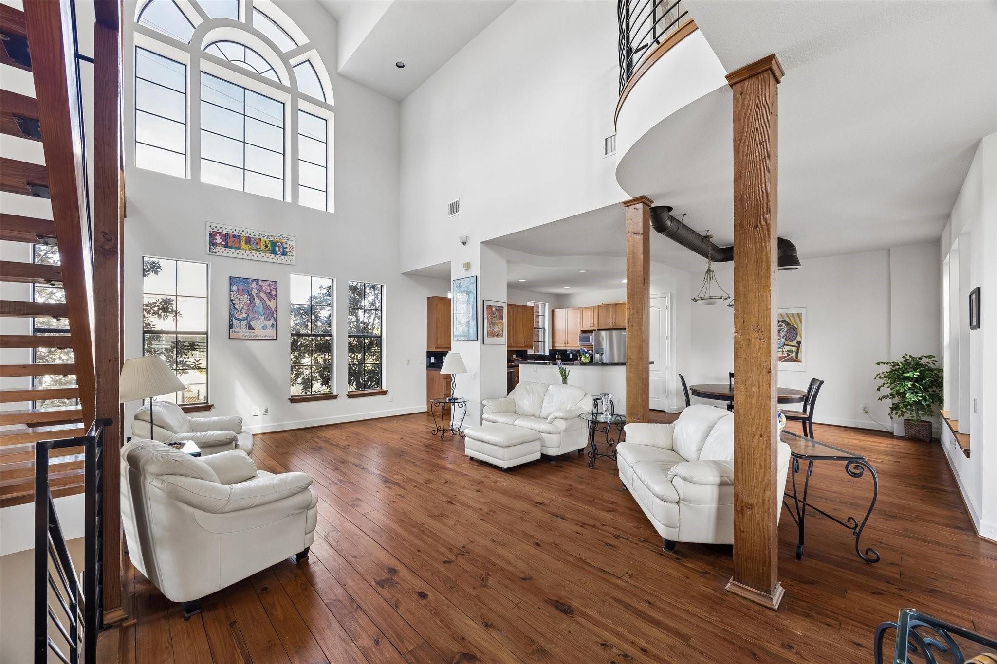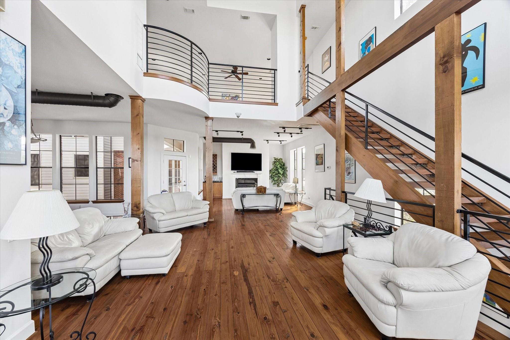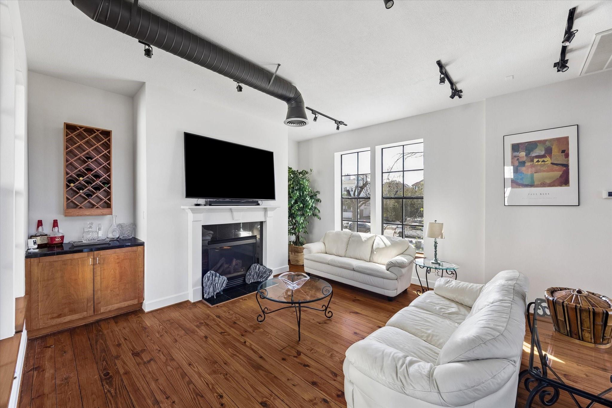 Prime city living just minutes from Downtown Houston and Montrose’s renowned restaurants and shops. This 2-bedroom, 2-bath home offers a thoughtfully designed three-story layout featuring reclaimed wood floors from New Orleans, fresh paint, and central vacuum. The first floor includes a private guest suite with a full bath. The open-concept second floor is ideal for entertaining, with a kitchen offering ample cabinetry and island seating, formal dining, and two spacious living areas filled with natural light, along with a balcony. The third-floor primary suite overlooks the living space and captures striking city views at night. With a two-car garage and fenced front yard, this home offers both comfort and convenience, all within close proximity to Buffalo Bayou Park—bringing together city living, architectural appeal, and access to some of Houston’s most beloved outdoor spaces.