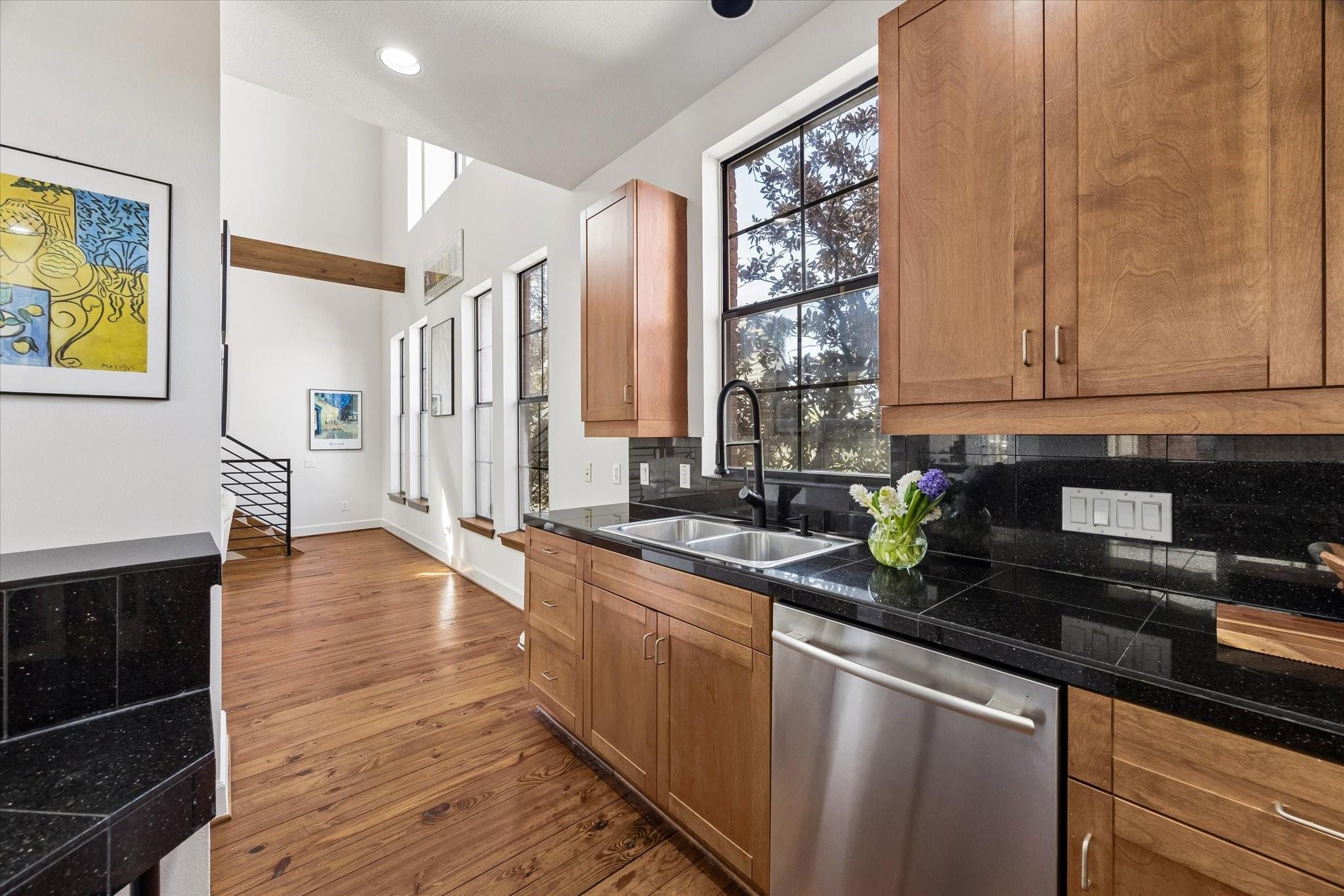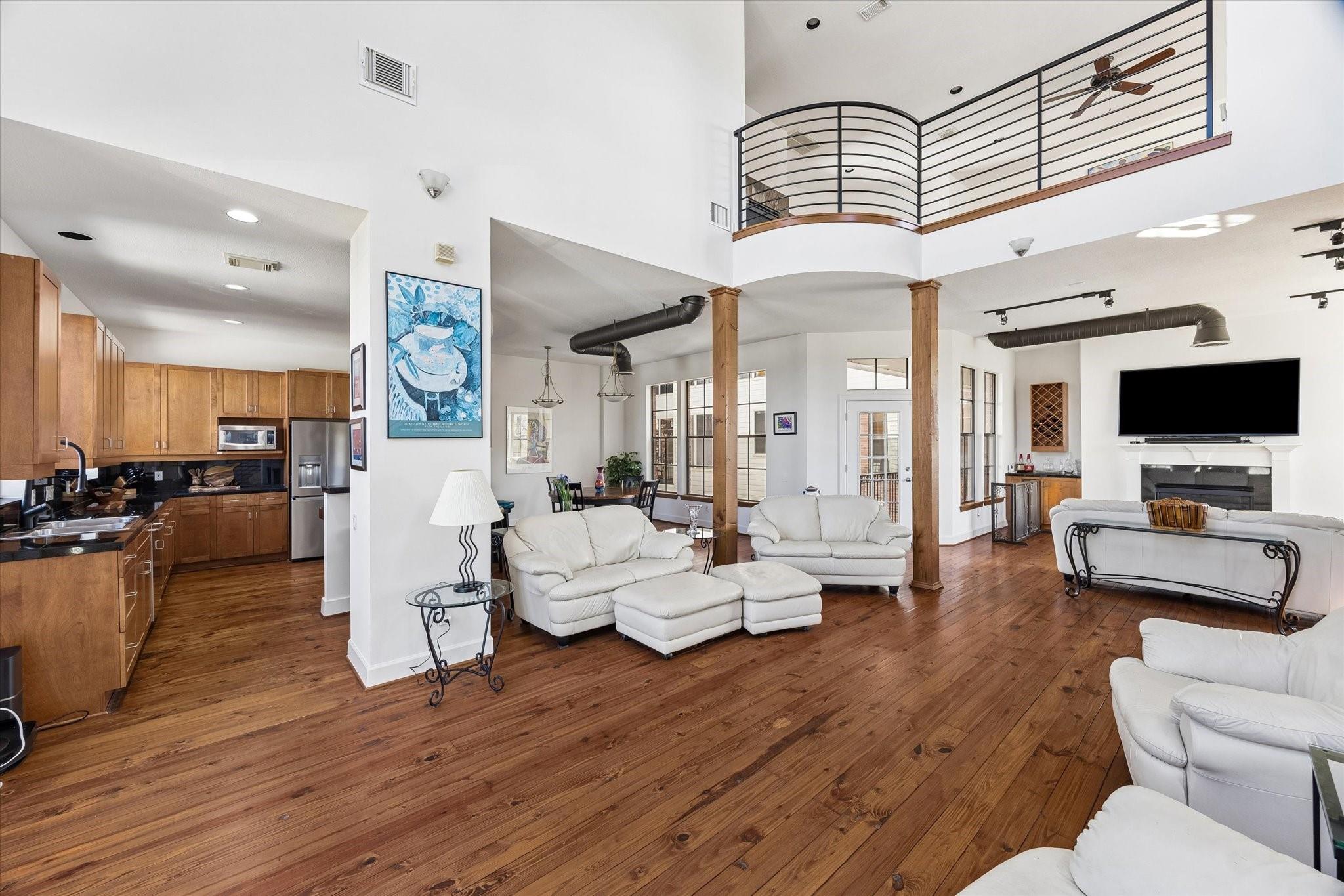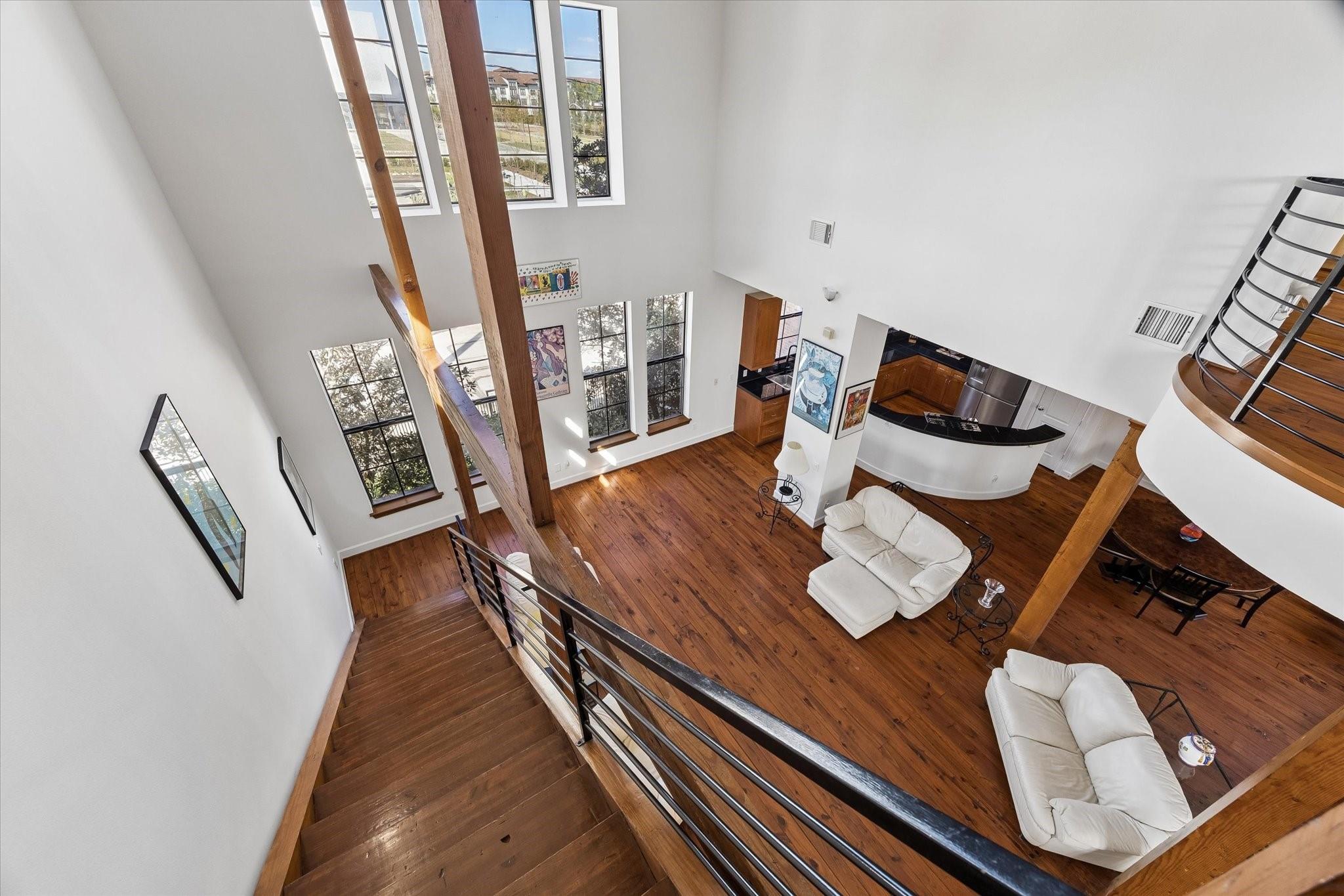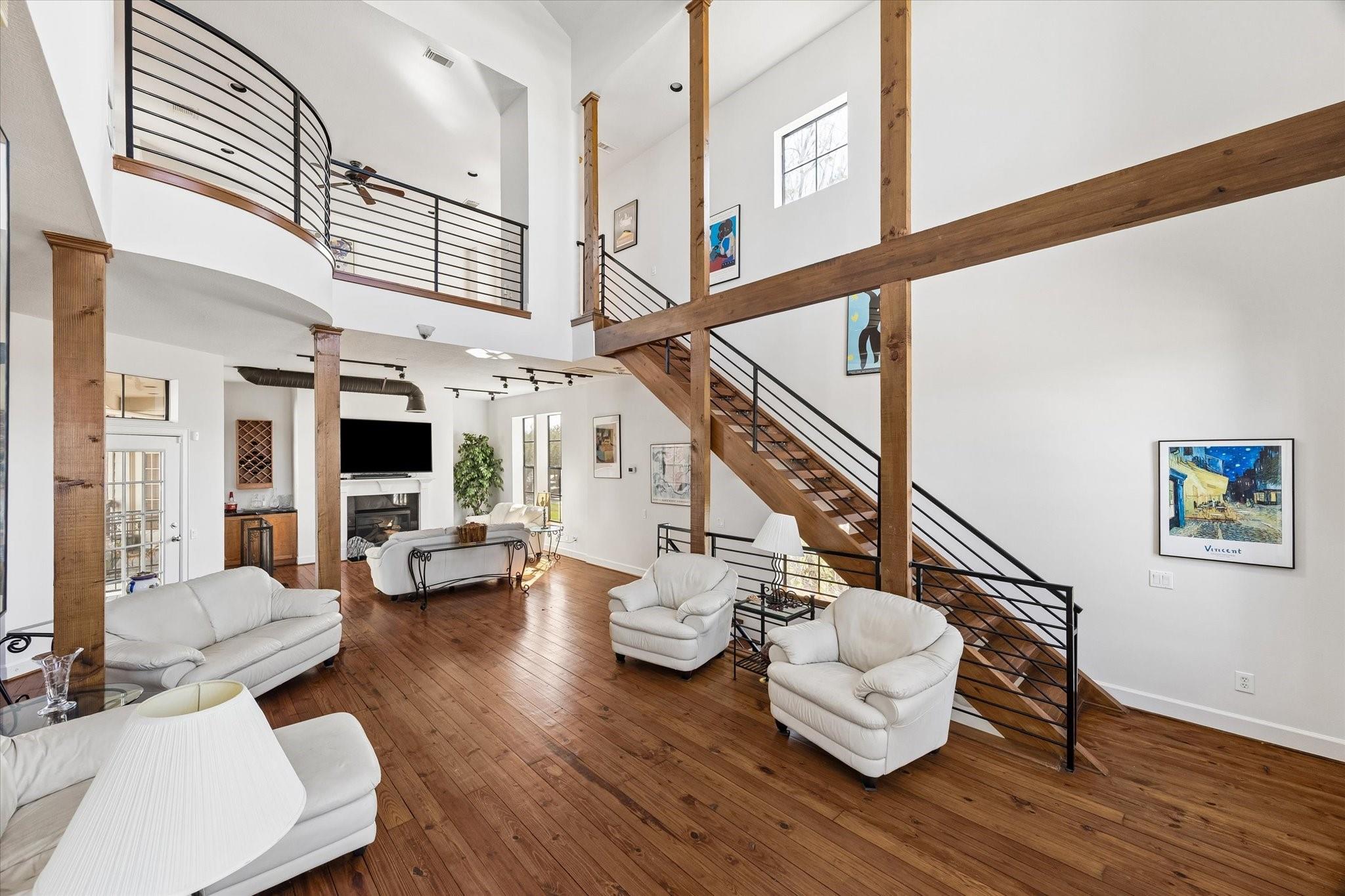 Prime city living just minutes from Downtown Houston and Montrose’s renowned restaurants and shops. This 2-bedroom, 2-bath home offers a thoughtfully designed three-story layout featuring reclaimed wood floors from New Orleans, fresh paint, and central vacuum. The first floor includes a private guest suite with a full bath. The open-concept second floor is ideal for entertaining, with a kitchen offering ample cabinetry and island seating, formal dining, and two spacious living areas filled with natural light, along with a balcony. The third-floor primary suite overlooks the living space and captures striking city views at night. With a two-car garage and fenced front yard, this home offers both comfort and convenience, all within close proximity to Buffalo Bayou Park—bringing together city living, architectural appeal, and access to some of Houston’s most beloved outdoor spaces.