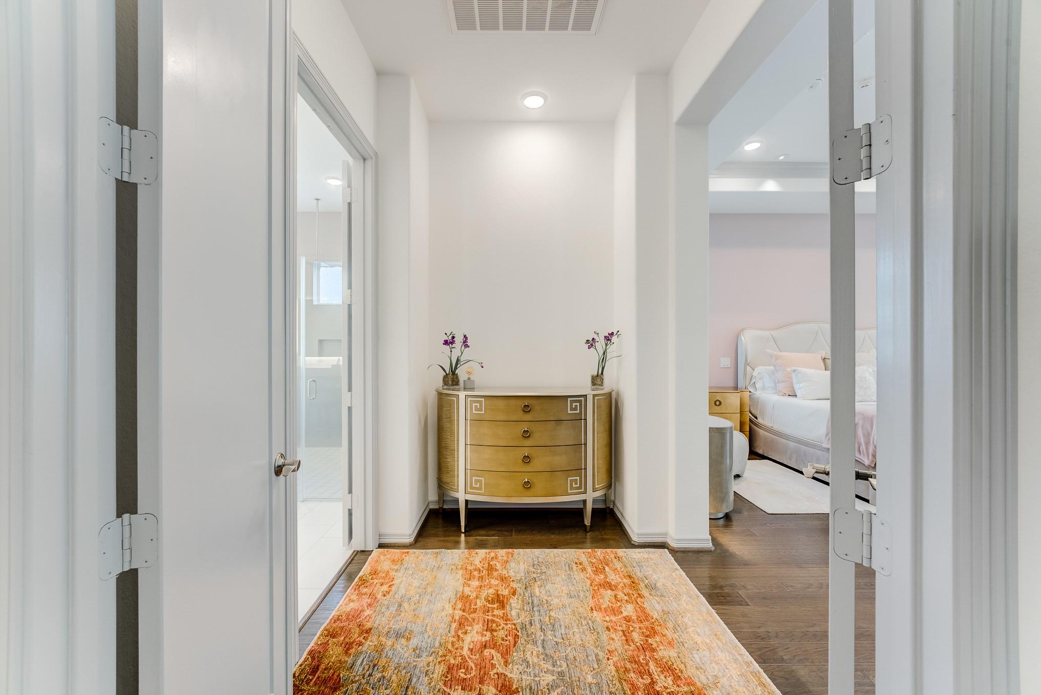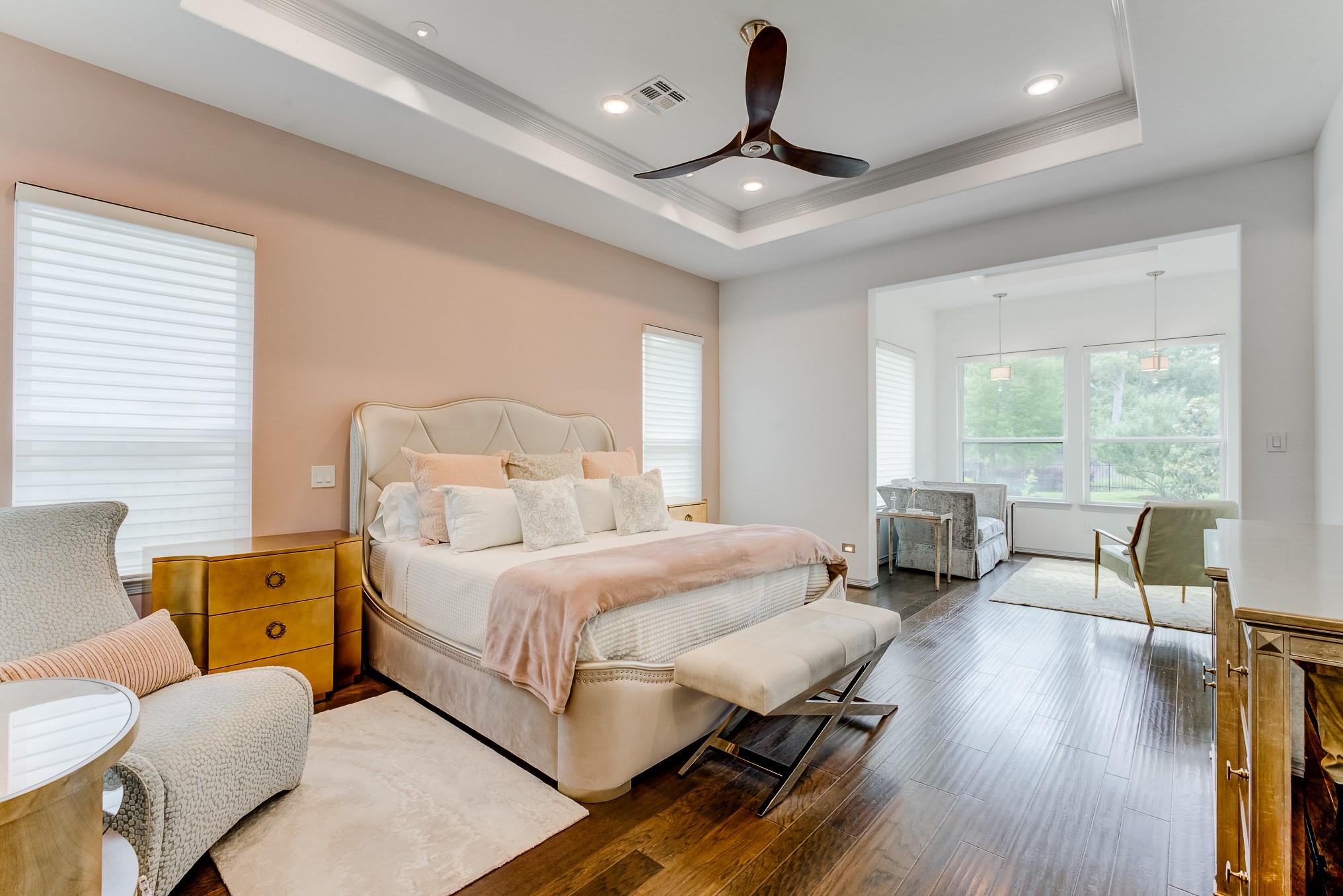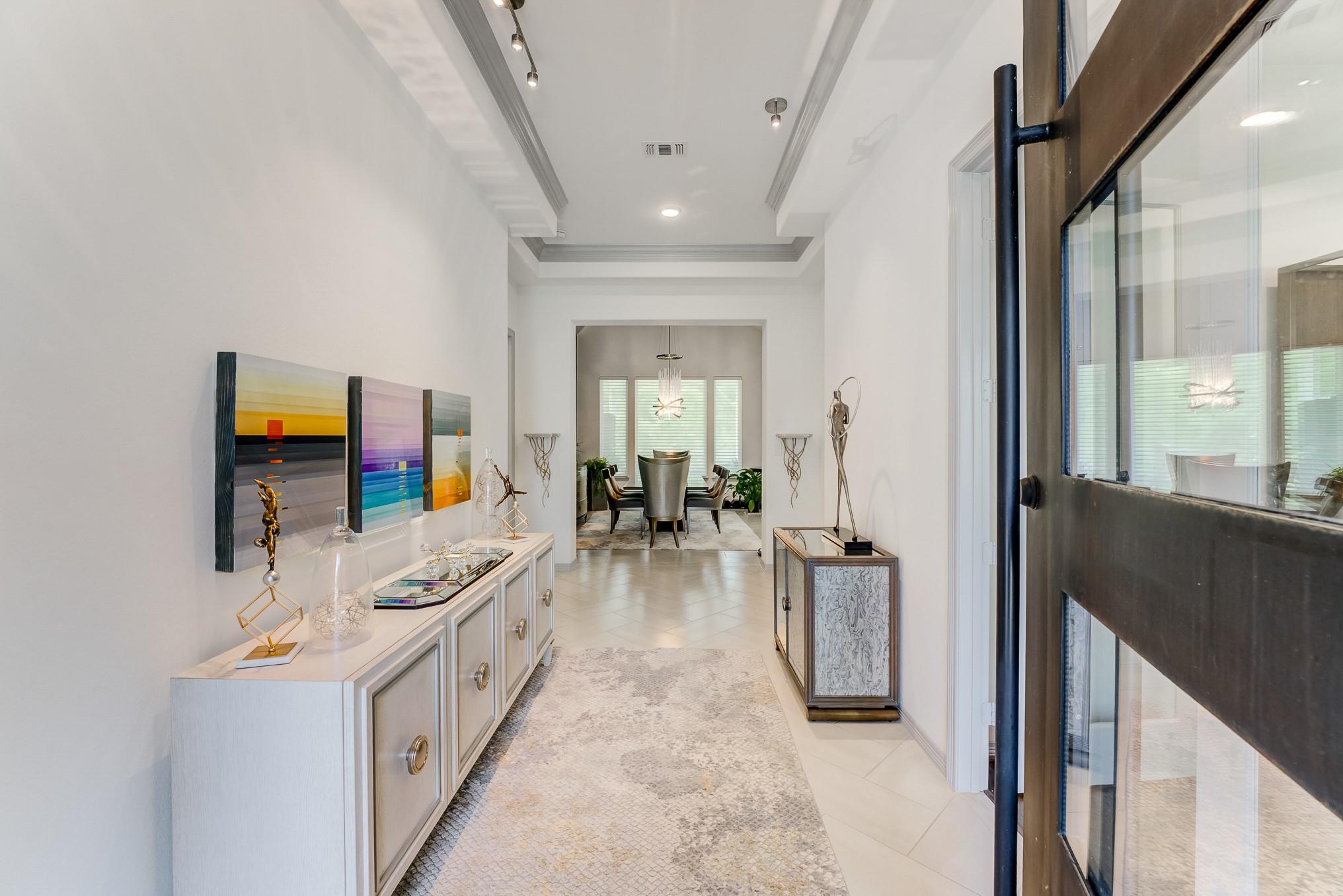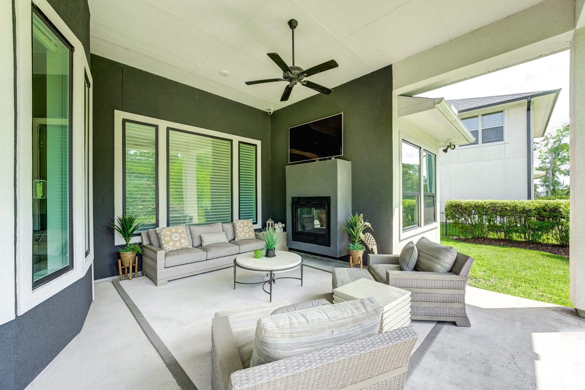Beyond the gates of prestigious Royal Lakes Manor Section 2 lies a rare gem—an exquisite 4-bed, 4.5-bath custom home with no back neighbors. Soaring ceilings, modern lighting, and walls of windows showcase wood & tile floors. The open-concept great room with fireplace flows into formal and informal spaces perfect for entertaining or quiet moments. Enjoy a private study, large game room, media room, Hunter Douglas automatic blinds, and top-of-the-line stereo system. The chef’s kitchen boasts a show-stopping waterfall island, quartz countertops, Thermador appliances, wine cooler, pantry, and designer finishes. The serene primary suite offers a sitting area, fireplace, and boutique closet with custom built-ins. The spa-like bath features dual vanities, a jetted tub, and expansive walk-in shower with dual showerheads. Step outside to a lush backyard oasis with covered patio, fireplace, and greenspace views. This is more than a home—it’s your private sanctuary of elegance and comfor