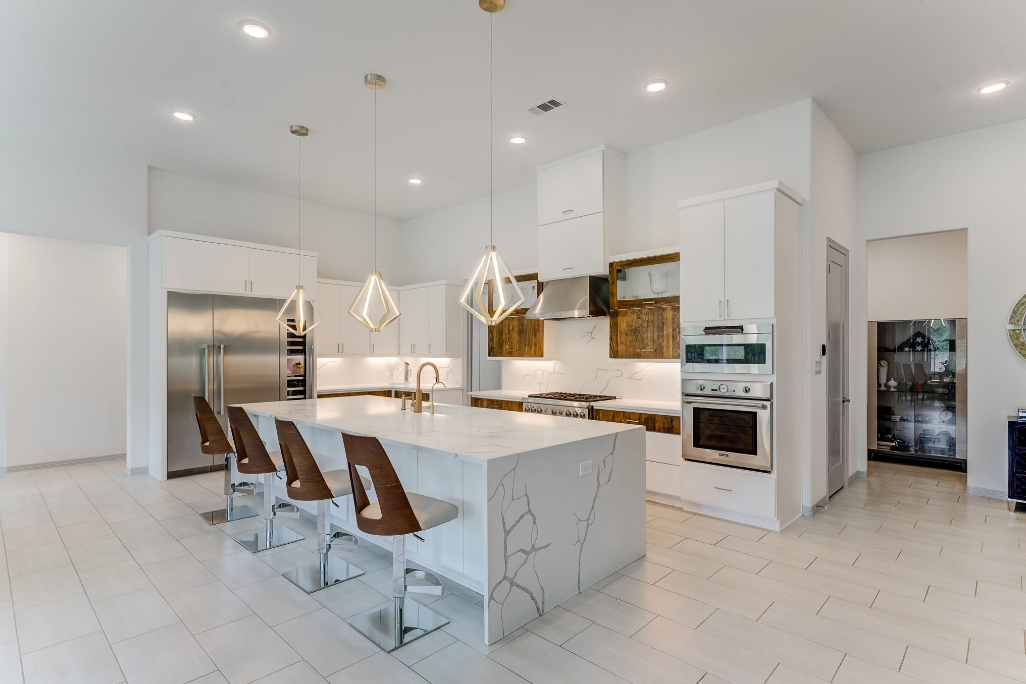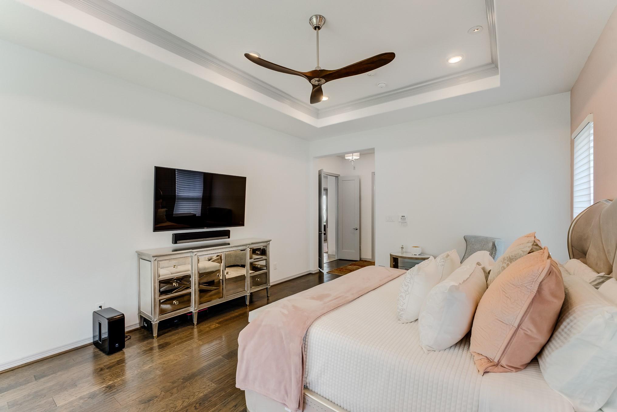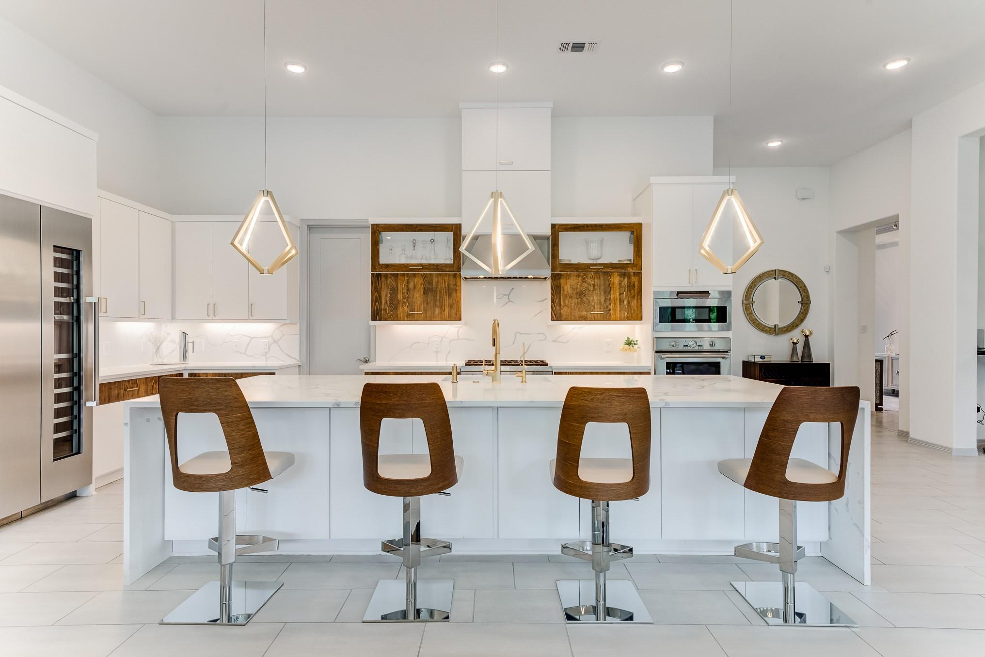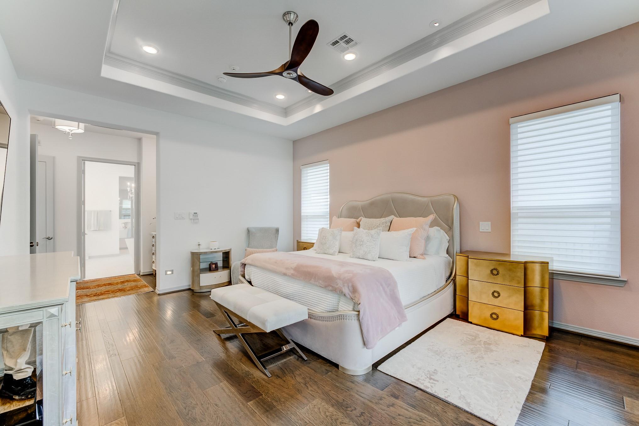 Beyond the gates of prestigious Royal Lakes Manor Section 2 lies a rare gem—an exquisite 4-bed, 4.5-bath custom home with no back neighbors. Soaring ceilings, modern lighting, and walls of windows showcase wood & tile floors. The open-concept great room with fireplace flows into formal and informal spaces perfect for entertaining or quiet moments. Enjoy a private study, large game room, media room, Hunter Douglas automatic blinds, and top-of-the-line stereo system. The chef’s kitchen boasts a show-stopping waterfall island, quartz countertops, Thermador appliances, wine cooler, pantry, and designer finishes. The serene primary suite offers a sitting area, fireplace, and boutique closet with custom built-ins. The spa-like bath features dual vanities, a jetted tub, and expansive walk-in shower with dual showerheads. Step outside to a lush backyard oasis with covered patio, fireplace, and greenspace views. This is more than a home—it’s your private sanctuary of elegance and comfor