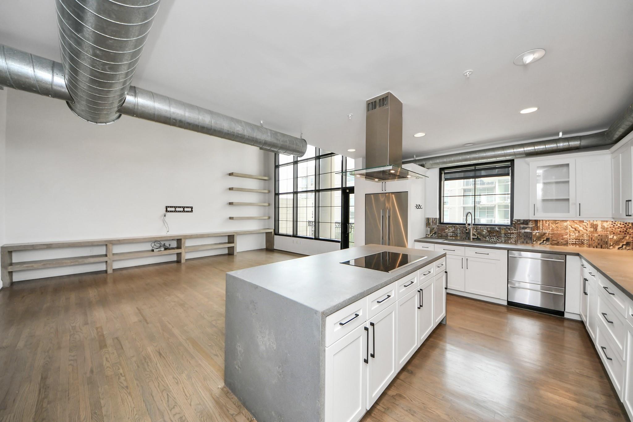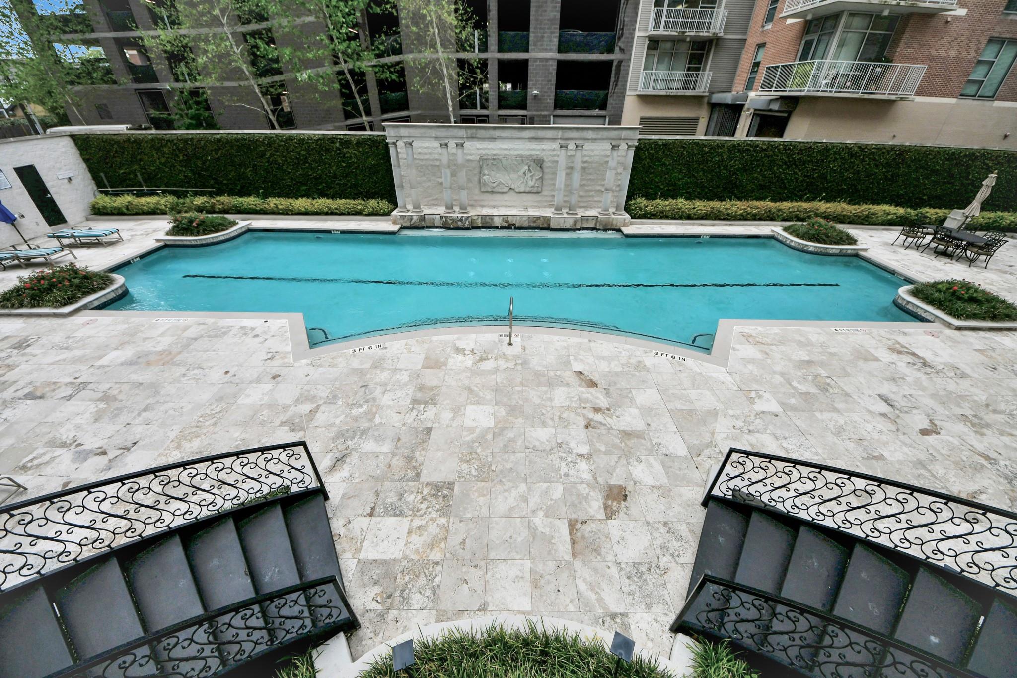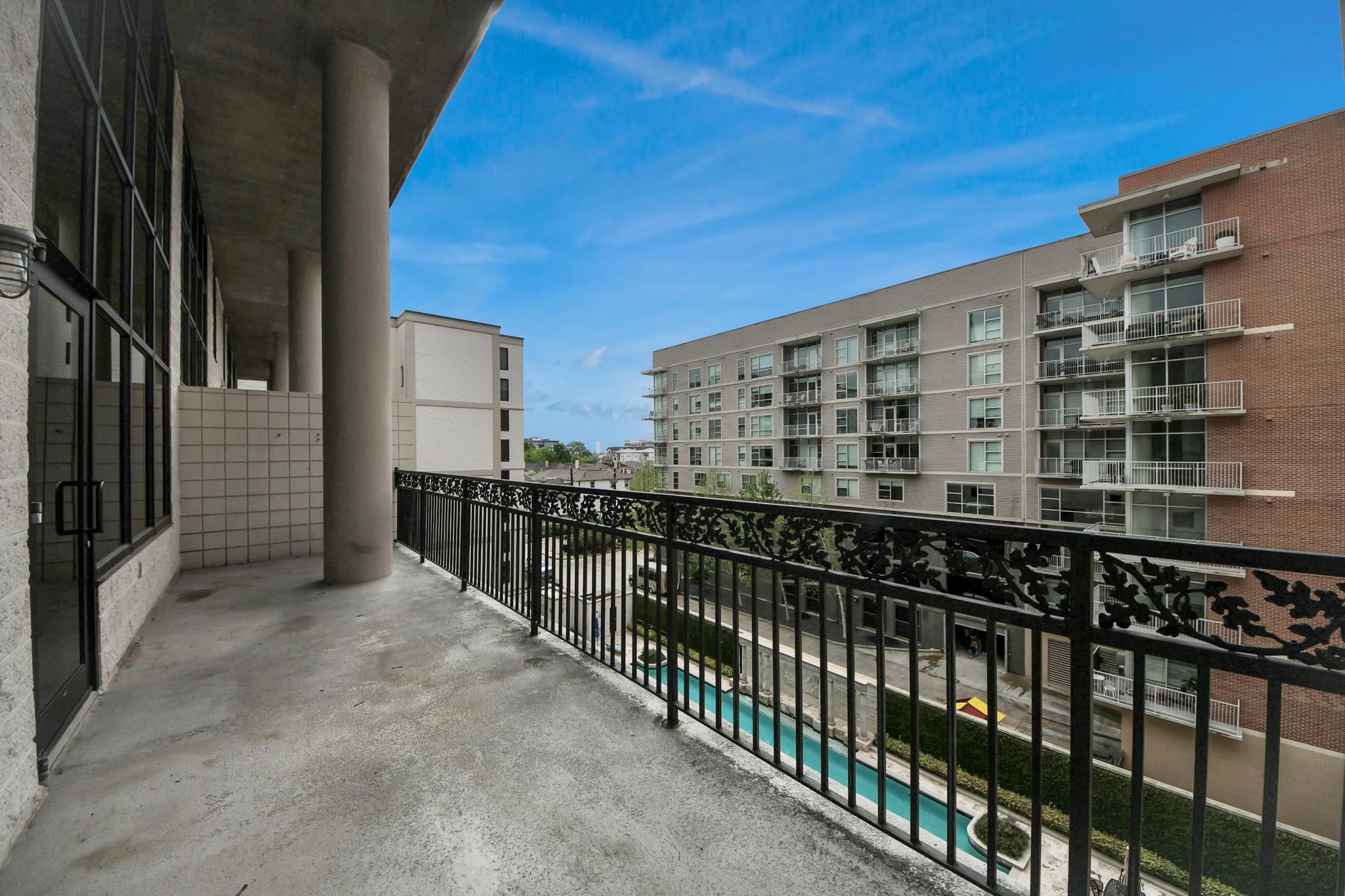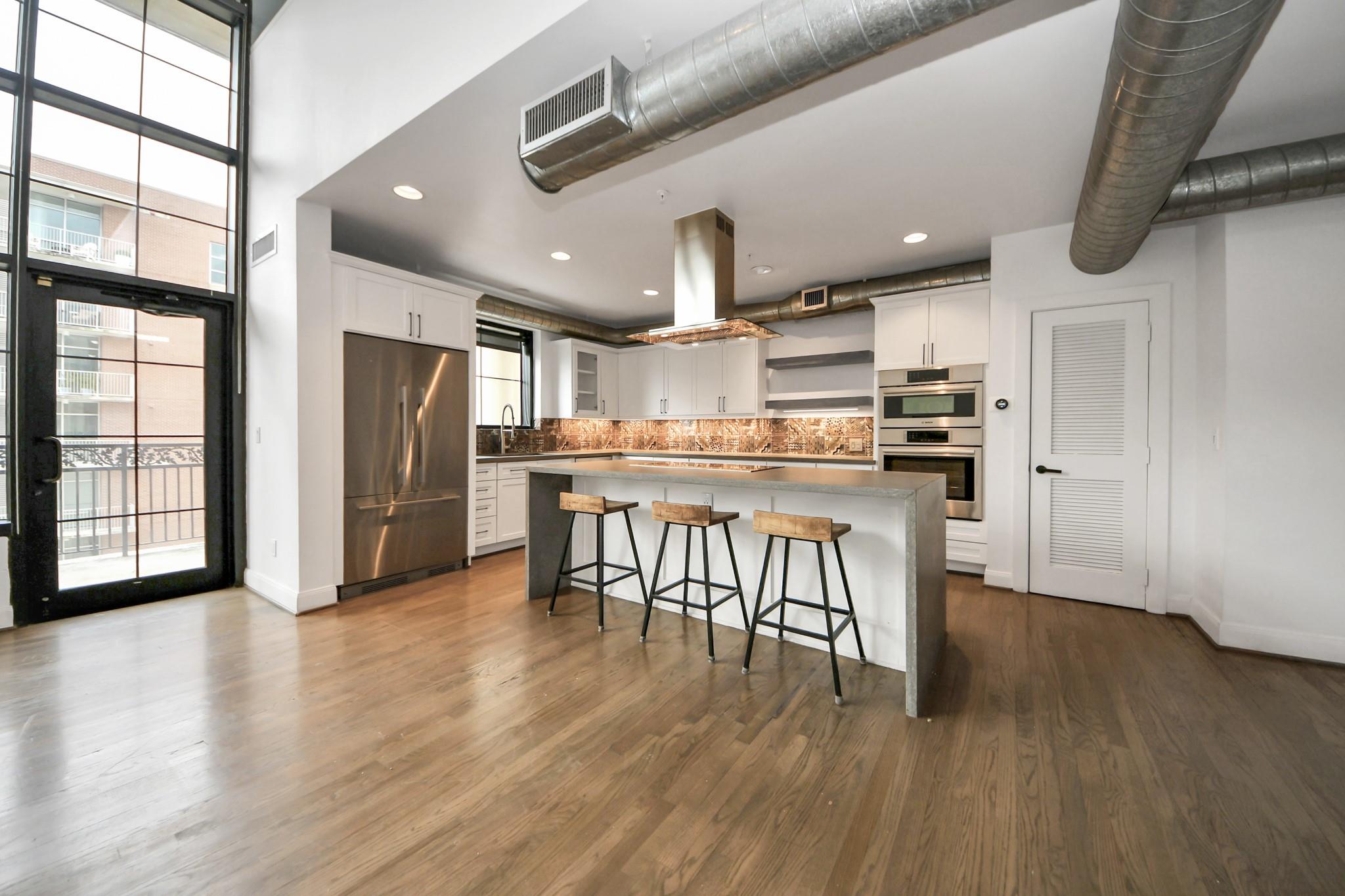 This beautifully appointed residence at Renoir Lofts offers the perfect blend of style, comfort, and convenience. With a huge balcony overlooking a serene resort-style pool, you have an ideal setting for morning coffee or unwinding at the end of the day. The thoughtfully designed interior features an open-concept layout filled with natural light from the massive windows. The kitchen stands out with striking waterfall-edge countertops and a premium appliance package including Bosch and Fisher & Paykel, seamlessly combining modern design with everyday functionality. The spacious living and dining areas flow effortlessly, making the home equally suited for entertaining or relaxed daily living. The building offers secure access and low-maintenance living in an unbeatable location, just steps from River Oaks Shopping Center and minutes from The Heights, Montrose, and Downtown Houston. With easy access to major interstates, this is the very best of Houston right at your doorstep.