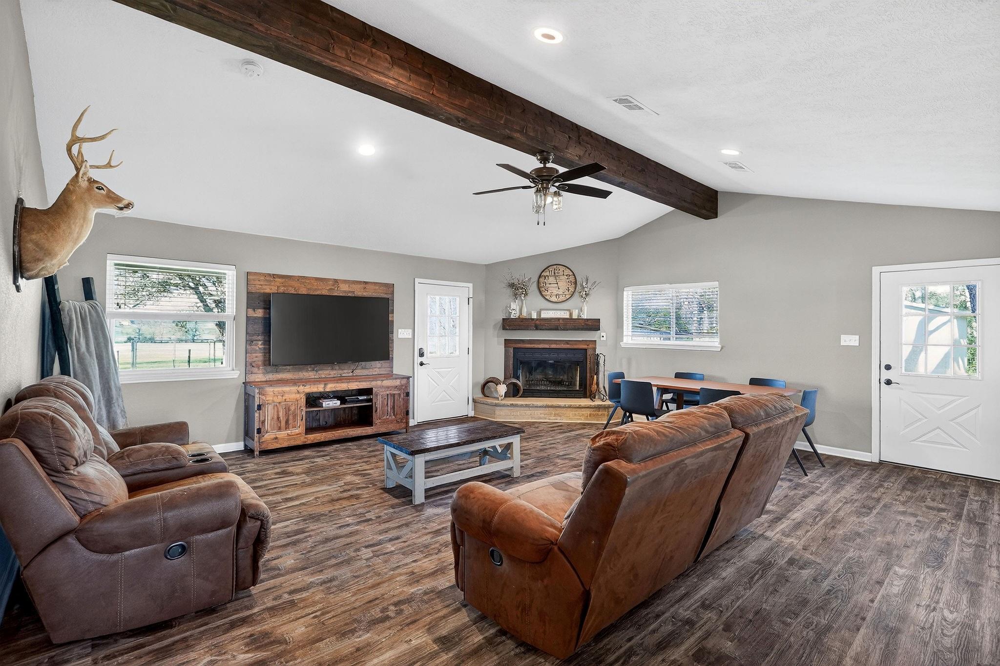 Exceptional opportunity to own two neighboring country properties offered together as a unique package deal for multi-generational living or rental income compound on 10-ACRES. 10066 Arnold Lane features a 3 bedroom, 3.5 bath home with 2,969 square feet, a study, wet bar, and a screened-in porch complete with fireplace and grill. Outdoors, enjoy a private party dock with lighting, sound, misters, bar seating, and grill overlooking a half-acre pond. A 60x50 shop provides space for vehicles, equipment, and projects. This home and shop roofs replaced in 2025. 10054 Arnold Lane offers a beautifully updated 3 bedroom, 3 bath home with 2,203 square feet, on 2 acres with 1 acre being completely fenced with electric gate for easy entry and security. Fully remodeled with a 300 SF primary bath addition (2018), it also includes a back porch, shop with carport, new roof and HVAC (2025), and new water heater (2026). A rare chance to secure space, versatility, and lifestyle all in one.
