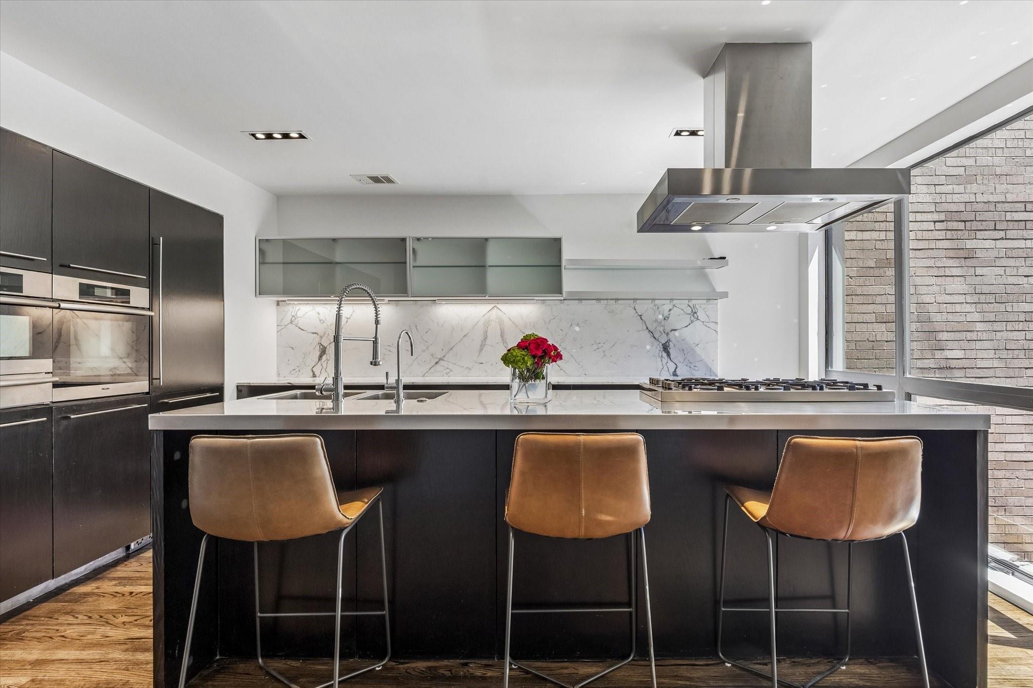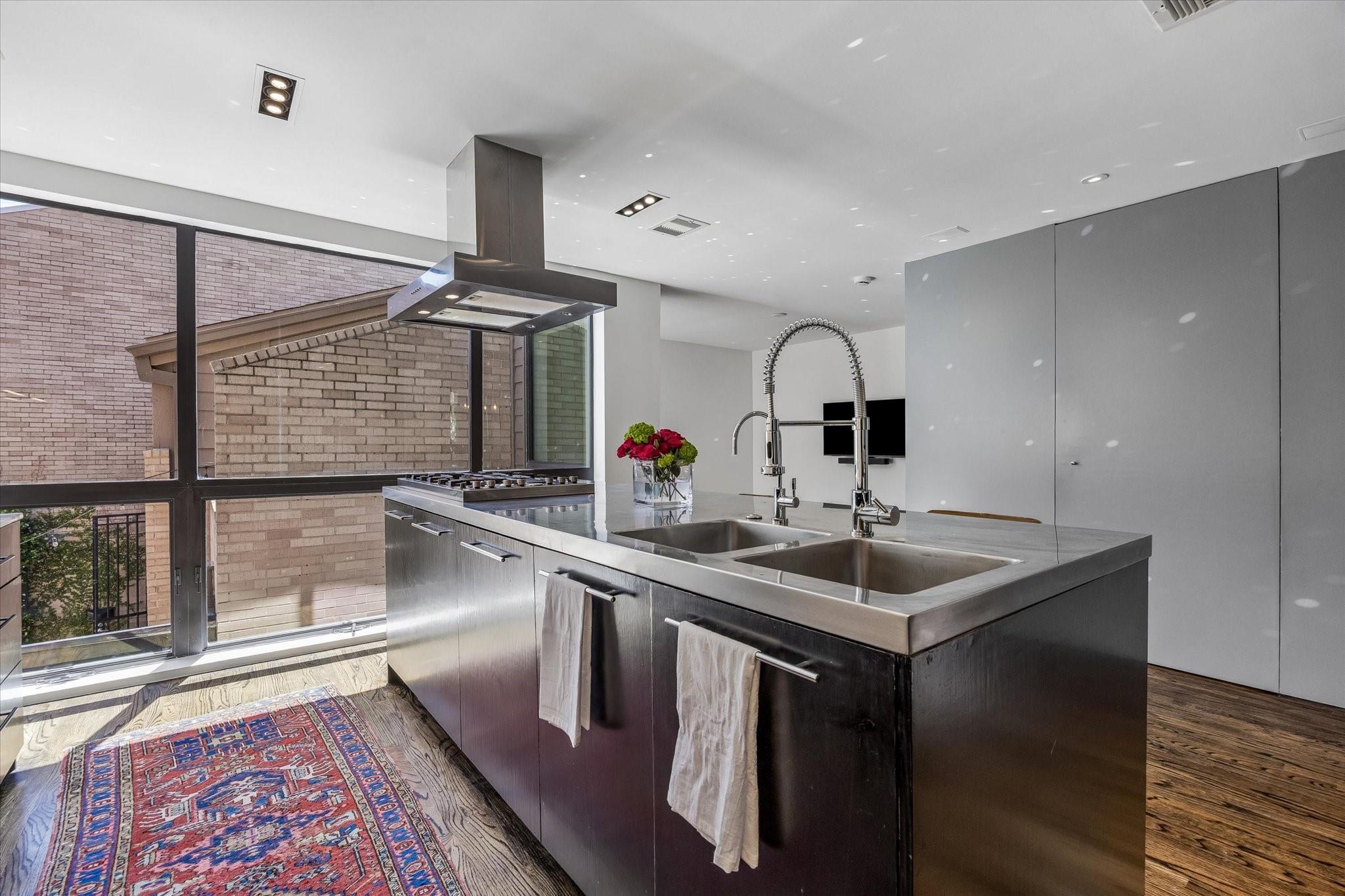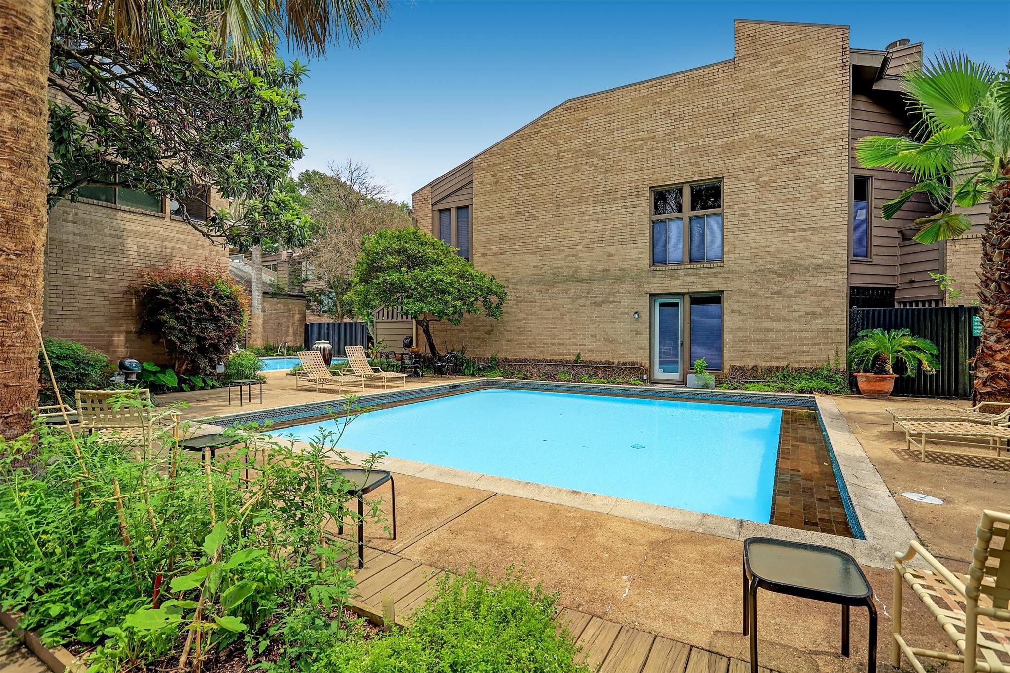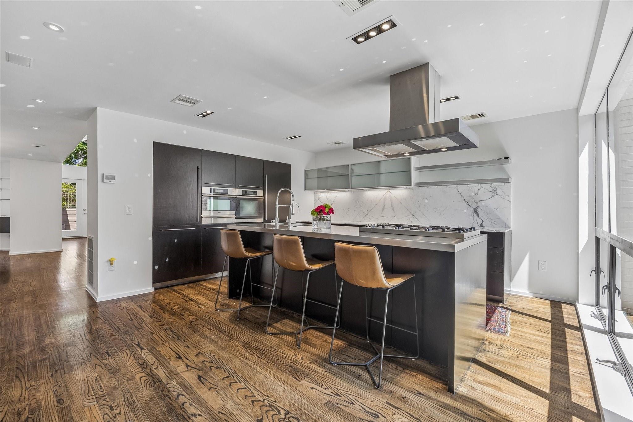 Amazing modern Museum District townhome with sophisticated finishes and thoughtful updates including recent roof, water heater, and water filtration system (per seller). The dramatic living room features floor-to-ceiling walls, a soaring 17-ft vaulted ceiling, Montigo linear gas fireplace, and walnut-stained hardwoods. The chef’s kitchen offers custom Wenge oak cabinetry, marble surfaces, stainless island with bar seating and adjacent breakfast room, and premium appliances including Bertazzoni, Zephyr, and Sub-Zero. Expansive windows provide abundant natural light throughout. Enjoy balconies and patios on every level, including a rooftop retreat. Spa-like primary bath and Japanese soaking tub. Enjoy all the area has to offer –museums, Hermann Park, the Texas Medical Center, Rice and St. Thomas Universities are all just steps away. With two area pools and a highly walkable location, this exceptional home is not to be missed.