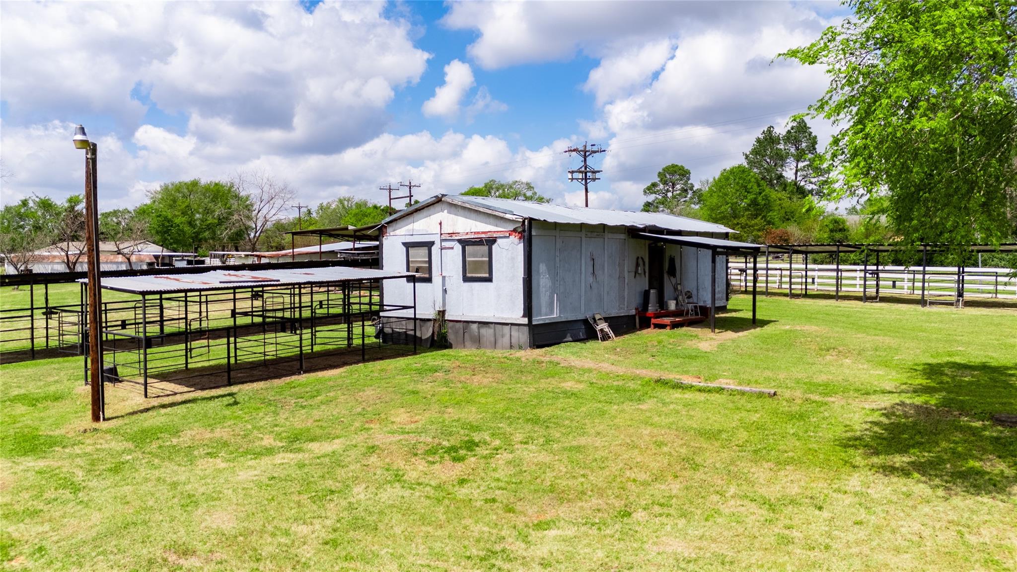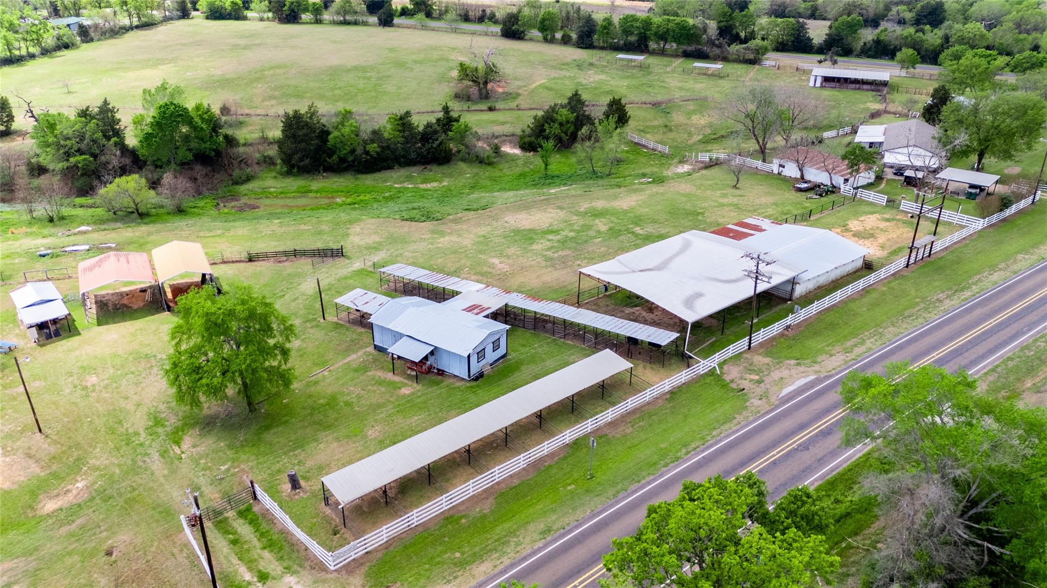 This exceptional 16.86-acre property is fully equipped to support a thriving equestrian operation, with ample room for future expansion. For over 40 years, the current owner has hosted annual summer camps, The mobile home offers comfortable living with 3 bedrooms and 2 bathrooms. The home has been well-maintained and features an updated kitchen, new flooring, and an expanded living room. The property includes multiple barns and well-organized facilities. The stud barn (20x30) features four pens, while the mare barn (36x54) includes a concrete alleyway and connects to four spacious 60x30 mare pens. A larger barn (45x42) offers seven stalls and a dedicated feed room. There are also 20 covered stalls and several paddocks. Equestrian amenities continue with a 45x54 arena, a 100x200 lighted outdoor arena, and a 21x36 tack room. A small viewing stand provides a great vantage point for events. An equipment shed offers additional storage and can be used for hay.