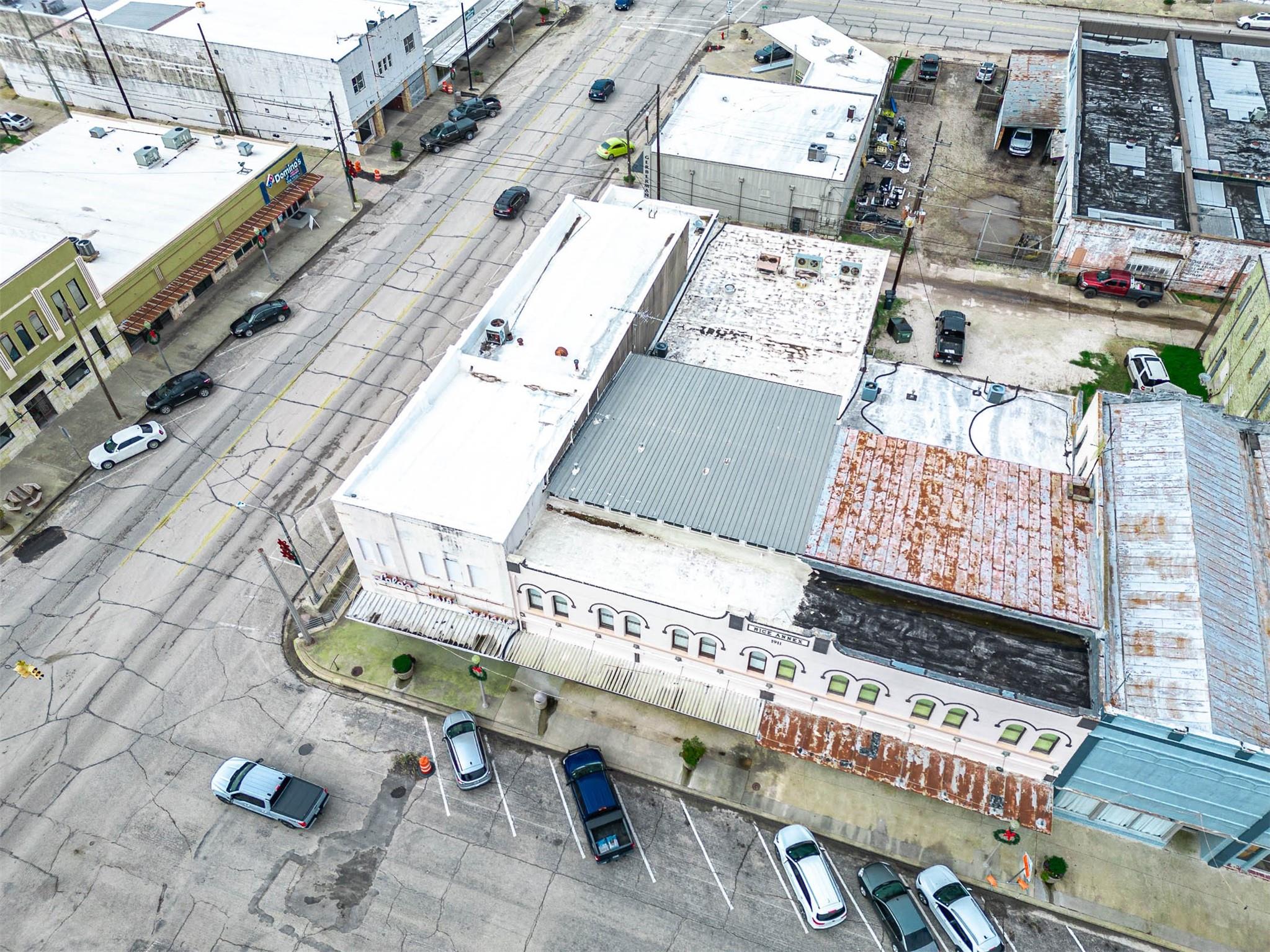 This is your chance to own a piece of History! This history building of 7124 is located right on the main street, downtown of El Campo. About (3/4 or 2500 sqft) 1st floor used to be a hair salon, the 1/4 used to be a storage and could be convert into a rentable space. Upstair is about 4000 sqft and it has NOT been remodel since the 1940. The roof has been fixed in 2024. HEB, City Town Hall located within walking distance. 2nd floor could be converted into either office space, or multi family for short/midterm/long term stay in the area. this is a unique oportunity for investor to come in, rehab, and create tons and tons of equity and cash flow.