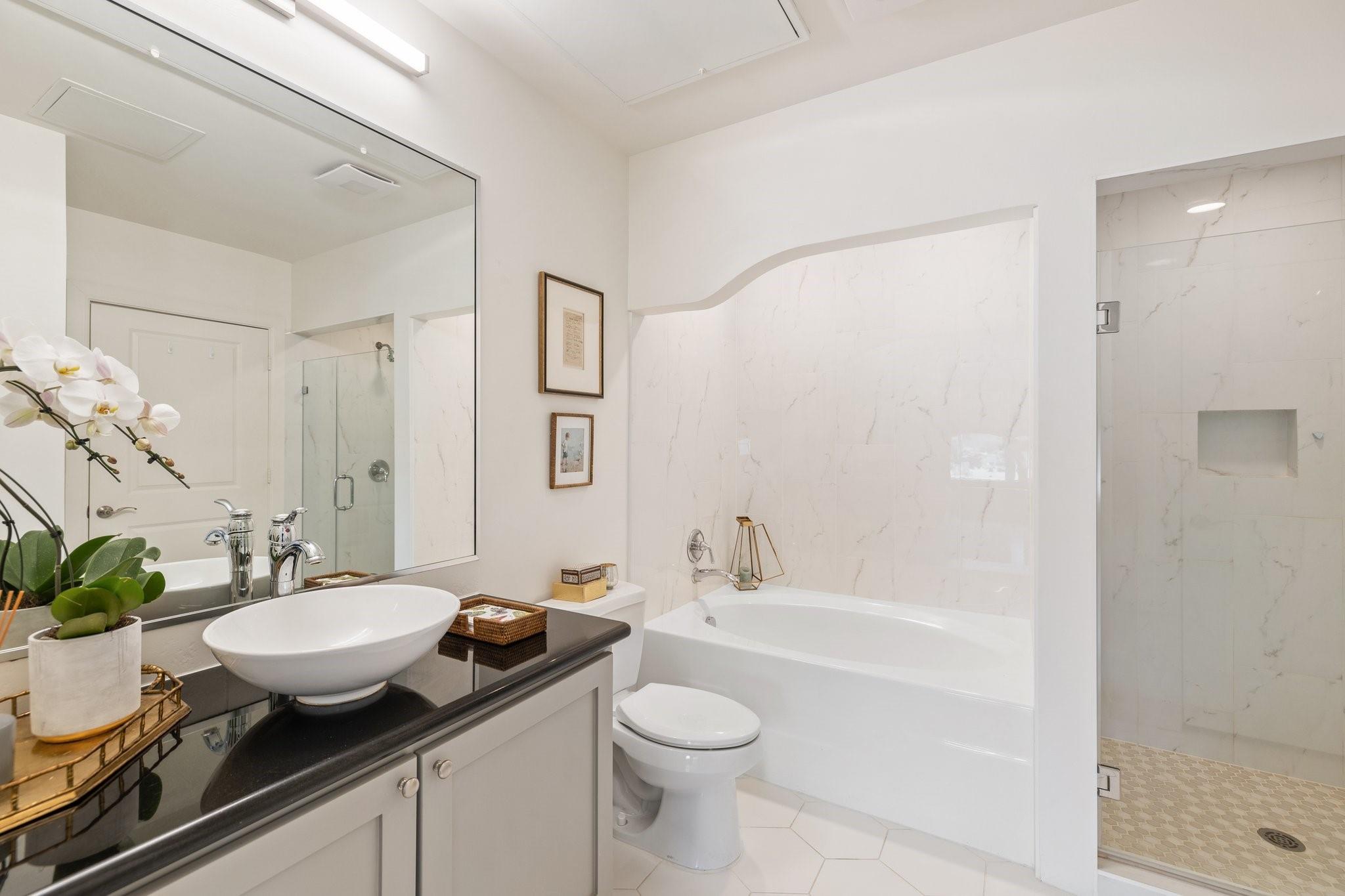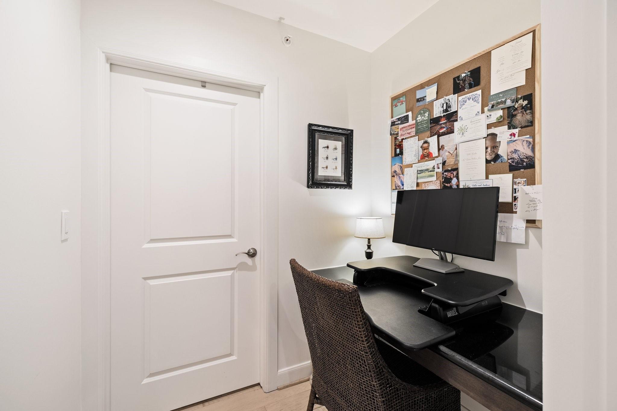 A rare find, this large 1 bedroom, 1 bathroom with study condo was newly renovated in 2021 with fresh paint, new solid oak hardwood floors, renovated primary bathroom, new light fixtures and new window treatments. As you step inside you are greeted by a light and bright open concept filled with an abundance of natural light. An oversized living and dining area with a wine fridge off of the kitchen are the perfect place to unwind. The versatile floorplan has a separate area adjacent to the living room that can be used as a study or extra sitting room with daybed. The primary bedroom is complete with a large walk-in closet and newly updated primary bathroom. The primary bathroom has been refreshed with new paint, new floors and tile. Off of the laundry room there is a separate, private study nook with a desk. The unit has plenty of storage. End your day on the private balcony. Superb location by many restaurants & shops! The unit has a dedicated parking spot. New Water Heater, July 2025