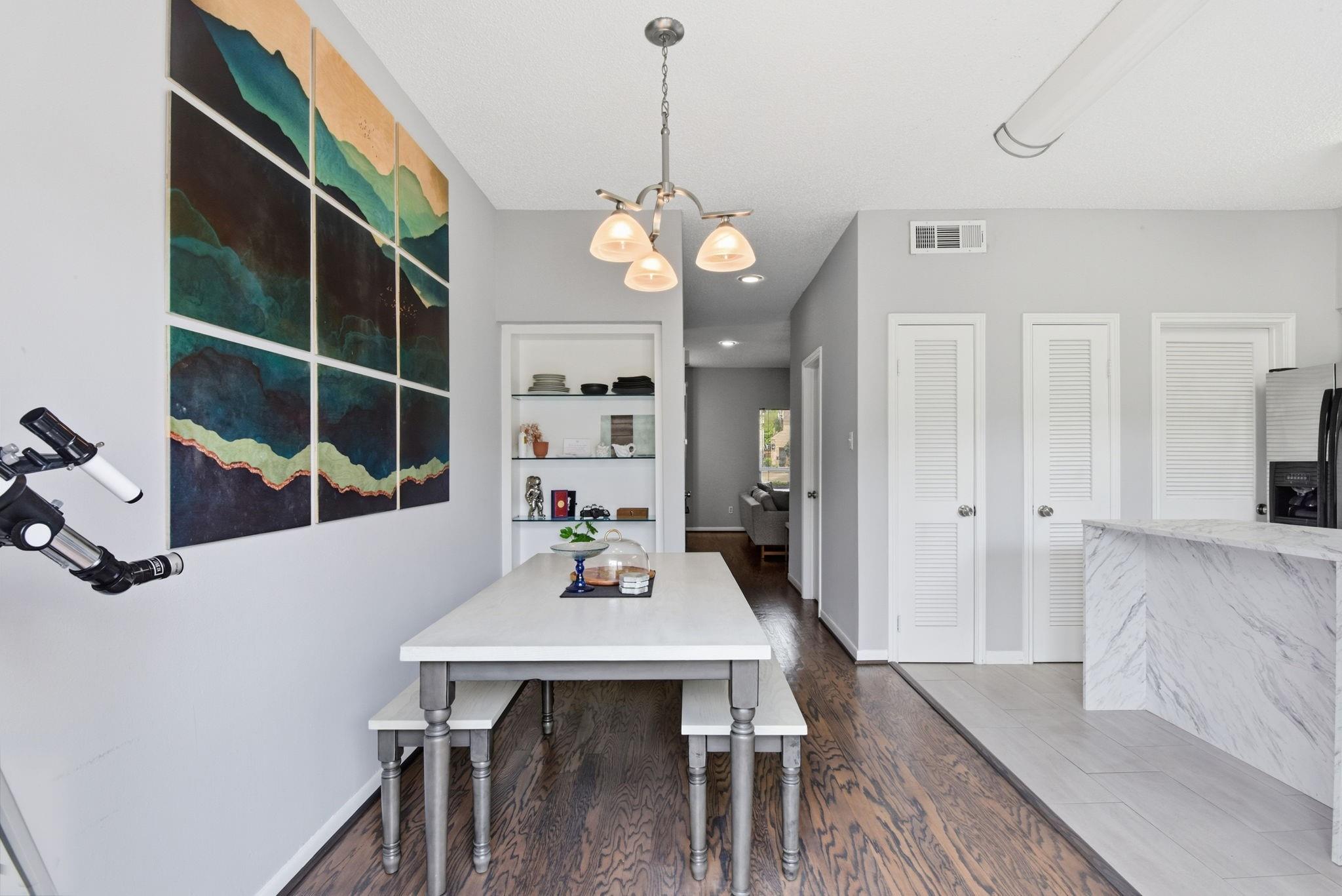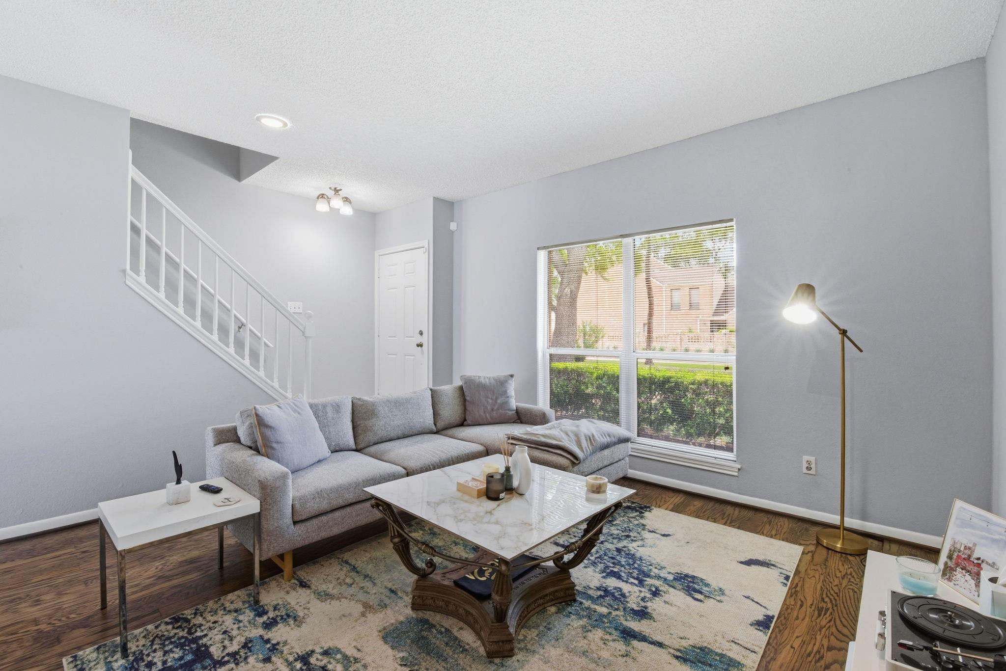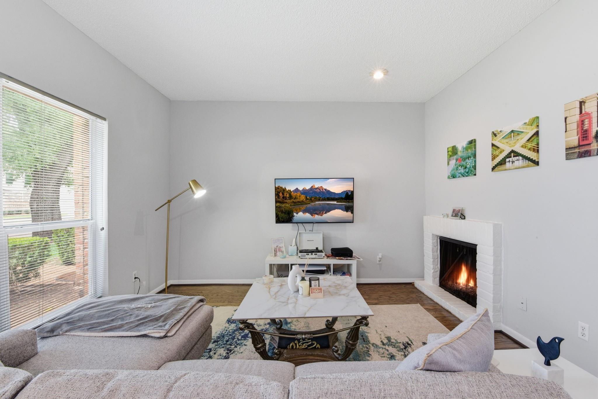 This light-filled 2-bedroom, 1.5-bath townhome in the heart of Tanglewood/Galleria offers an airy, open layout and effortless living. Abundant natural light flows throughout the living, dining, and kitchen areas, complemented by a cozy fireplace in the living room. The kitchen features a large farmhouse stainless steel sink with a chef-style spray faucet, modern finishes, and ample storage. Step outside to a private Zen-inspired patio with brick pavers, crushed stone, and natural elements—perfect for relaxing or entertaining. Located in a quiet, well-maintained community with convenient access to shopping, dining, and major highways including 610, Southwest Freeway, and Katy Freeway. Walking distance to nearby amenities and situated in the Woodway Place Townhome community, this home offers both comfort and convenience. A must see!