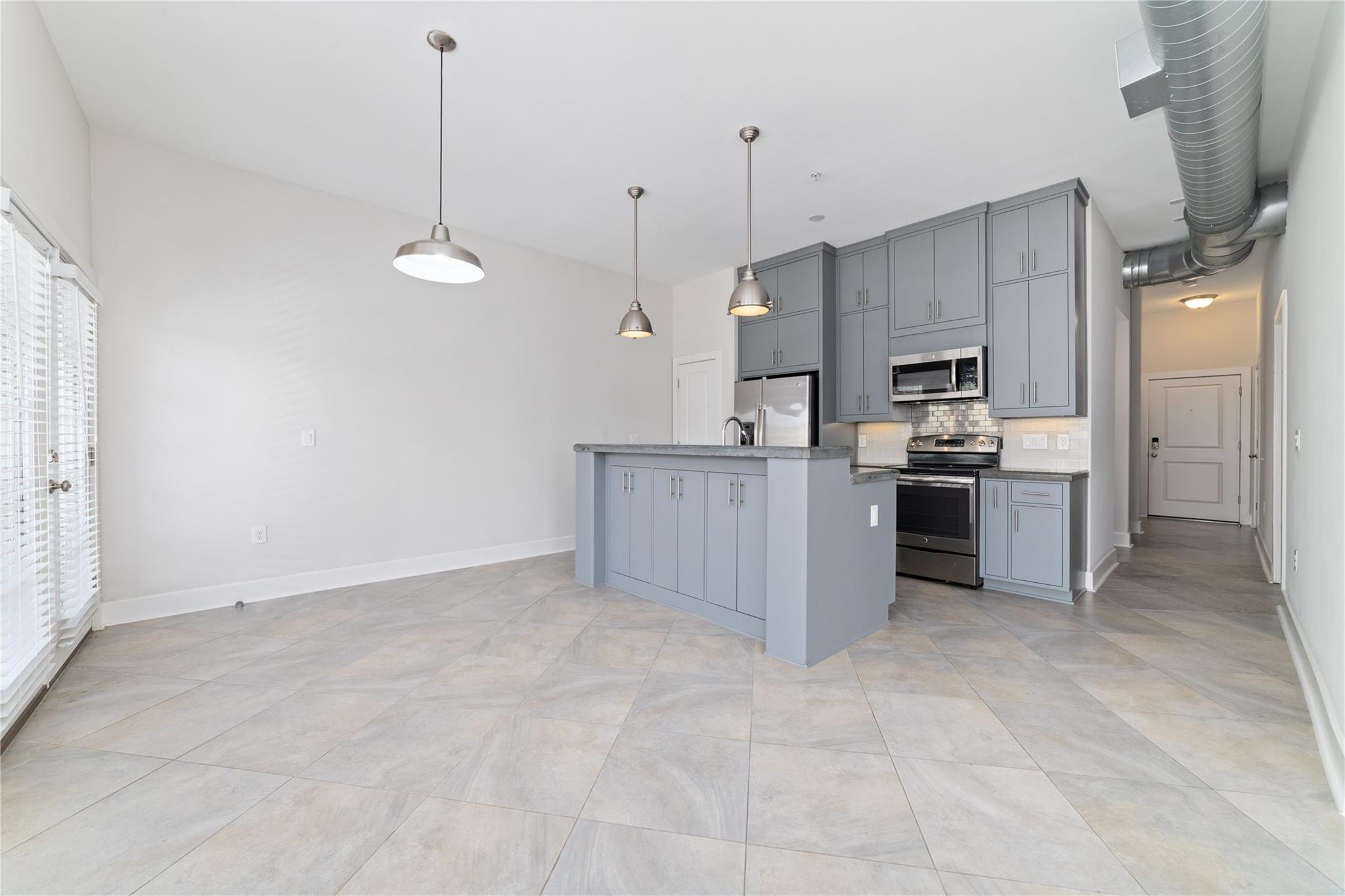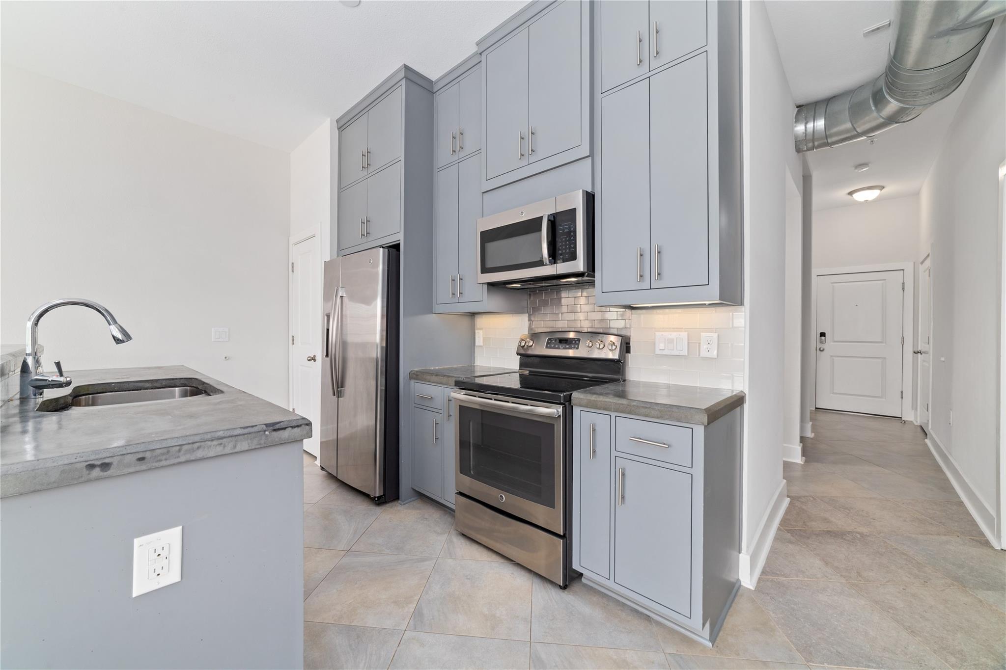 InteriorFloors:TileCountertop:Polished ConcreteBathroom Description:Primary Bath: Shower Only,Secondary Bath(s): Shower OnlyBedroom Desc:All Bedrooms Down,Walk-In ClosetKitchen Desc:Breakfast Bar,Island w/ Cooktop,Kitchen open to Family Room,PantryRoom Description:Living Area - 1st Floor,Utility Room in HouseHeating:Central ElectricCooling:Central ElectricDishwasher:YesDisposal:YesCompactor:NoMicrowave:YesRange:Electric Range,Freestanding RangeOven:Electric Oven,Freestanding OvenIce Maker:NoAppliances:Dryer Included,Full Size,Refrigerator,Washer IncludedEnergy Feature:Ceiling Fans,Digital Program Thermostat,Insulation - Rigid Foam,Insulation - Spray-Foam,North/South ExposureInterior:Balcony,Fire/Smoke Alarm,High Ceiling,Refrigerator Included