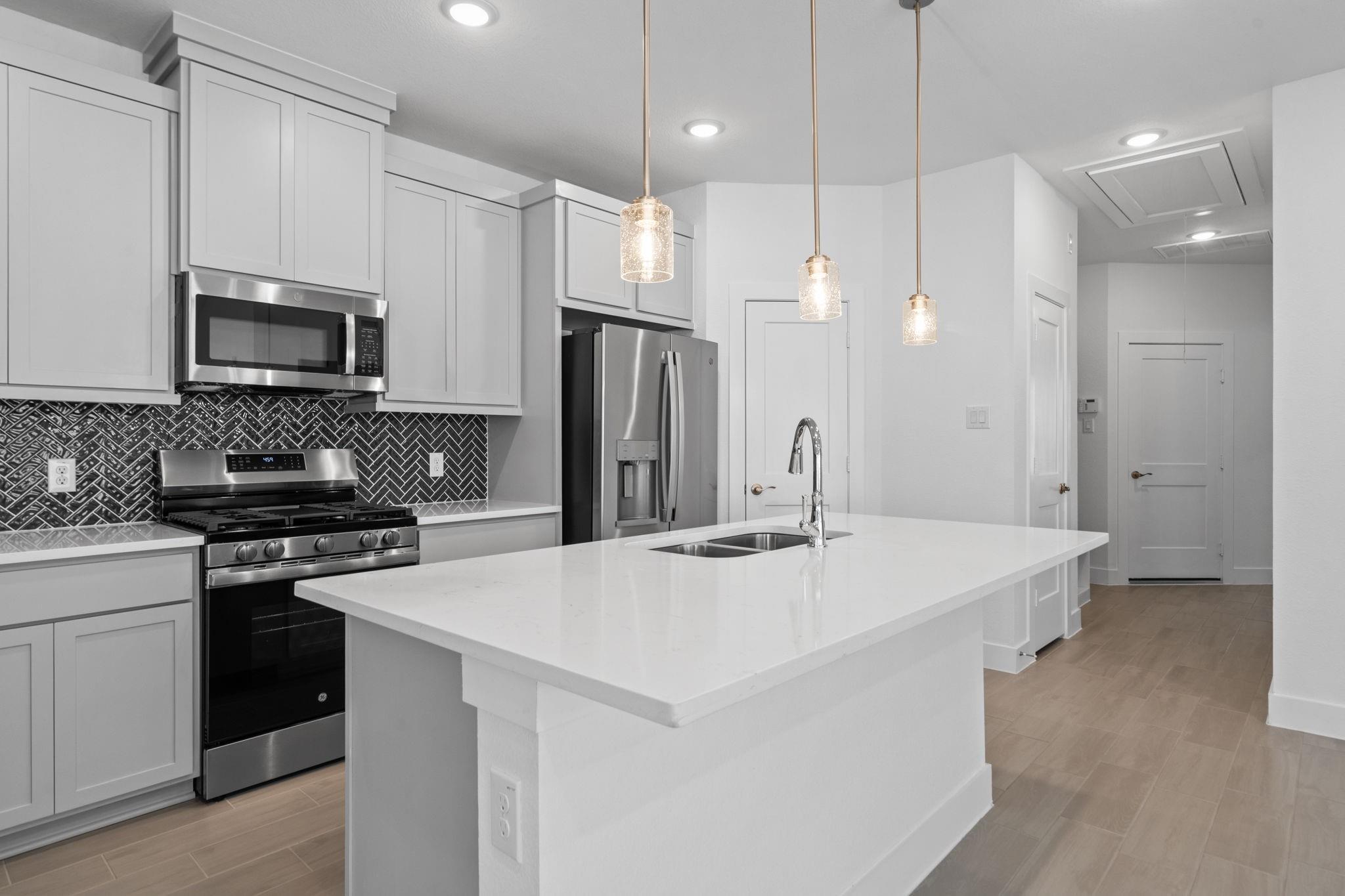 InteriorFloors:Carpet,TileCountertop:QuartzBedroom Desc:Primary Bed - 2nd Floor,Walk-In ClosetKitchen Desc:Island w/o Cooktop,Under Cabinet LightingRoom Description:Breakfast Room,Family RoomHeating:Central GasCooling:Central ElectricWasher/Dryer Conn:YesDishwasher:YesDisposal:YesCompactor:NoMicrowave:YesRange:Gas RangeOven:Convection Oven,Gas OvenIce Maker:NoEnergy Feature:Attic Vents,Digital Program Thermostat,Energy Star Appliances,Radiant Attic BarrierInterior:Alarm System - Owned,Dry Bar,High Ceiling,Refrigerator Included