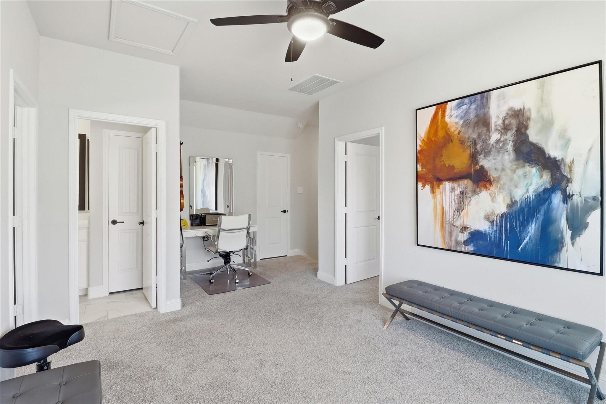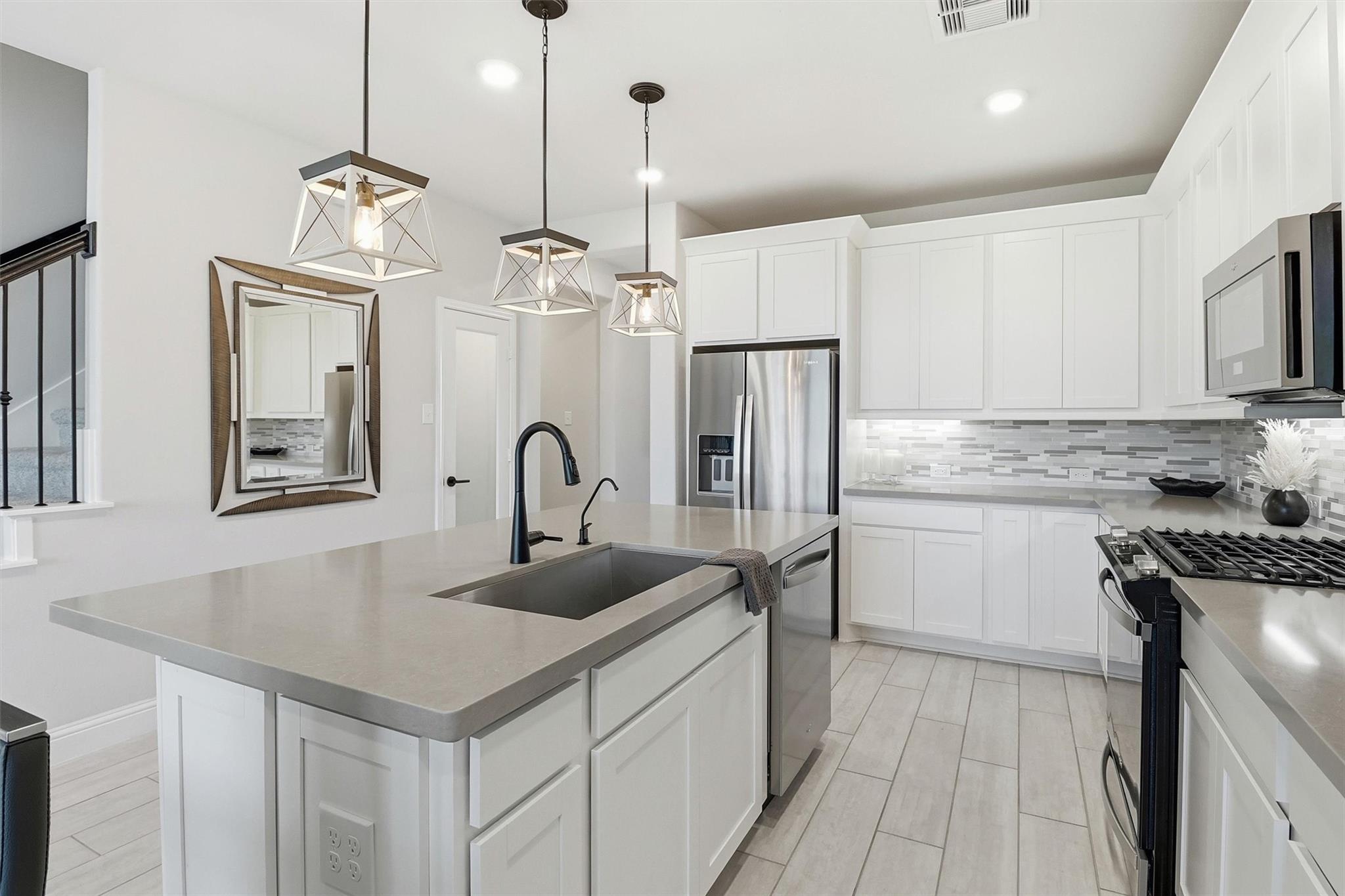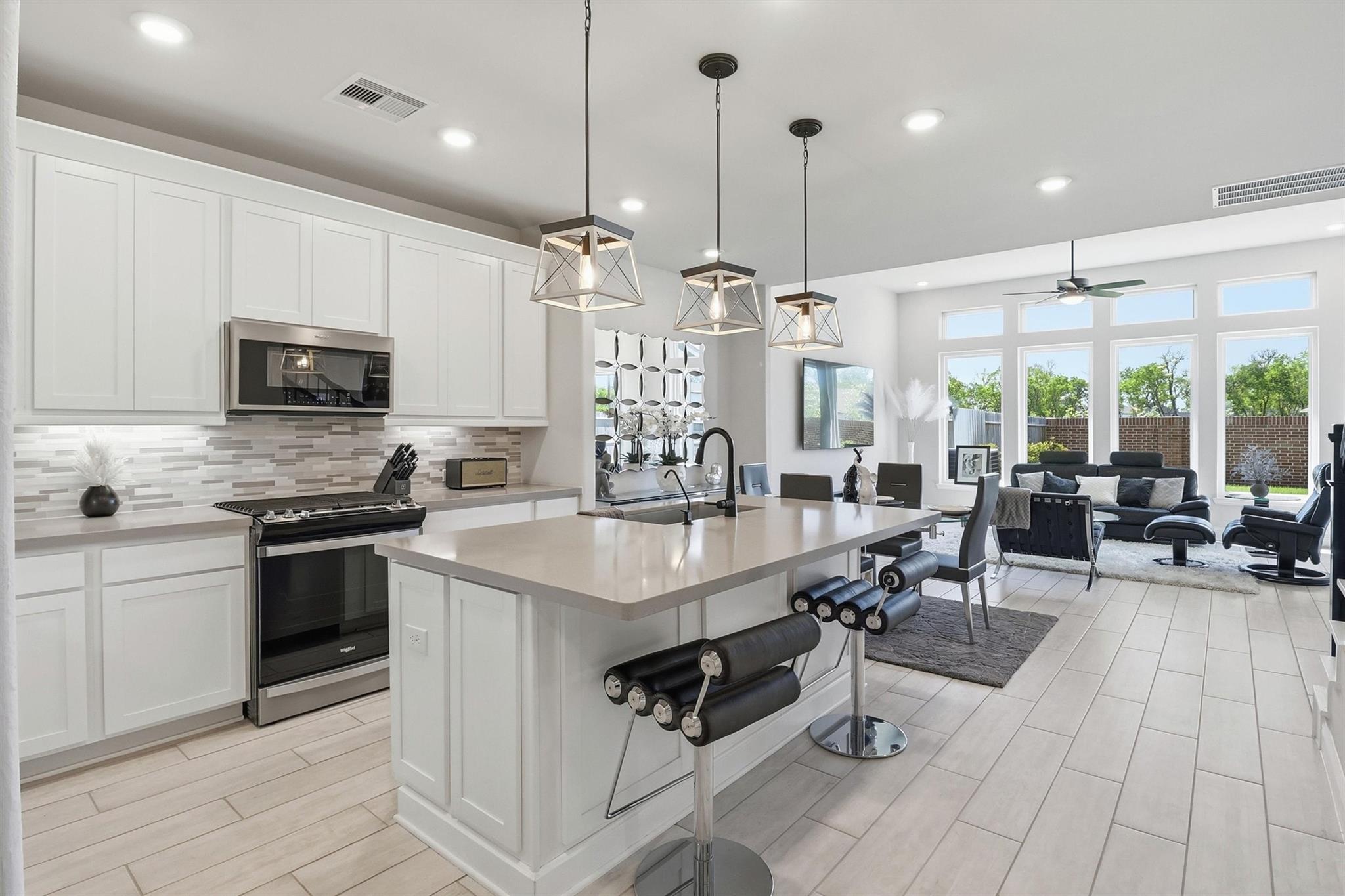 InteriorFloors:Carpet,TileCountertop:QuartzBathroom Description:Primary Bath: Double Sinks,Primary Bath: Shower OnlyBedroom Desc:2 Bedrooms Up,Primary Bed - 1st Floor,Walk-In ClosetKitchen Desc:Breakfast Bar,Island w/o Cooktop,Kitchen open to Family Room,PantryRoom Description:Family Room,Gameroom Up,Home Office/Study,Living Area - 1st Floor,Utility Room in HouseHeating:Central GasCooling:Central ElectricWasher/Dryer Conn:YesDishwasher:YesDisposal:YesCompactor:NoMicrowave:YesRange:Gas CooktopOven:Gas OvenIce Maker:NoEnergy Feature:Ceiling Fans,Energy Star Appliances,Energy Star/CFL/LED Lights,High-Efficiency HVAC,HVAC>13 SEER,Insulated/Low-E windows,Insulation - Other,Radiant Attic BarrierInterior:Fire/Smoke Alarm,High Ceiling
