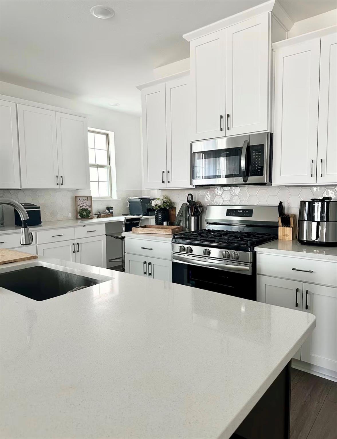 A beautifully updated home offering a bright, open-concept layout with modern finishes and abundant natural light. The spacious living area flows seamlessly into a stylish kitchen featuring granite countertops, stainless steel appliances, ample cabinetry, and a functional island ideal for everyday living and entertaining. The private primary suite includes a well-appointed bath with dual vanities, a soaking tub, separate shower, and walk-in closet. Secondary bedrooms are generously sized and versatile. Enjoy a large backyard perfect for relaxing or hosting, along with the convenience of nearby highways, shopping, and dining. Move-in ready and thoughtfully designed, this home combines comfort, style, and functionality.