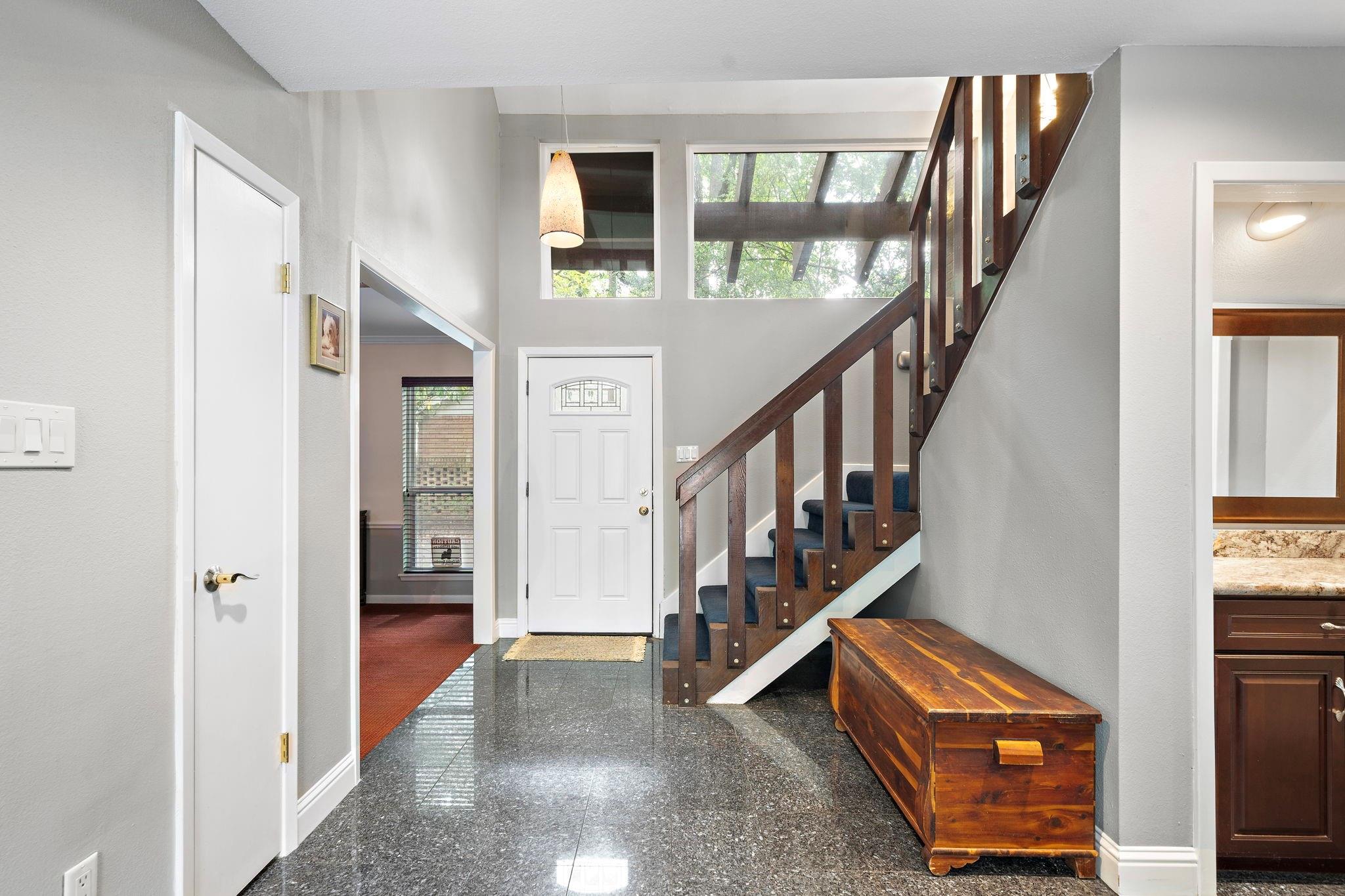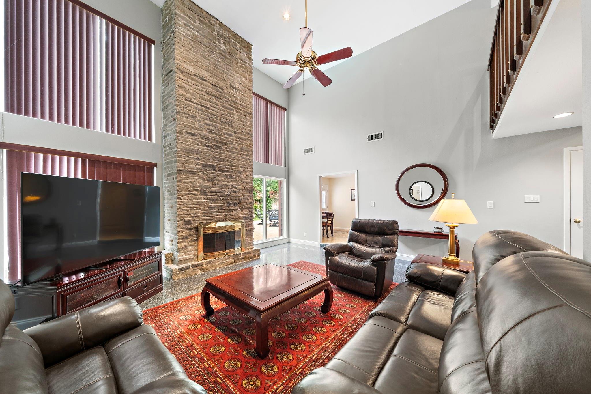 Lovely Hilshire Village! Tucked away on a quiet cul de sac this home offers first floor Primary Bedroom. Living area features vaulted ceiling, striking fireplace with stone surround, and views of the backyard and pool. Island kitchen with granite counters opens to Breakfast room. Upstairs are 2 guest bedrooms and a huge game room. Sparkling pool in backyard. Many updates including windows 2020-2022, A/C units 2021, driveway pavers 2022, pool resurfacing 2023, gutters added 2021. Hilshire Village is patrolled by Spring Valley Village police. Zoned to Valley Oaks Elementary, Spring Branch Middle, and Memorial High!