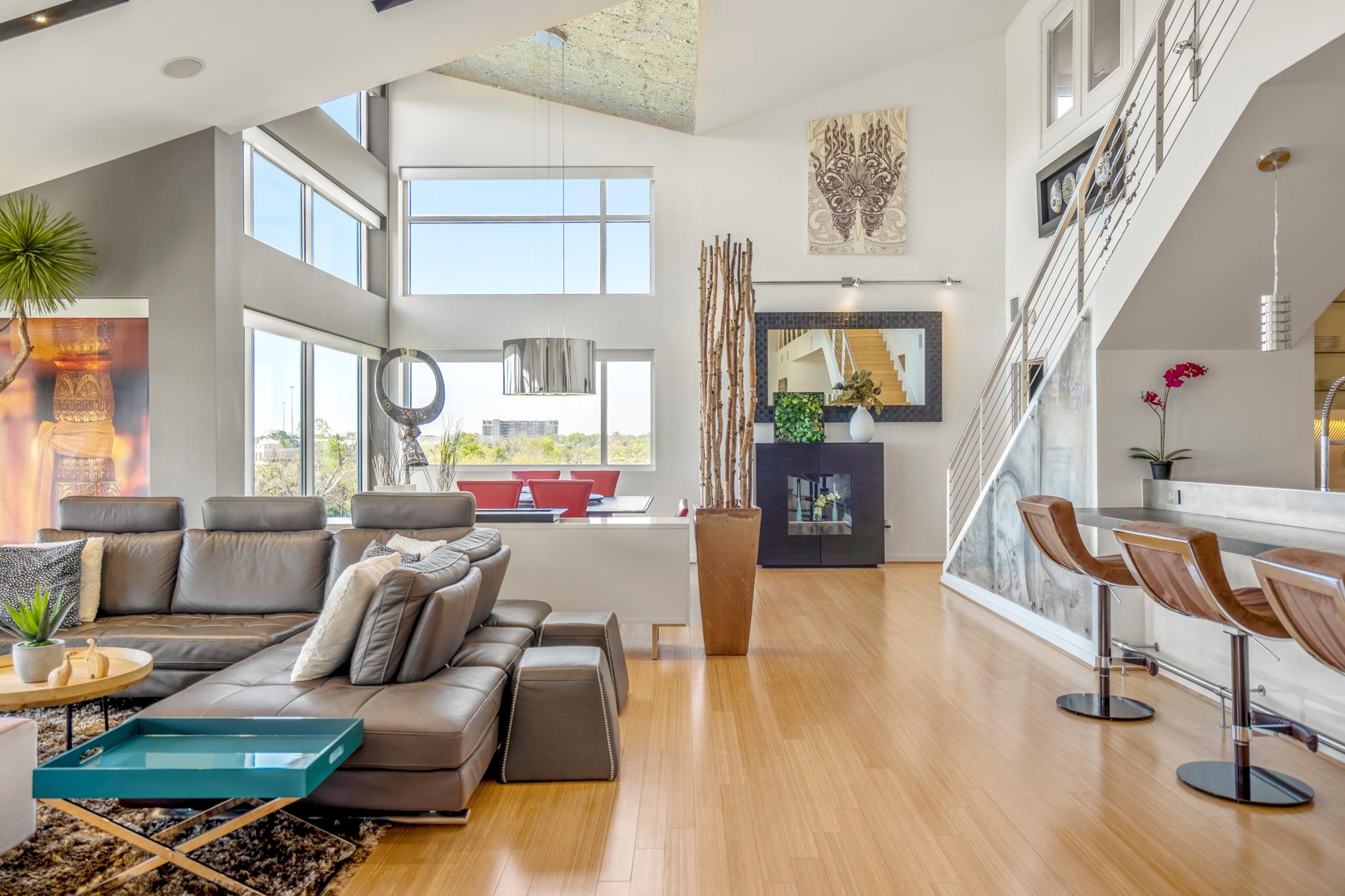 This isn’t just a penthouse… it’s a front-row seat to Houston. Welcome to 102 Quitman Street #405 at The Point at Fischer Gardens—a stunning two-level loft with soaring ceilings, natural light, and an open-concept design built for living and entertaining. The chef-inspired kitchen features premium finishes and a spacious island flowing seamlessly into expansive living and dining areas. Multiple spaces—including a private office, game room, media room, and even a private half-court basketball court inside the residence—offer unmatched flexibility for work and play. Step outside to a covered terrace and balcony with uninterrupted Downtown Houston views—arguably the best in the city for holiday fireworks. Spacious bedrooms with en-suite baths, smart home features, assigned parking, and controlled access complete this exceptional opportunity.