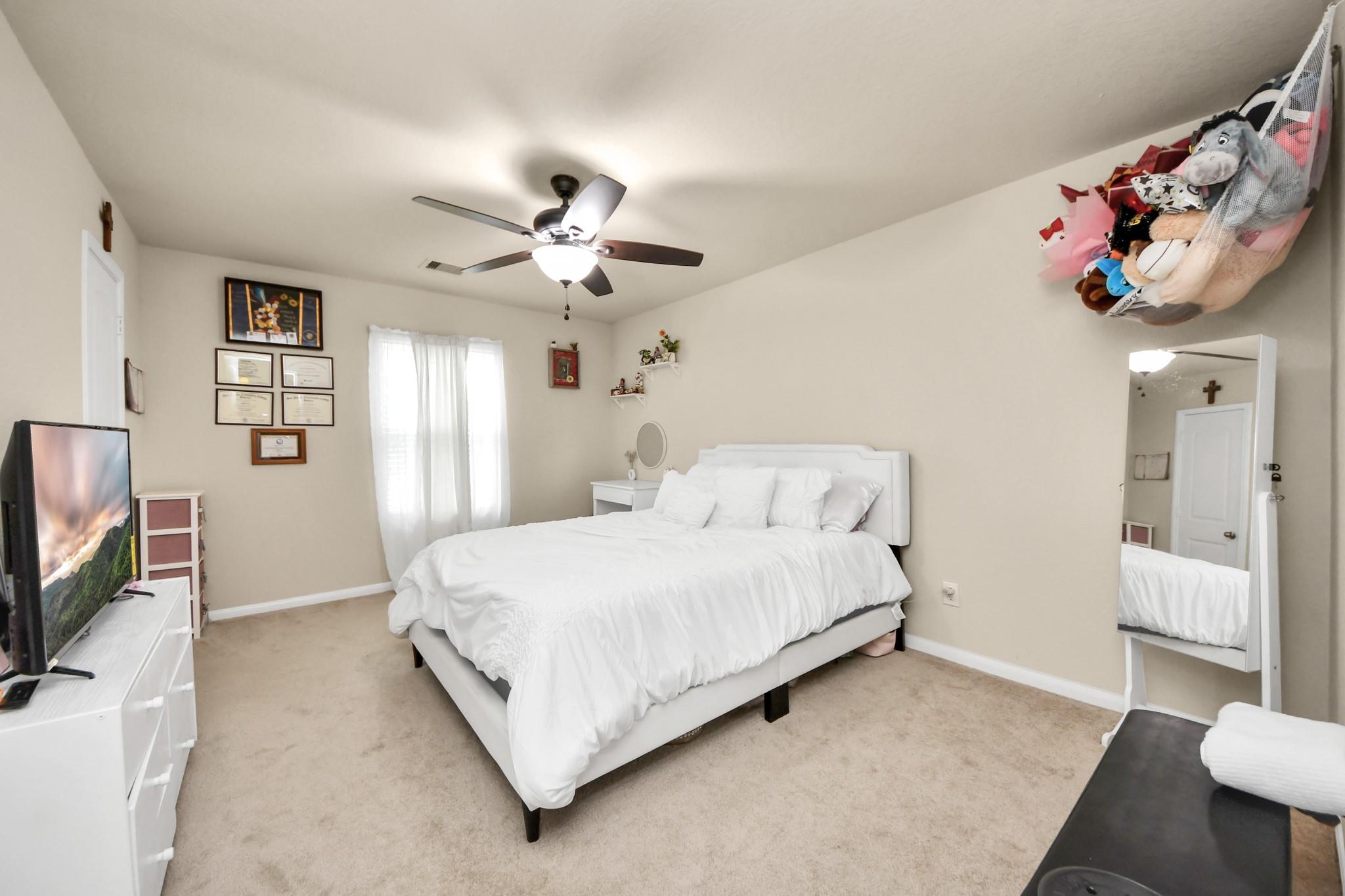Welcome home! This beautifully updated home offers comfort and quality in a prime location. Featuring upgraded ceramic brick exterior, it helps keep the home cooler during hot summer months. Inside, enjoy spacious walk-in closets, a large walk-in pantry, a dedicated office/study, and an open-concept layout with beautiful tile flooring throughout the first floor. Freshly painted inside and out, with new carpet, full gutters, and a new cedar side fence with gate. Ceiling fans throughout provide added comfort. Enjoy privacy with no back neighbors. This home is very well maintained & truly stands out from the rest. Schedule your showing today!