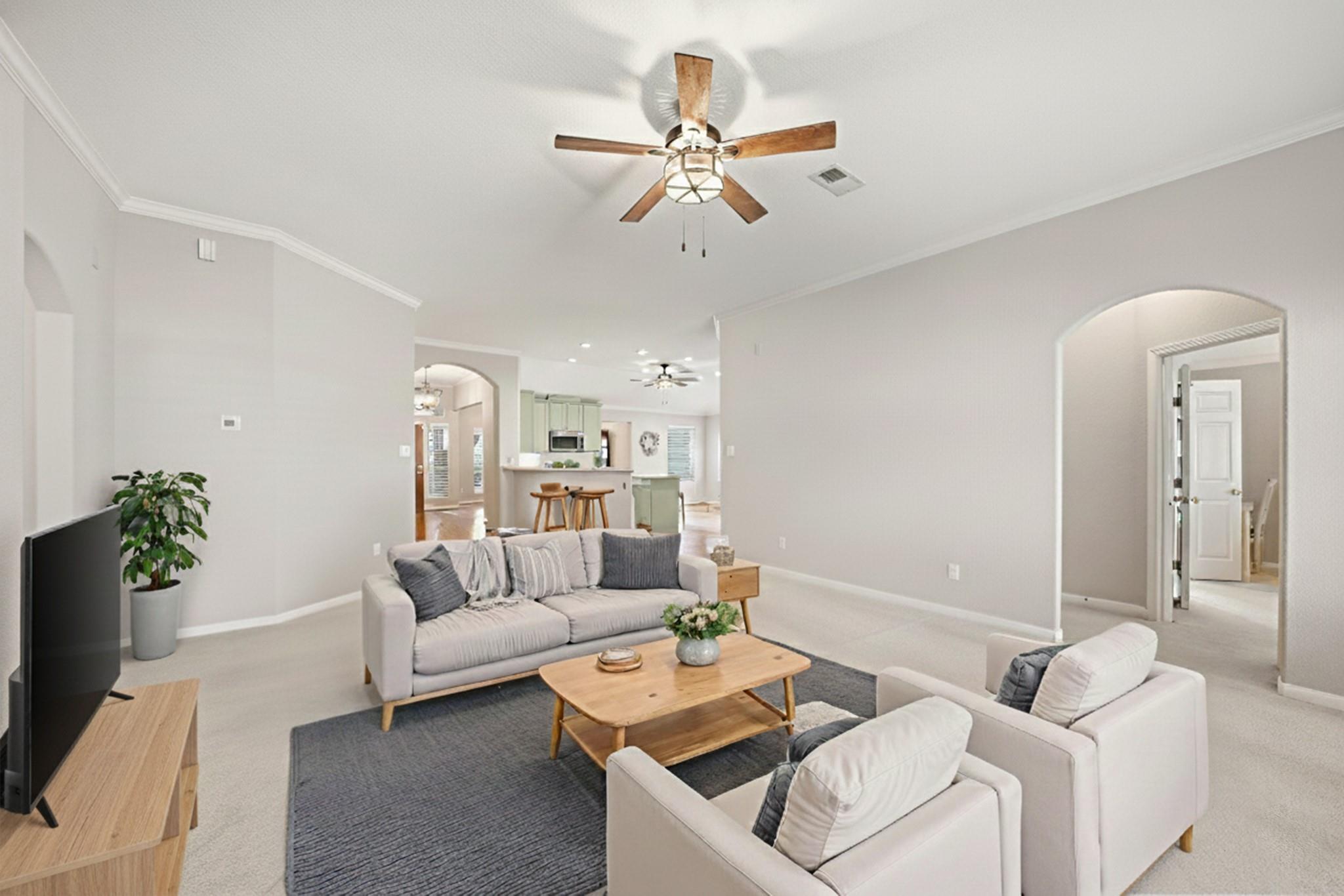 Beautifully updated single-story brick home located in the Sienna master-planned community within Sienna Village of Shipmans Landing. This move-in-ready residence features an open-concept layout with vaulted ceilings, a spacious formal dining area, and a comfortable family room anchored by a cozy fireplace. The recently renovated kitchen offers stylish sage-green cabinetry, quartz countertops, a large island, and brand-new Café appliances, creating a functional and modern gathering space. A covered patio overlooks a generous private backyard with mature trees, ideal for outdoor enjoyment and entertaining. Several major components have been replaced within the past 10 years, including a 2023 water heater, providing added peace of mind. Conveniently located near Ridge Point High School and minutes from Sienna’s extensive amenities, parks, and walking trails.