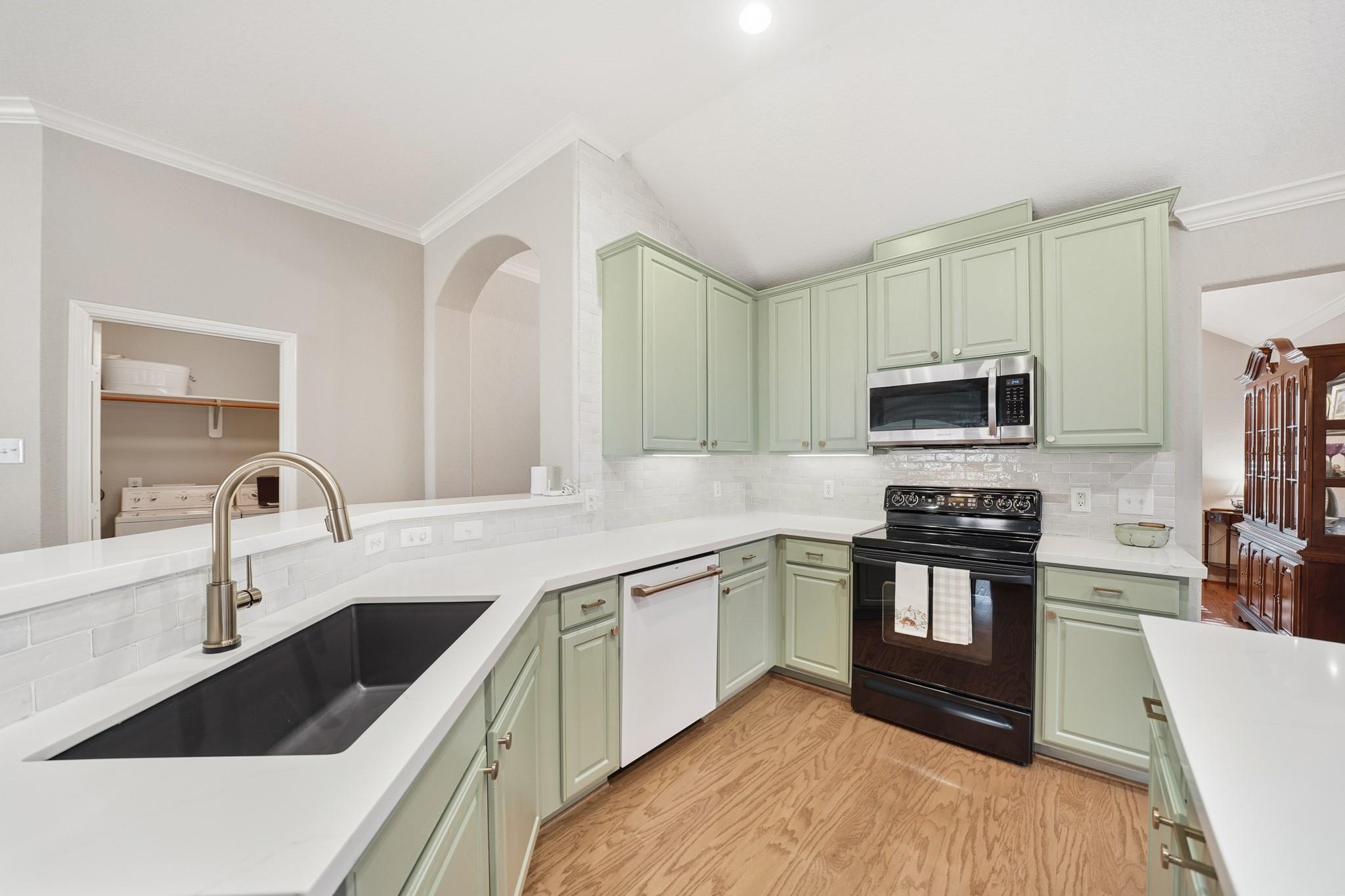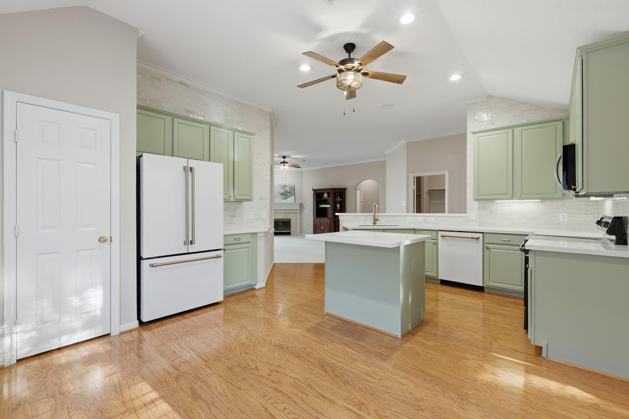 InteriorFireplace:1/Gaslog FireplaceFloors:Carpet,Tile,WoodBathroom Description:Primary Bath: Double Sinks,Primary Bath: Jetted Tub,Primary Bath: Separate Shower,Primary Bath: Soaking TubBedroom Desc:All Bedrooms Down,En-Suite Bath,Primary Bed - 1st Floor,Split Plan,Walk-In ClosetKitchen Desc:Breakfast Bar,Island w/o Cooktop,Kitchen open to Family Room,PantryRoom Description:Breakfast Room,Den,Formal Dining,Utility Room in HouseHeating:Central GasCooling:Central ElectricConnections:Electric Dryer Connections,Gas Dryer Connections,Washer ConnectionsDishwasher:YesDisposal:YesCompactor:NoMicrowave:YesRange:Electric RangeOven:Electric OvenIce Maker:NoEnergy Feature:Attic Vents,Ceiling FansInterior:Alarm System - Owned,Crown Molding,Fire/Smoke Alarm,High Ceiling,Vaulted Ceiling