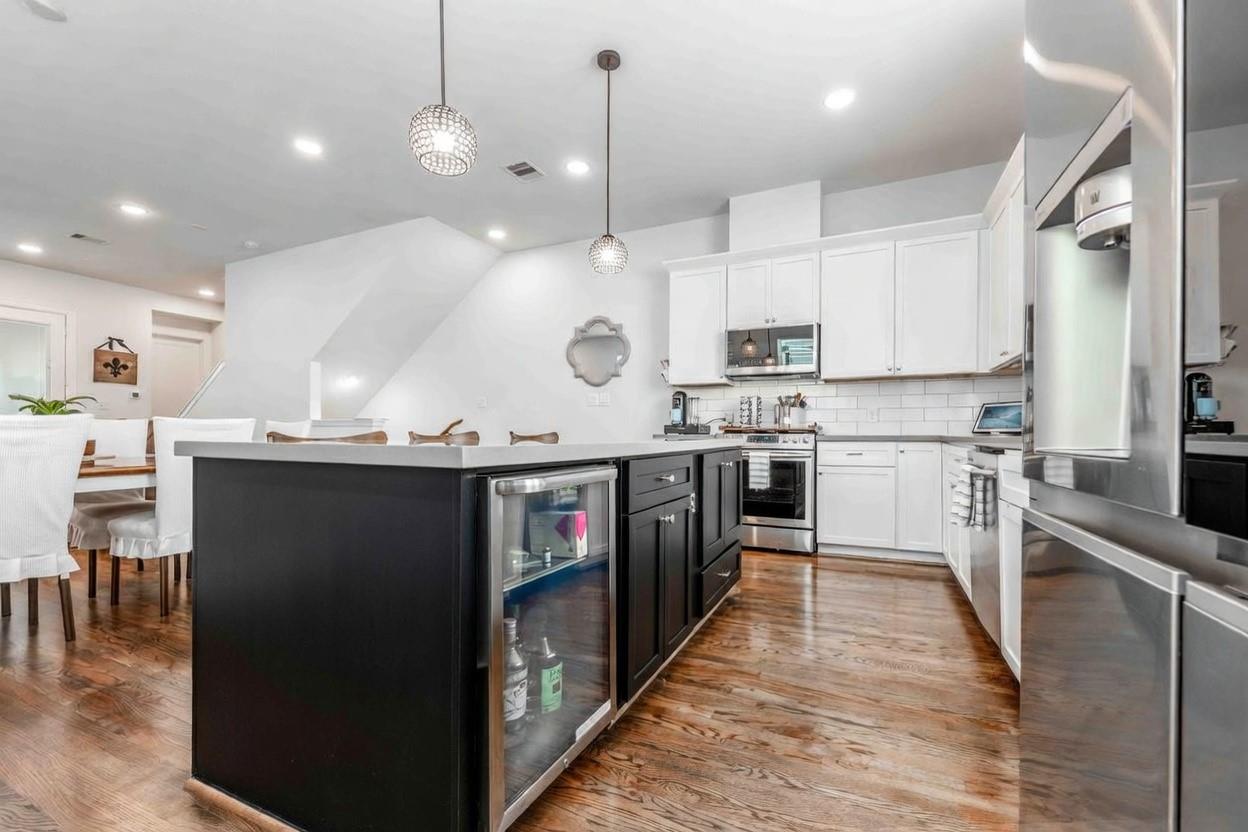 InteriorFloors:Tile,WoodBathroom Description:Full Secondary Bathroom Down,Half Bath,Primary Bath: Double Sinks,Primary Bath: Separate Shower,Primary Bath: Soaking Tub,Secondary Bath(s): Tub/Shower ComboBedroom Desc:1 Bedroom Down - Not Primary BR,2 Bedrooms Up,En-Suite Bath,Primary Bed - 3rd Floor,Walk-In ClosetKitchen Desc:Island w/o Cooktop,Kitchen open to Family Room,Pantry,Pots/Pans Drawers,Soft Closing Cabinets,Soft Closing DrawersRoom Description:1 Living Area,Entry,Guest Suite,Guest Suite w/Kitchen,Kitchen/Dining Combo,Living Area - 2nd Floor,Living/Dining Combo,Utility Room in HouseHeating:Central Gas,ZonedCooling:Central Electric,ZonedConnections:Electric Dryer Connections,Gas Dryer Connections,Washer ConnectionsDishwasher:YesDisposal:YesMicrowave:YesRange:Freestanding Range,Gas RangeOven:Convection Oven,Gas Oven,Single OvenEnergy Feature:Attic Vents,Ceiling Fans,Digital Program Thermostat,Energy Star Appliances,Energy Star/CFL/LED Lights,Energy Star/Reflective Roof,High-Efficiency HVAC,Insulated Doors,Insulated/Low-E windows,Insulation - Batt,Other Energy Features,Radiant Attic Barrier,Tankless/On-Demand H2O HeaterInterior:Alarm System - Leased,Alarm System - Owned,Balcony,Dryer Included,Fire/Smoke Alarm,Formal Entry/Foyer,High Ceiling,Prewired for Alarm System,Refrigerator Included,Split Level,Washer Included,Window Coverings,Wine/Beverage Fridge,Wired for Sound