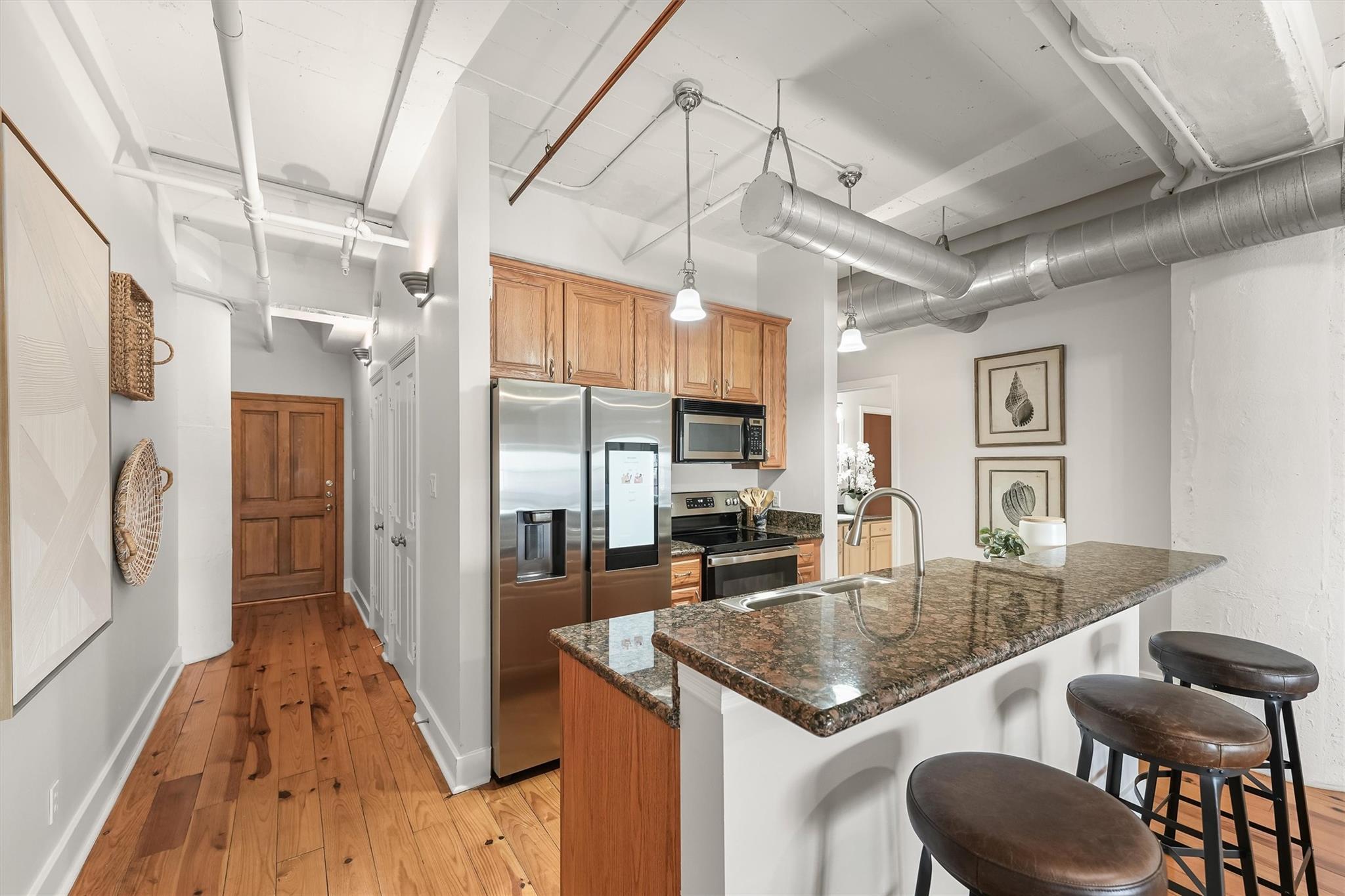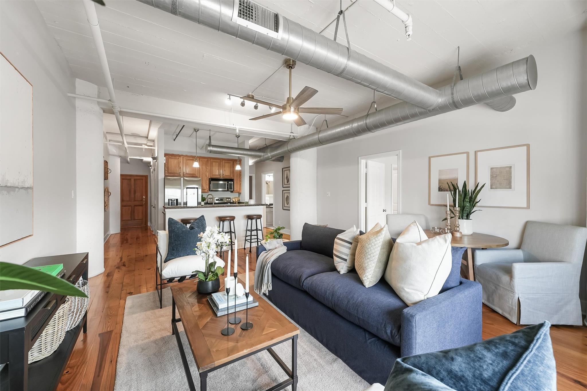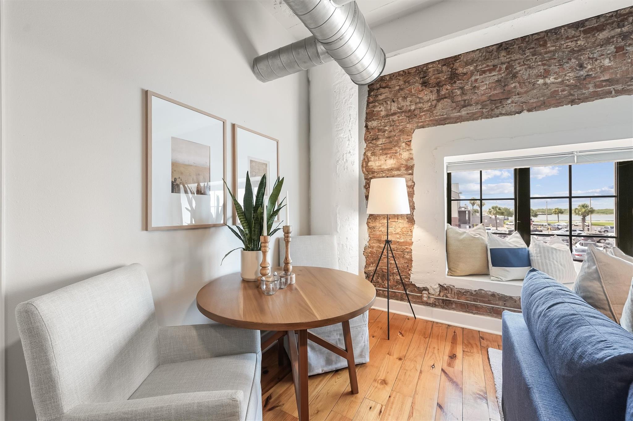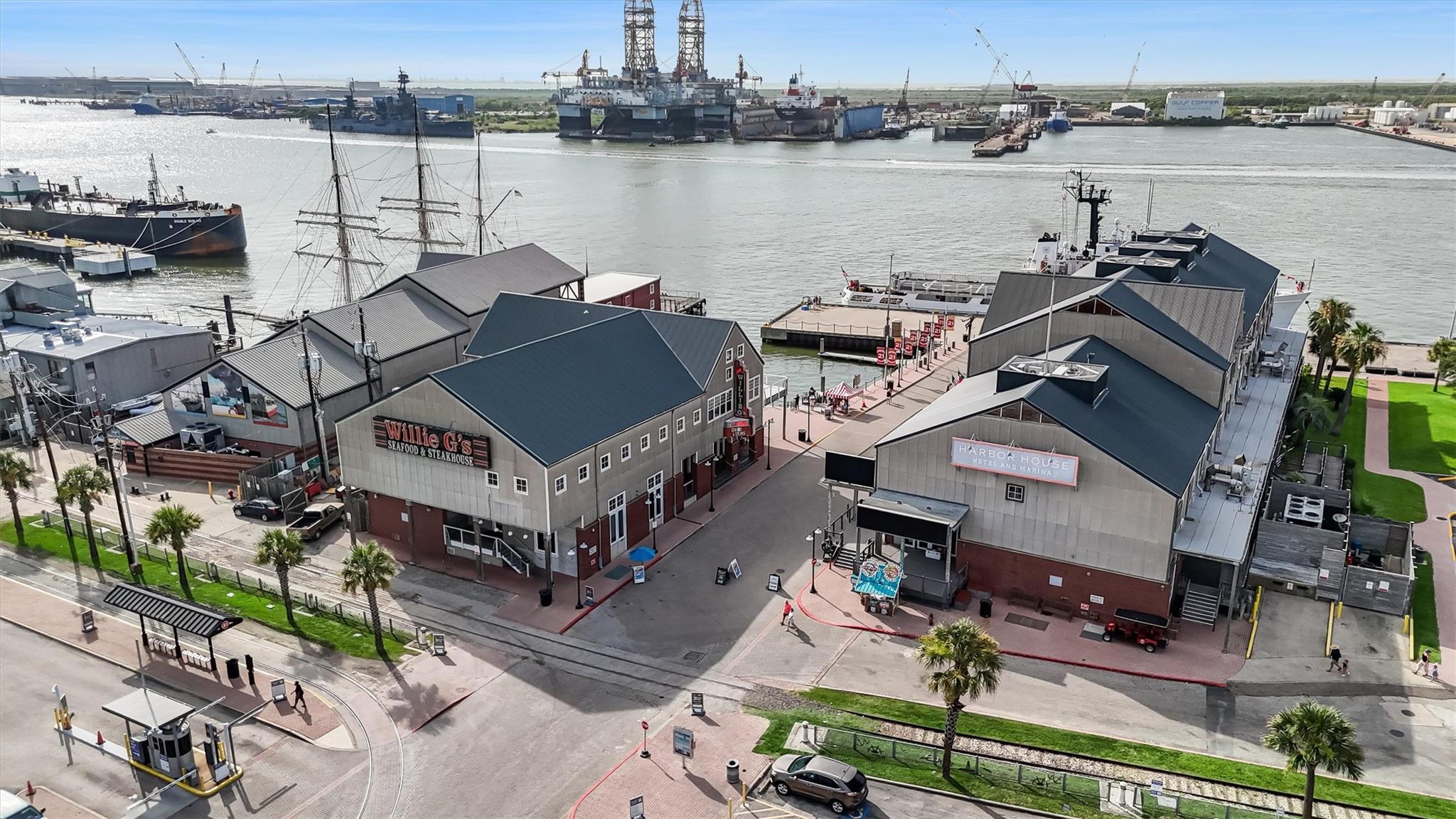 Just steps from The Strand and directly across from Pier 21, this well-kept 2-bedroom, 2-bath condo offers a prime location in Galveston’s historic downtown. The building dates back to 1910 and was later transformed into stylish loft-style residences, preserving classic details such as exposed brick walls, tall ceilings, and original pine hardwood floors while incorporating modern updates throughout. The interior features generously sized bedrooms with private baths and walk-in closets, a dedicated laundry room, and oversized windows that frame scenic views of the harbor, including passing cruise ships and shrimp boats. Residents enjoy the convenience of gated parking, elevator access, and secure building entry. With easy walking access to popular dining, shopping, coffee shops, and nightlife — plus a nearby dog park and trolley stop just outside — this condo delivers the ultimate downtown Galveston lifestyle. Ideal for everyday living or as a quiet coastal retreat.