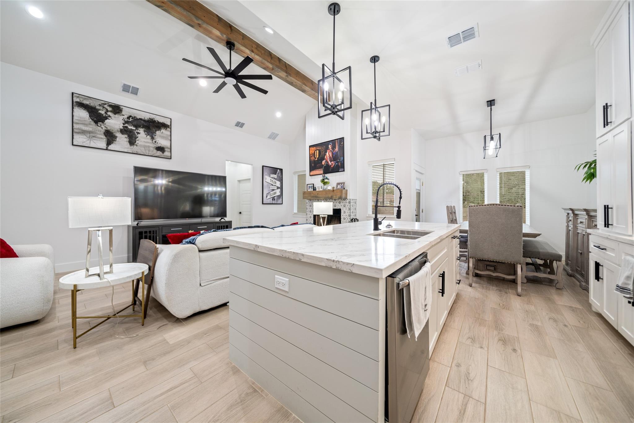 Welcome to this beautiful 2023-built home in the heart of Aransas Pass! This thoughtfully designed 3-bedroom, 2-bath residence offers an open and inviting layout highlighted by soaring cathedral ceilings and plenty of natural light. Bonus area with built-in desk. The modern kitchen is a standout, featuring marbled granite countertops, a spacious island perfect for entertaining, and built-in appliances including a dishwasher and microwave. With clean lines, contemporary finishes, and a bright, airy feel, this home blends comfort and style effortlessly. Beautifully maintained, this is a must-see opportunity for anyone looking for a newer home in a great coastal community.