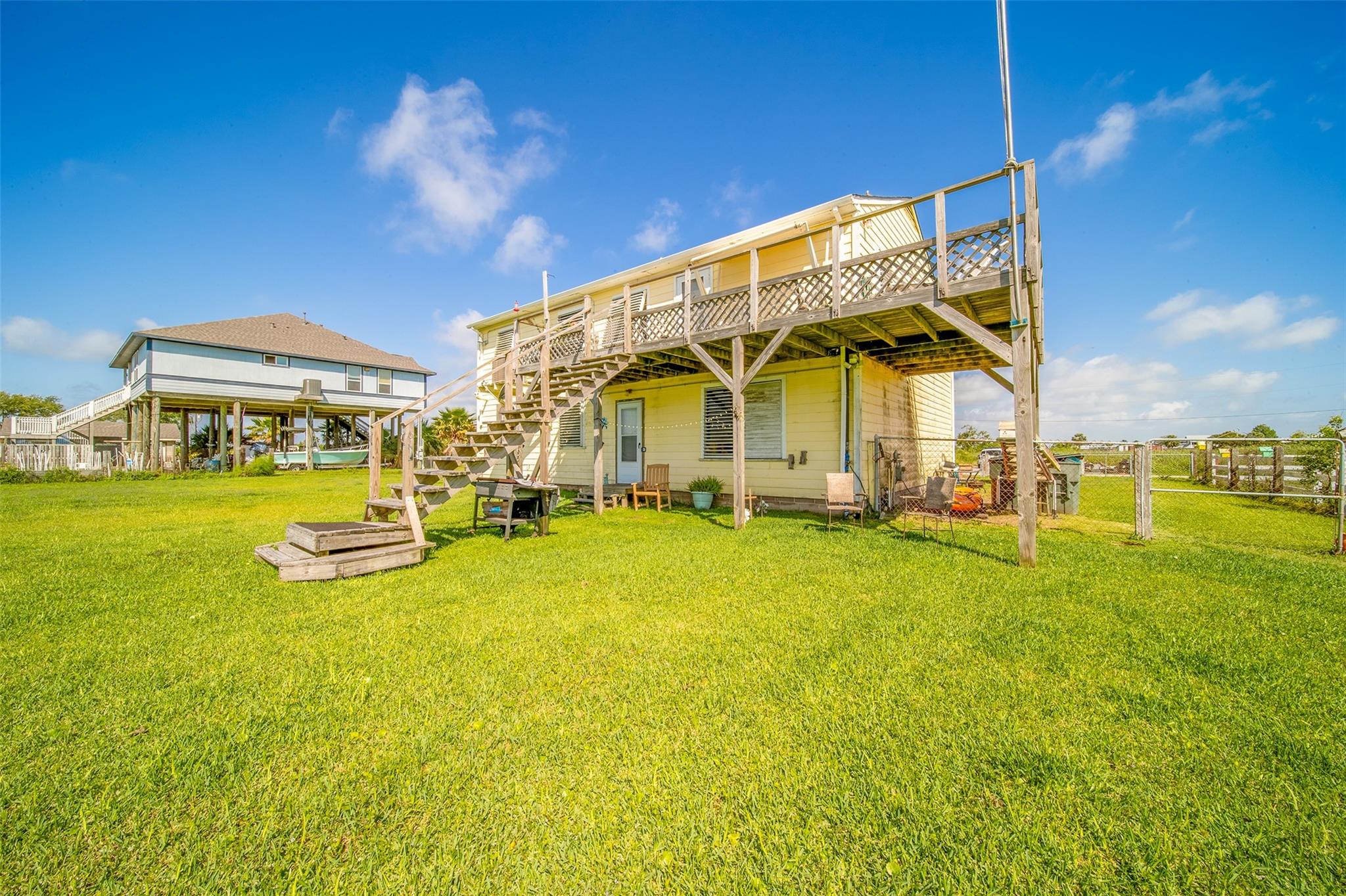 This 1956 charming coastal home has stood the test of time. Nestled on a generous half-acre lot on the desirable west end, this 3bedroom,1.5-bath 1 car garage home offers a peaceful retreat with no back neighbors,no restrictions,and stunning sunrise and sunsets views. Step inside to a cozy atmoshere with refreshing breezes flowing throughout the day. The home features original hardwood flooring under the carpet,ready to be restored to its classic beauty. Enjoy your morning coffee or evening relaxation while taking in the scenic views from the spacious back porch. The property includes a workshop and a versatile bonus space(21x25) in the garage idea for personal getaway,studio,or hobby room. An in home elevator for convenient access into home. The expansive yard is a dream for gardeners,hobby farmers or green thumb.City water,sewer,and gas already in place. Making future upgrades or expansious even easier. A perfect blend of history,potential,and coastal living.