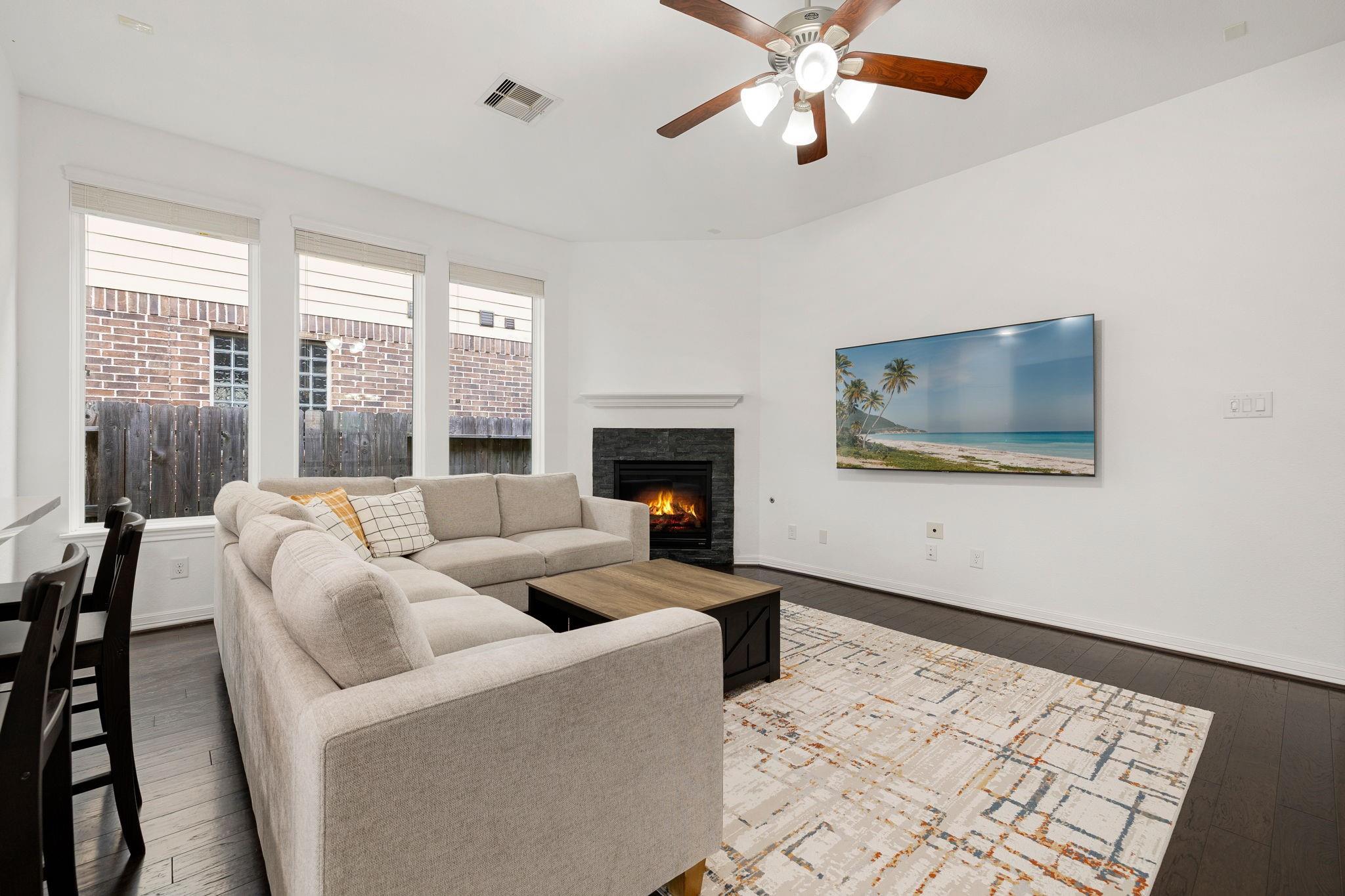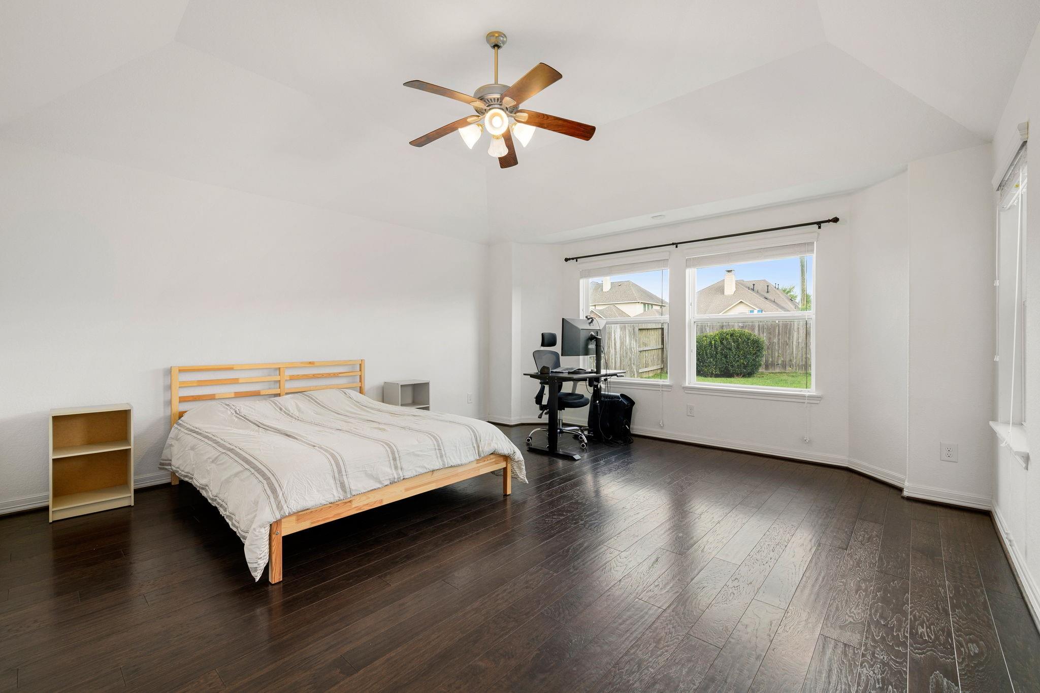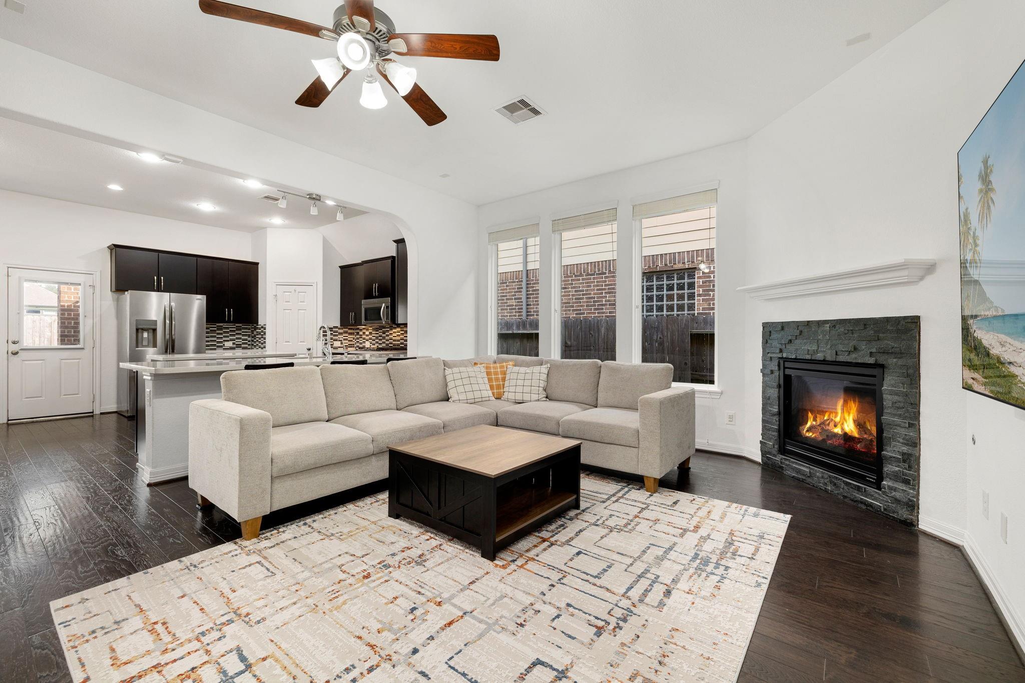 /monthThis stunning single-story home with no back neighbors boasts exquisite finishes and desirable features. The open floor plan showcases high ceilings, engineered wood flooring & an abundance of natural light. The family room with a fireplace flows seamlessly into the updated kitchen with a large island, Quartz countertops, SS appliances, upgraded dishwasher, super single Blanco kitchen sink & a large pantry. Custom shelves adorn the game/living/dining/flex area & one of the bedrooms. The owner's retreat offers raised ceiling, bay windows, a custom walk-in closet, and spa-like ensuite. Guest bedrooms are also spacious with large closets. Additional highlights include upgraded toilet bowls & tanks, upgraded water heater, large capacity washer and dryer, a covered patio with a pergola, and a sprinkler system in the yard. Enjoy community amenities such as a fitness center, parks, pools, and lakeside trails. Perfect for those seeking a stylish and convenient lifestyle!