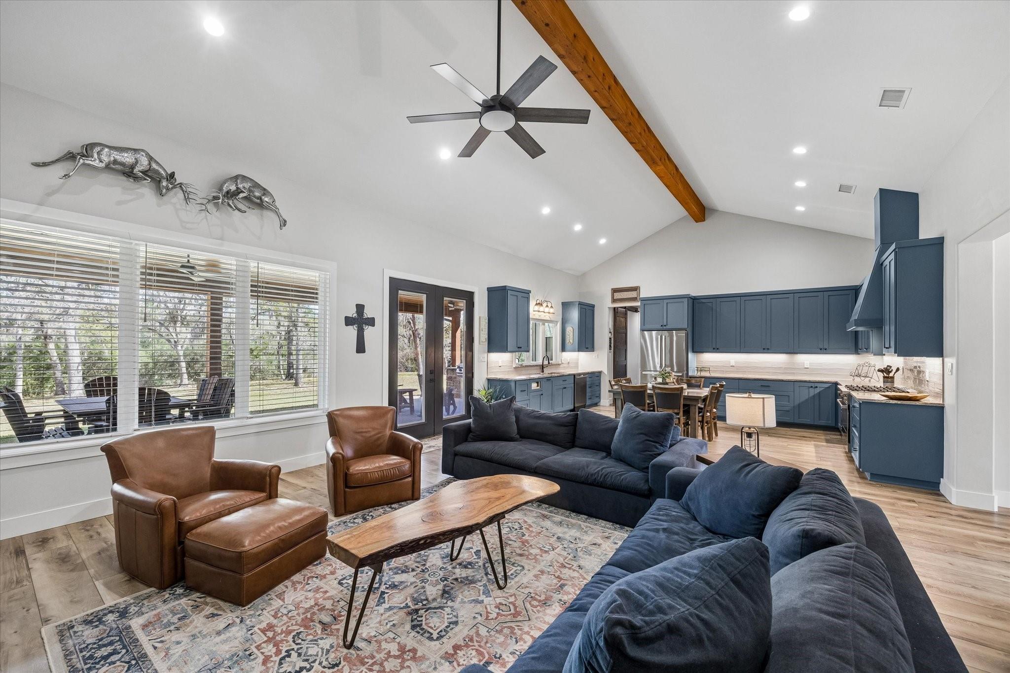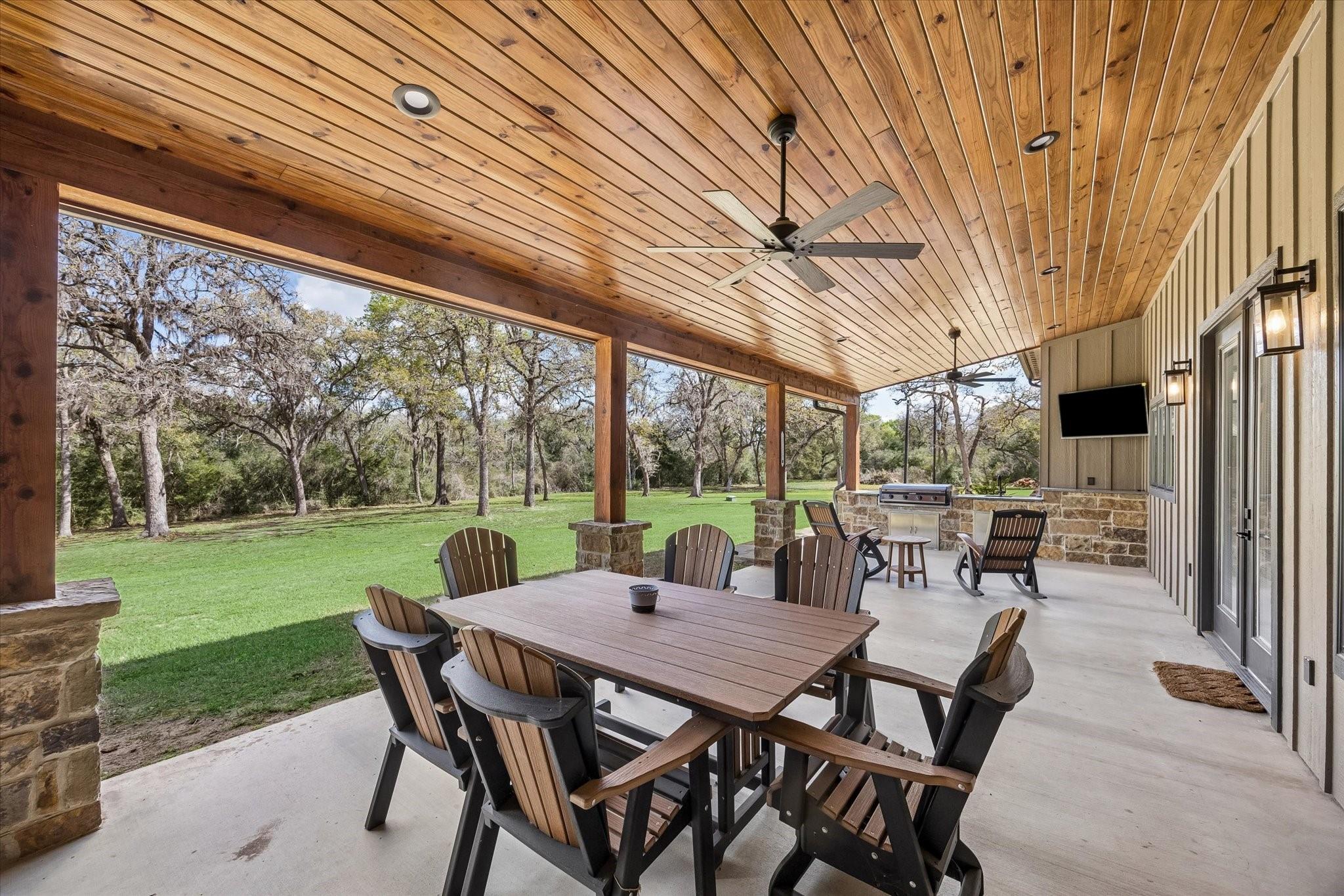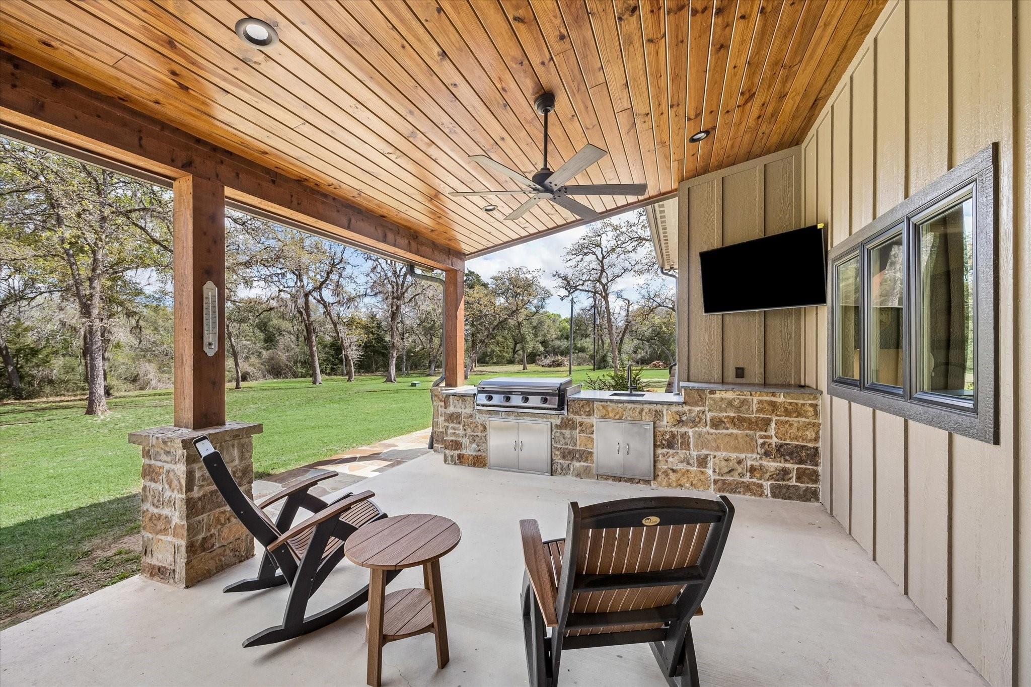 A true hidden gem, this 2023 custom-built home offers 2,486 square feet with 3 spacious bedrooms, 2.5 bathrooms, and a large dedicated office—perfect for working from home or creating a quiet retreat. The open-concept layout seamlessly connects the living, dining, and kitchen areas, ideal for everyday living and entertaining. The gourmet kitchen is a standout, equipped with high-end Bosch appliances and sleek soft-close cabinetry. A large attached garage provides plenty of room for vehicles, storage, or hobbies. Outdoors, you’ll find an expansive back porch complete with an outdoor kitchen featuring a built-in Blackstone grill. Privacy and security are top priorities, with a private entrance secured by an automatic gate, along with a full security and camera system already in place. Additionally, the property is ready for future expansion, with power already available via a dedicated breaker box—ideal for building and supplying electricity to a shop or additional structure.