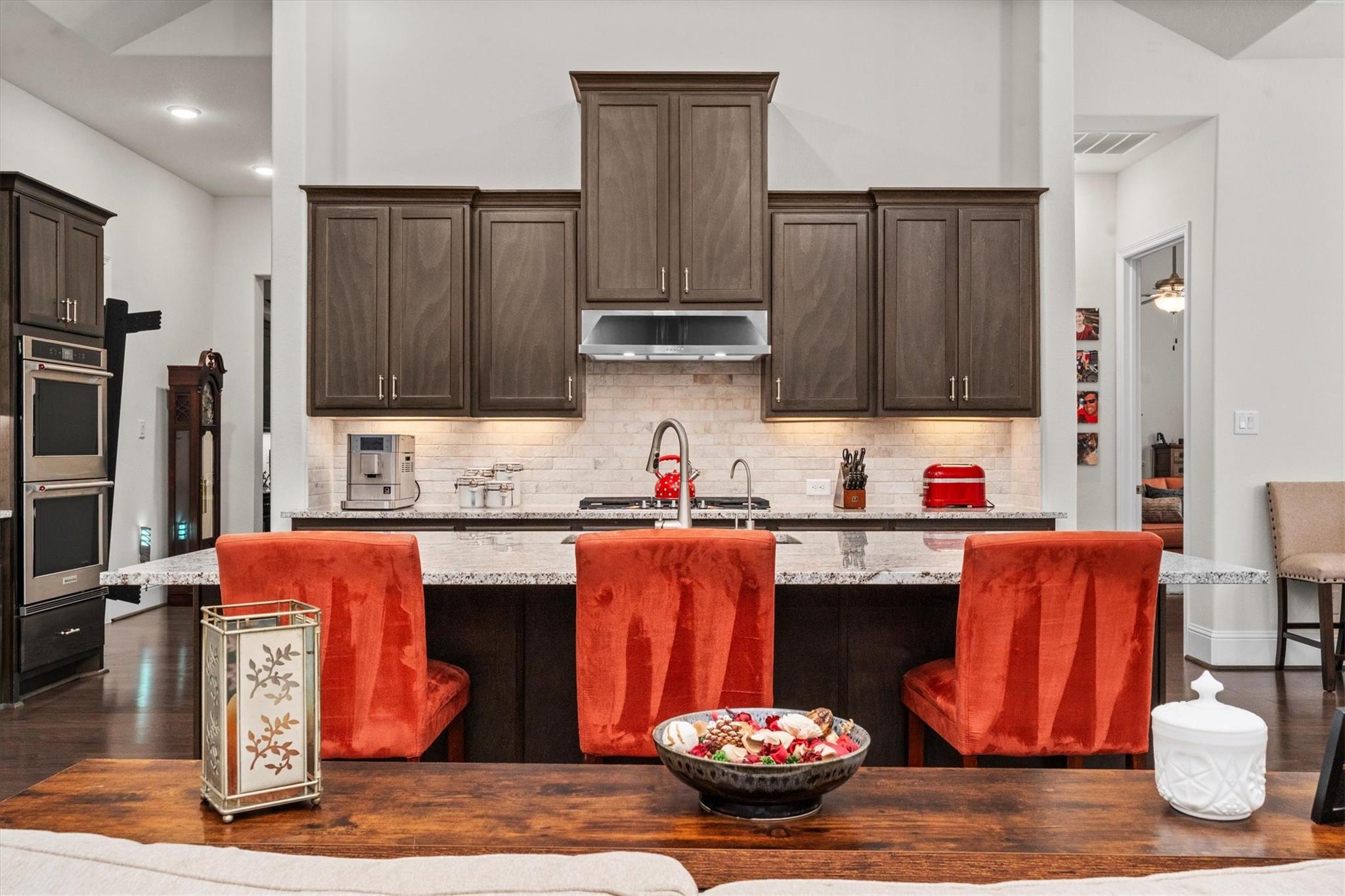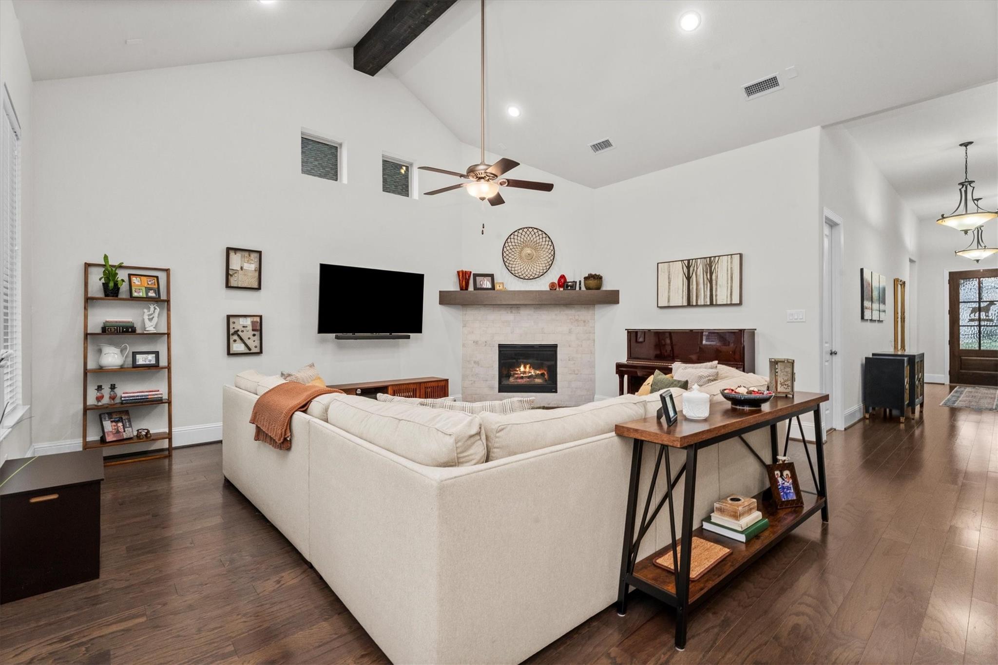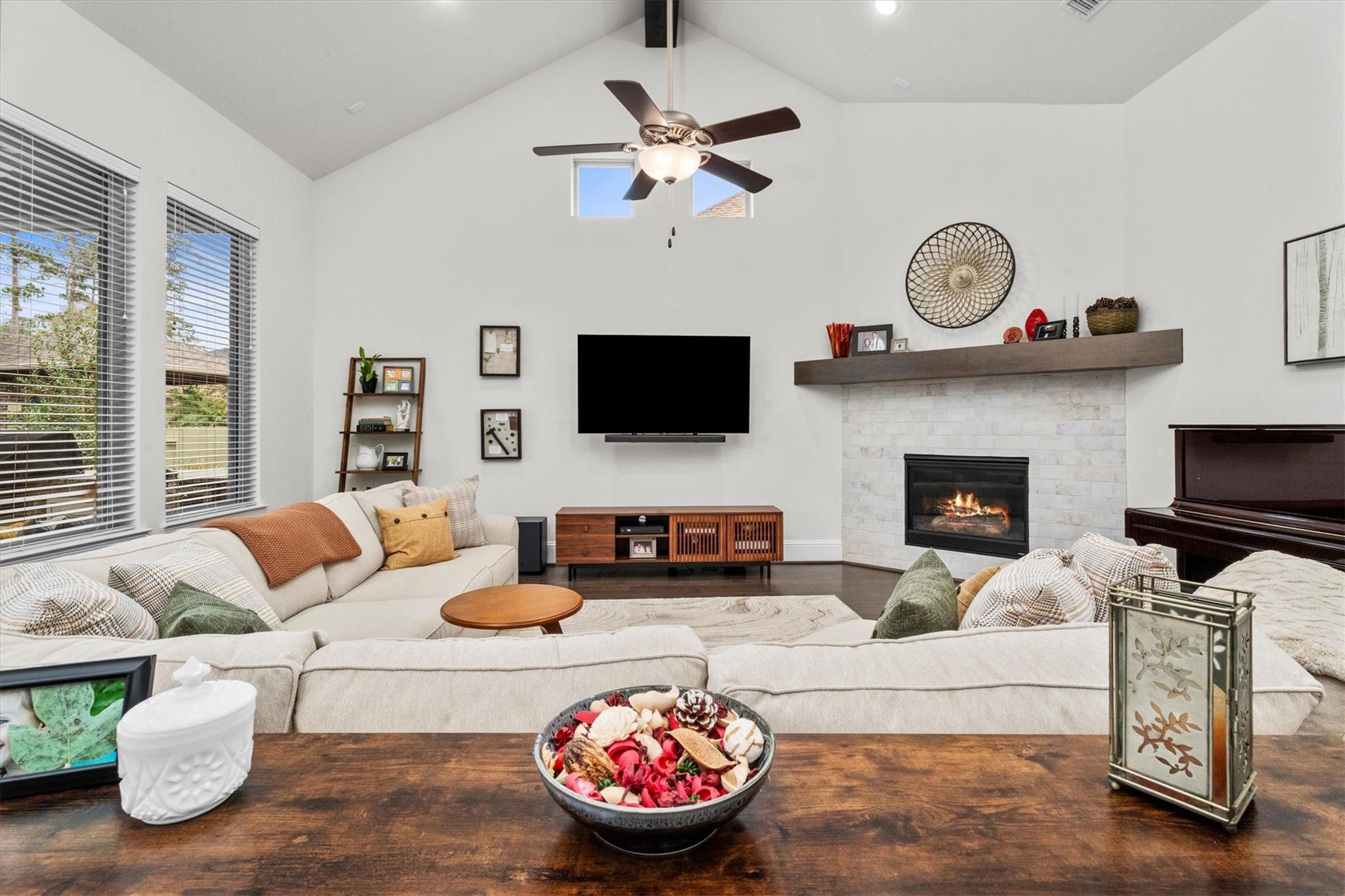 InteriorFireplace:1/Gaslog FireplaceFloors:Tile,WoodBathroom Description:Full Secondary Bathroom Down,Half Bath,Primary Bath: Double Sinks,Primary Bath: Separate Shower,Primary Bath: Soaking Tub,Secondary Bath(s): Separate Shower,Vanity AreaBedroom Desc:All Bedrooms Down,Primary Bed - 1st Floor,Walk-In ClosetKitchen Desc:Island w/o Cooktop,Kitchen open to Family Room,Pots/Pans Drawers,Under Cabinet Lighting,Walk-in PantryRoom Description:Breakfast Room,Den,Family Room,Gameroom Down,Home Office/Study,Kitchen/Dining Combo,Utility Room in HouseHeating:Central GasCooling:Central ElectricConnections:Electric Dryer Connections,Gas Dryer Connections,Washer ConnectionsDishwasher:YesDisposal:YesMicrowave:YesRange:Gas CooktopOven:Double Oven,Electric OvenEnergy Feature:Ceiling Fans,Digital Program Thermostat,Energy Star Appliances,Generator,High-Efficiency HVAC,Insulated/Low-E windows,Tankless/On-Demand H2O HeaterInterior:Alarm System - Owned,Dryer Included,Fire/Smoke Alarm,High Ceiling,Refrigerator Included,Vaulted Ceiling,Washer Included,Water Softener - Owned,Window Coverings,Wired for Sound