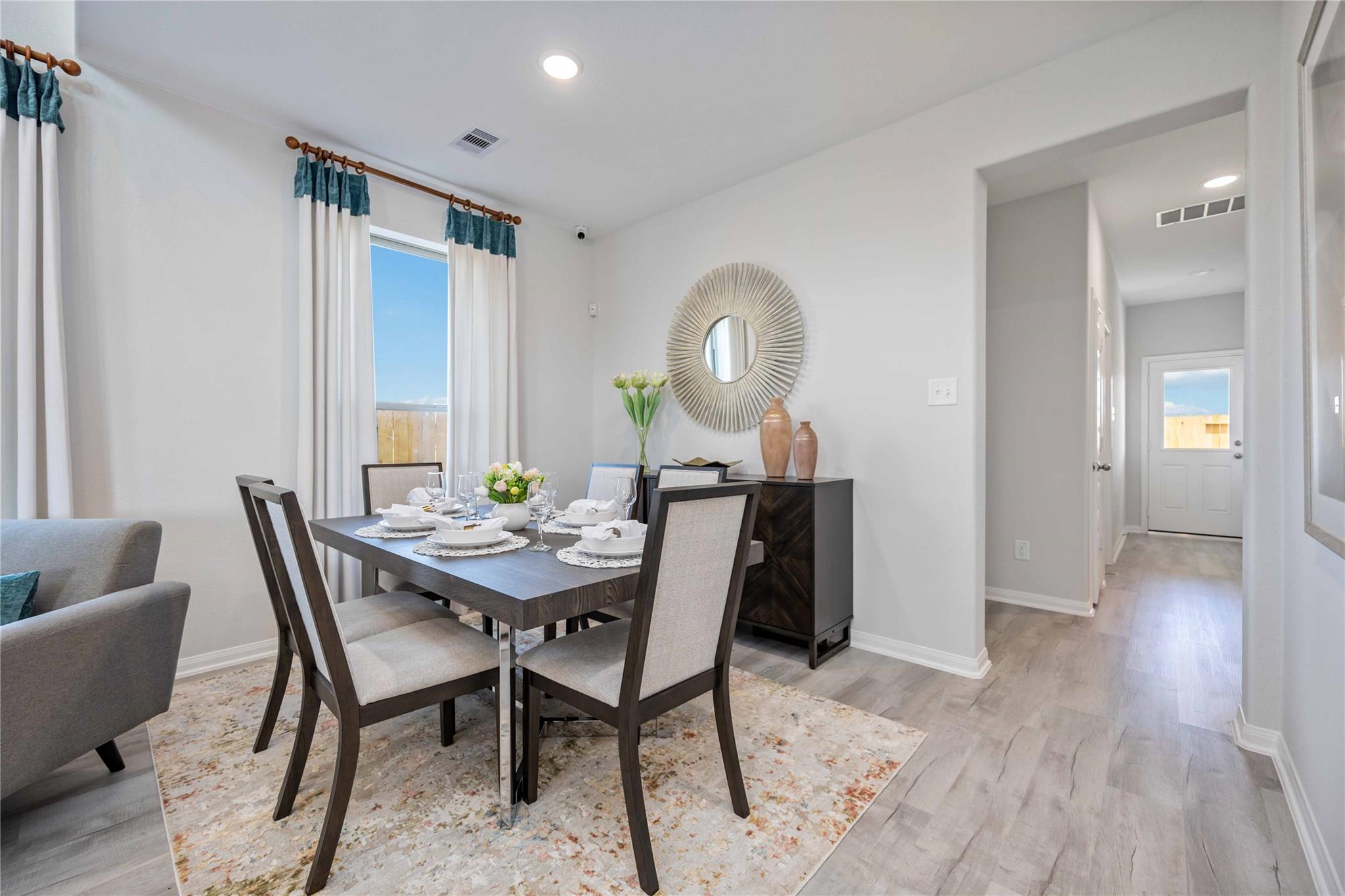 The Matagorda is a four-bedroom, three-bath floorplan that offers 2,084 square feet. The large living area with soaring ceilings offering plenty of room for relaxation and entertaining. The owner's retreat is a private sanctuary, featuring a spacious bathroom and a generous walk-in closet. A second bedroom downstairs offers flexibility as a nursery, study or guest space, while an upstairs gameroom provides an additional space to enjoy. Make the Matagorda floorplan your own with additional options to suit your lifestyle. Bluebonnet Village provides an ideal opportunity to enjoy modern living in a welcoming small-town setting. With easy access to I-10 and US 290, residents can quickly connect to Greater Houston while enjoying the peace and charm of Bellville. Families benefit from highly regarded Bellville ISD schools, a low tax rate and a vibrant community filled with year-round events.