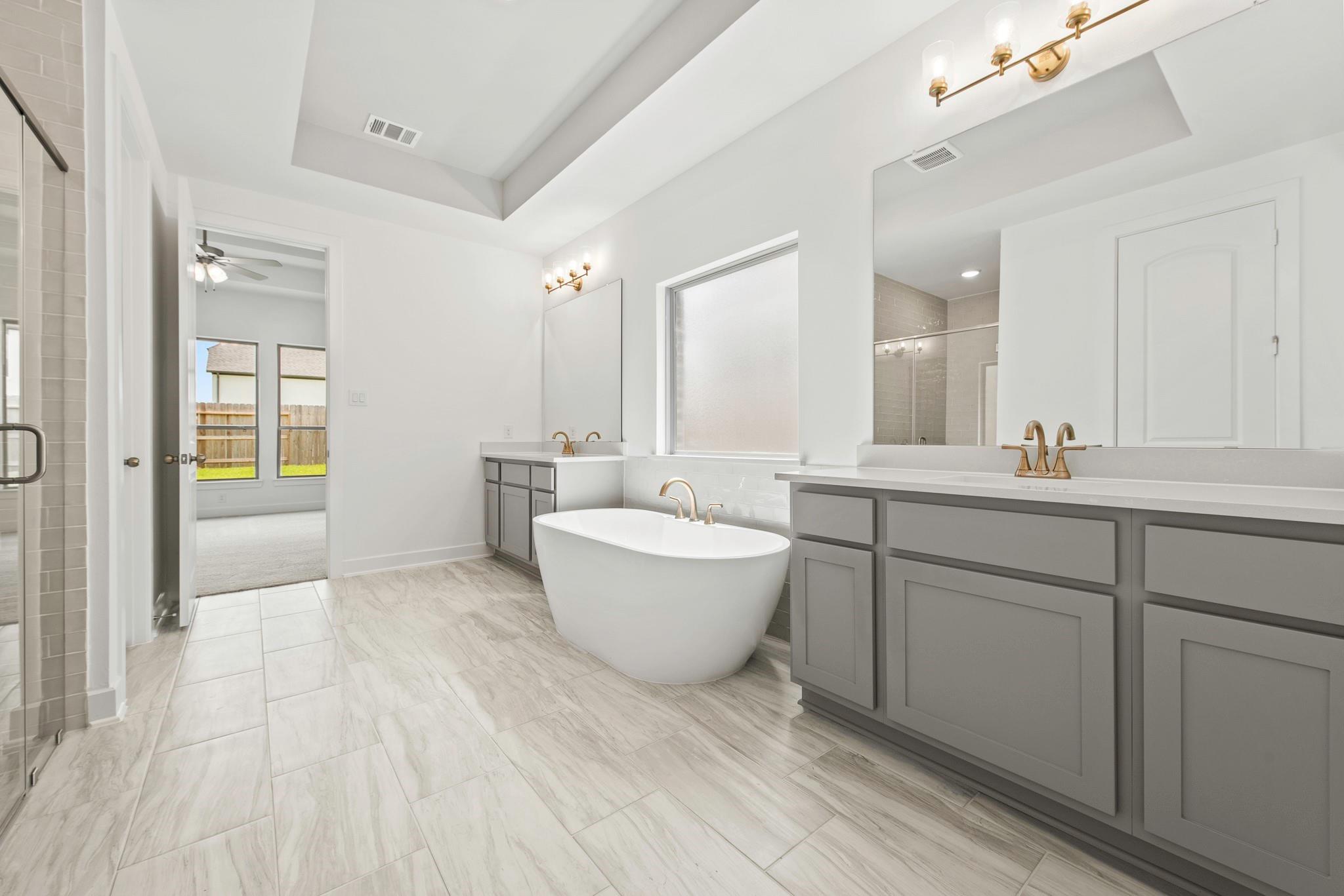 Westin Homes NEW Construction (Asher X, Elevation B-FB) Stunning two-story home featuring 5 bedrooms and 4.5 bathrooms. Designed for both comfort and style, this home offers a spacious family room, private study, and dining area. The island kitchen flows into the family room, perfect for entertaining. The luxurious primary suite boasts dual walk-in closets, while a first-floor secondary bedroom suite offers space for family or guests. Upstairs showcases three secondary bedrooms, two bathrooms, a sprawling game room, and a private media room. Relax outdoors on the covered patio and enjoy the convenience of an attached 3-car tandem garage. Nestled in award-winning Bridgeland, residents experience resort-style amenities, vibrant community events, scenic trails, and acres of sparkling lakes and waterways. With easy access to the Grand Parkway and US-290, this home offers both beauty and convenience. Visit the Westin Homes sales office today!