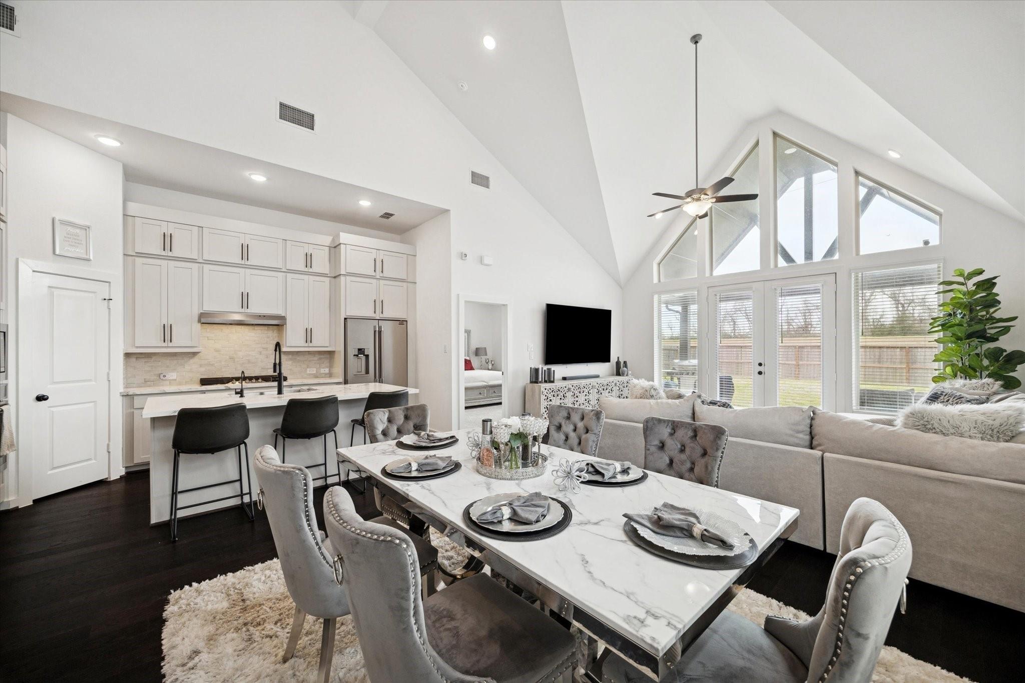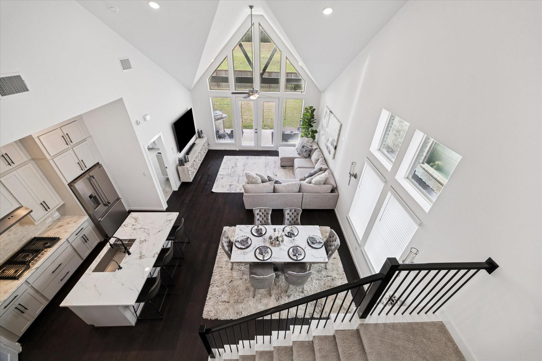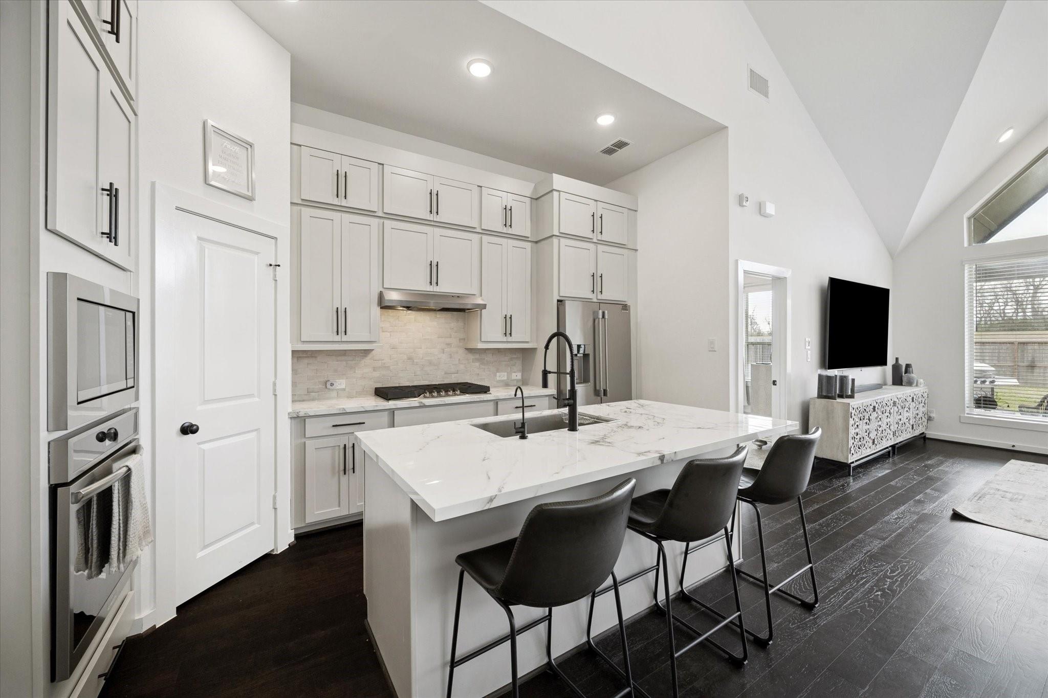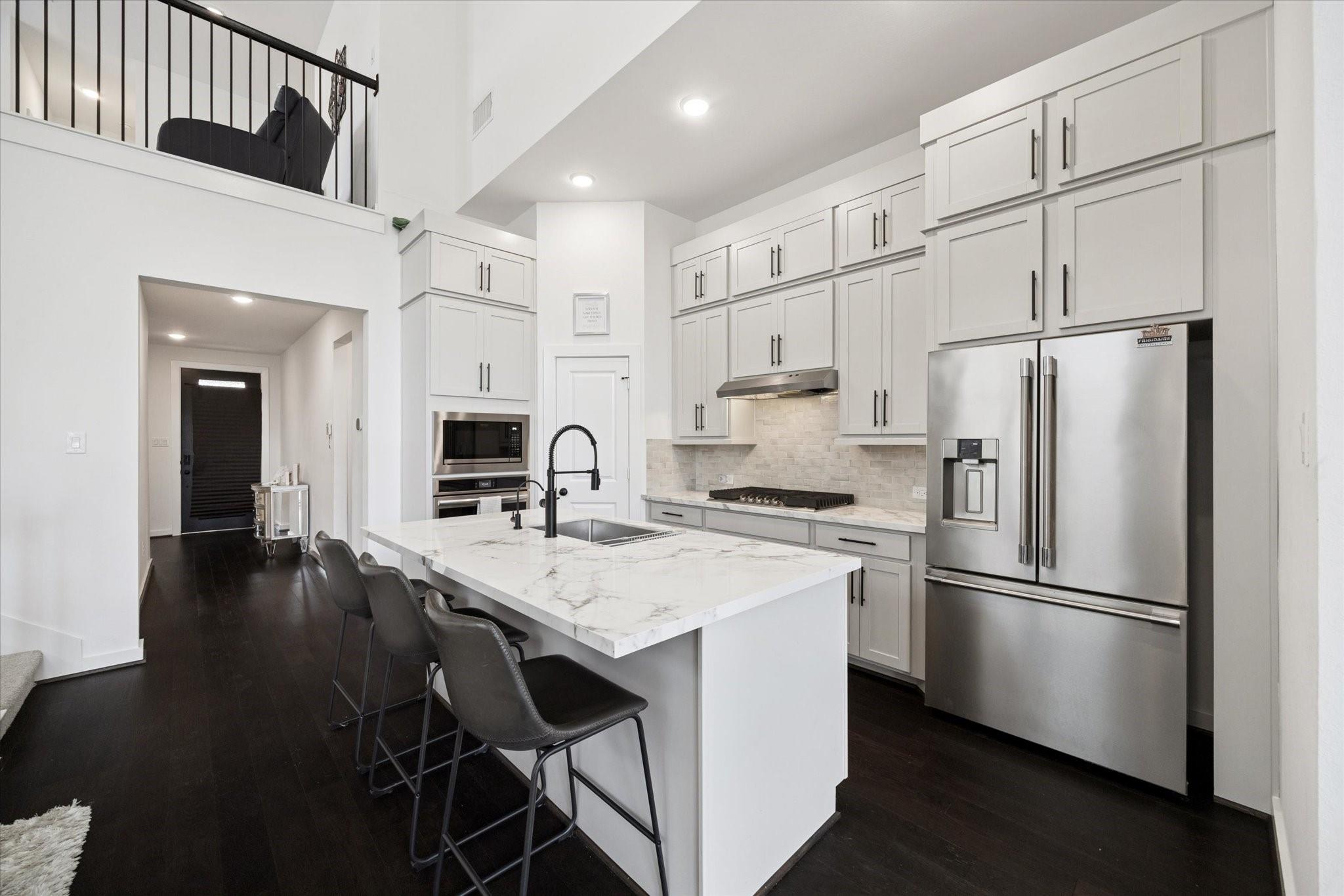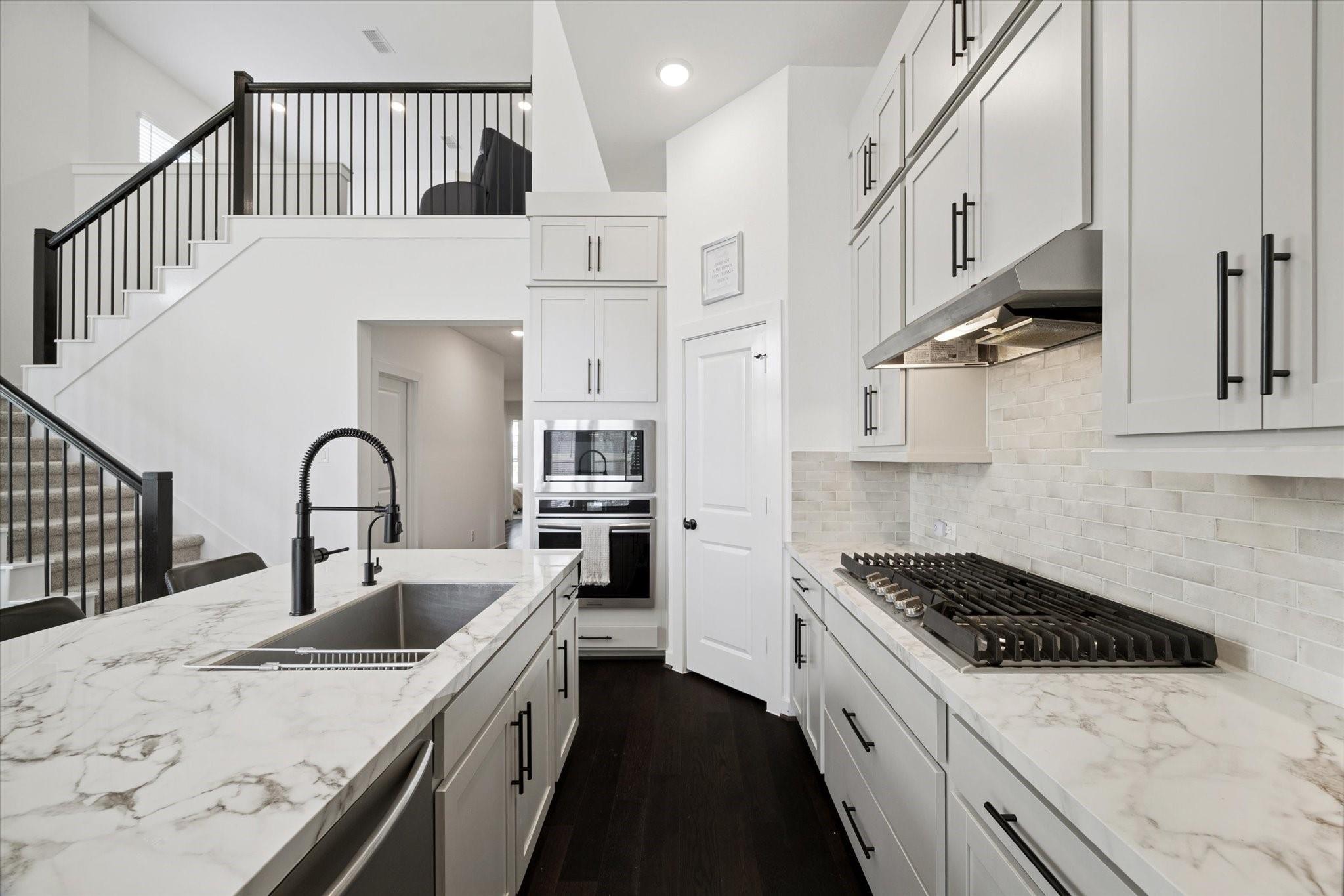 InteriorFloors:Carpet,Engineered Wood,TileCountertop:QuartzBathroom Description:Primary Bath: Double Sinks,Primary Bath: Separate ShowerBedroom Desc:1 Bedroom Down - Not Primary BR,2 Bedrooms Down,Primary Bed - 1st Floor,Walk-In ClosetKitchen Desc:Island w/ Cooktop,Kitchen open to Family Room,Walk-in PantryRoom Description:Breakfast Room,Family Room,Gameroom Up,Home Office/Study,Living Area - 1st Floor,Utility Room in HouseHeating:Central Gas,ZonedCooling:Central Electric,ZonedConnections:Electric Dryer Connections,Washer ConnectionsDishwasher:YesDisposal:YesCompactor:NoMicrowave:YesRange:Gas CooktopOven:Electric OvenIce Maker:NoEnergy Feature:Ceiling Fans,Digital Program Thermostat,Energy Star/CFL/LED Lights,High-Efficiency HVAC,HVAC>13 SEER,Insulated/Low-E windows,Insulation - Spray-Foam,Tankless/On-Demand H2O HeaterInterior:Fire/Smoke Alarm,Formal Entry/Foyer,High Ceiling,Wired for Sound