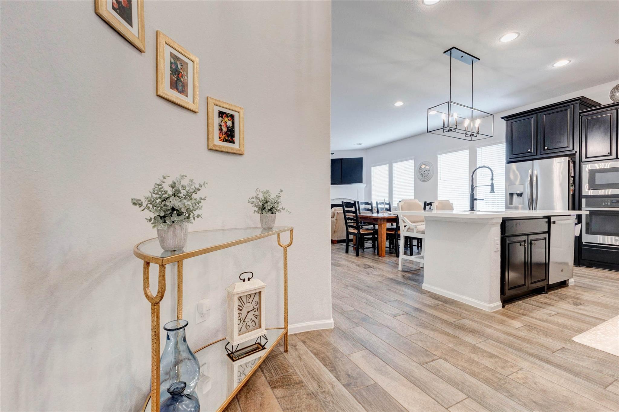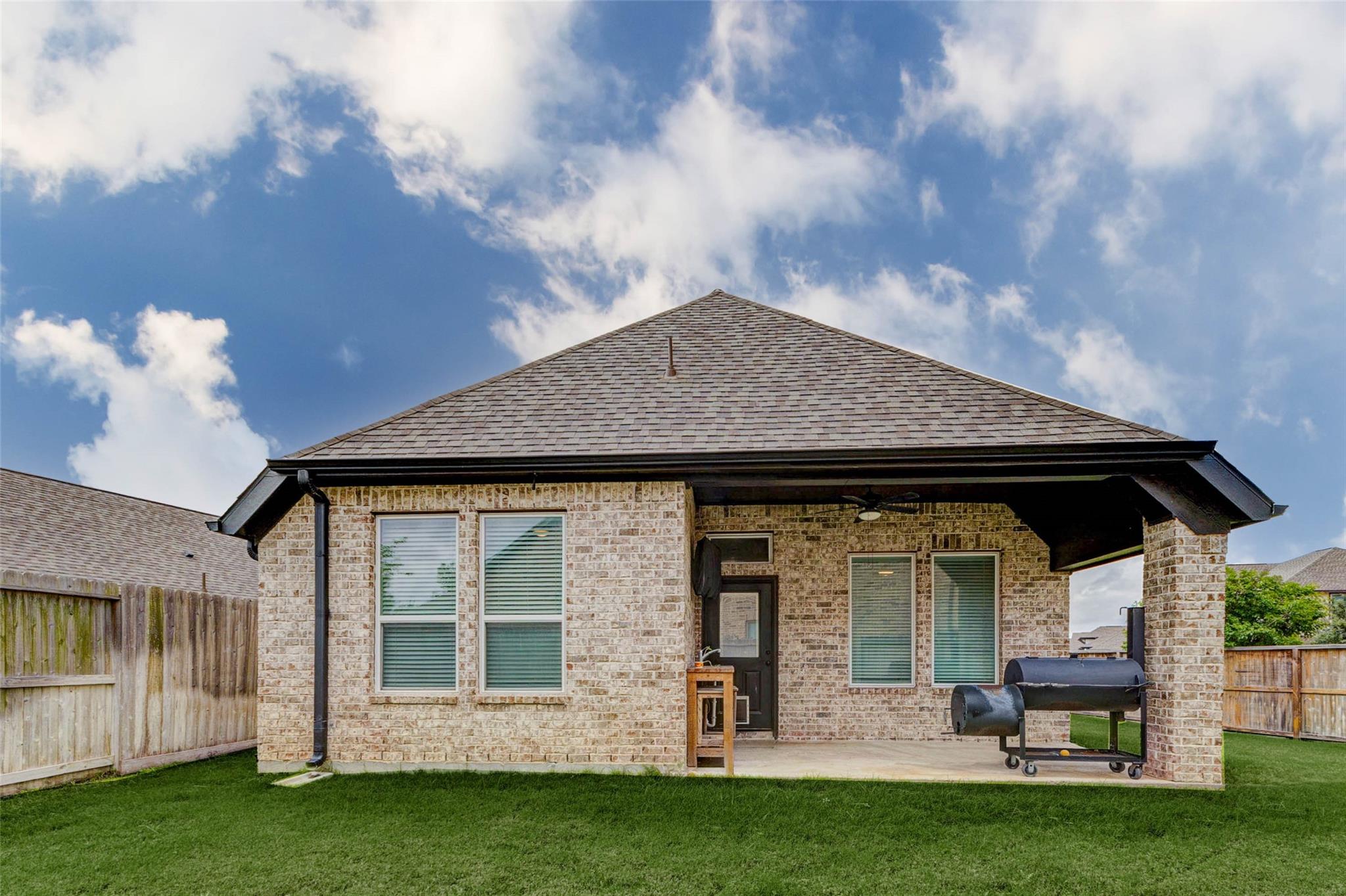 Welcome home to this beautifully maintained one story Perry home featuring an open and inviting layout with stylish finishes throughout. The spacious living area flows seamlessly into the kitchen and dining spaces. The private primary suite offers a relaxing retreat with a spa inspired bath complete with dual vanities, soaking tub, walk in shower, and generous closet space. Secondary bedrooms are well sized and versatile, with one featuring a designer accent wall. You also have a full bath with tub/shower combination. Additional highlights include a dedicated laundry room with built in shelving, a fully bricked exterior with gutters, and a covered back patio with ceiling fan overlooking the spacious backyard with automatic sprinklers. Enjoy the incredible community amenities including a resort style pool and splash pad, fitness center, yoga lawn, playground, pavilion, multi purpose room, and Sunshine Park, with a dog park and Solstice Park coming soon. Schedule your private tour today!